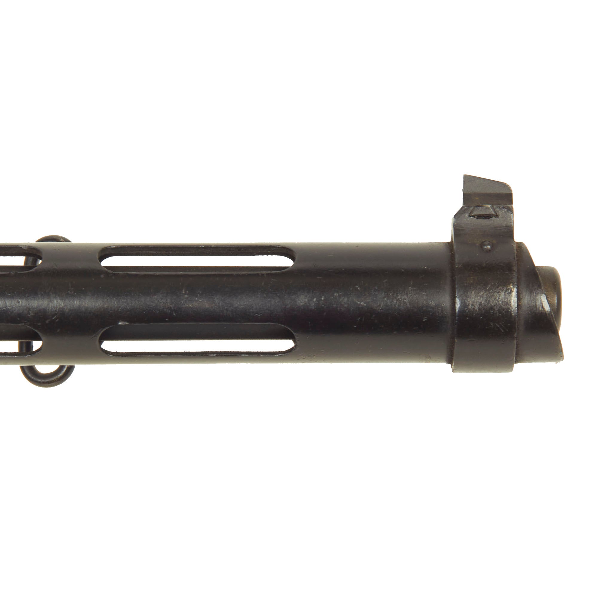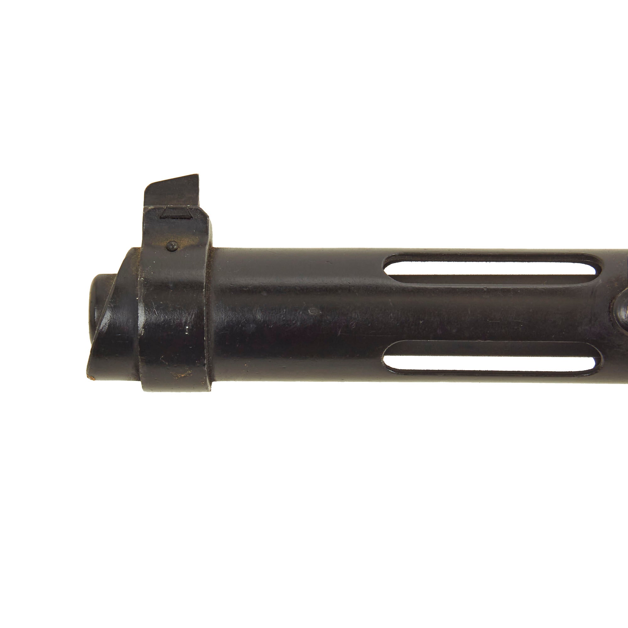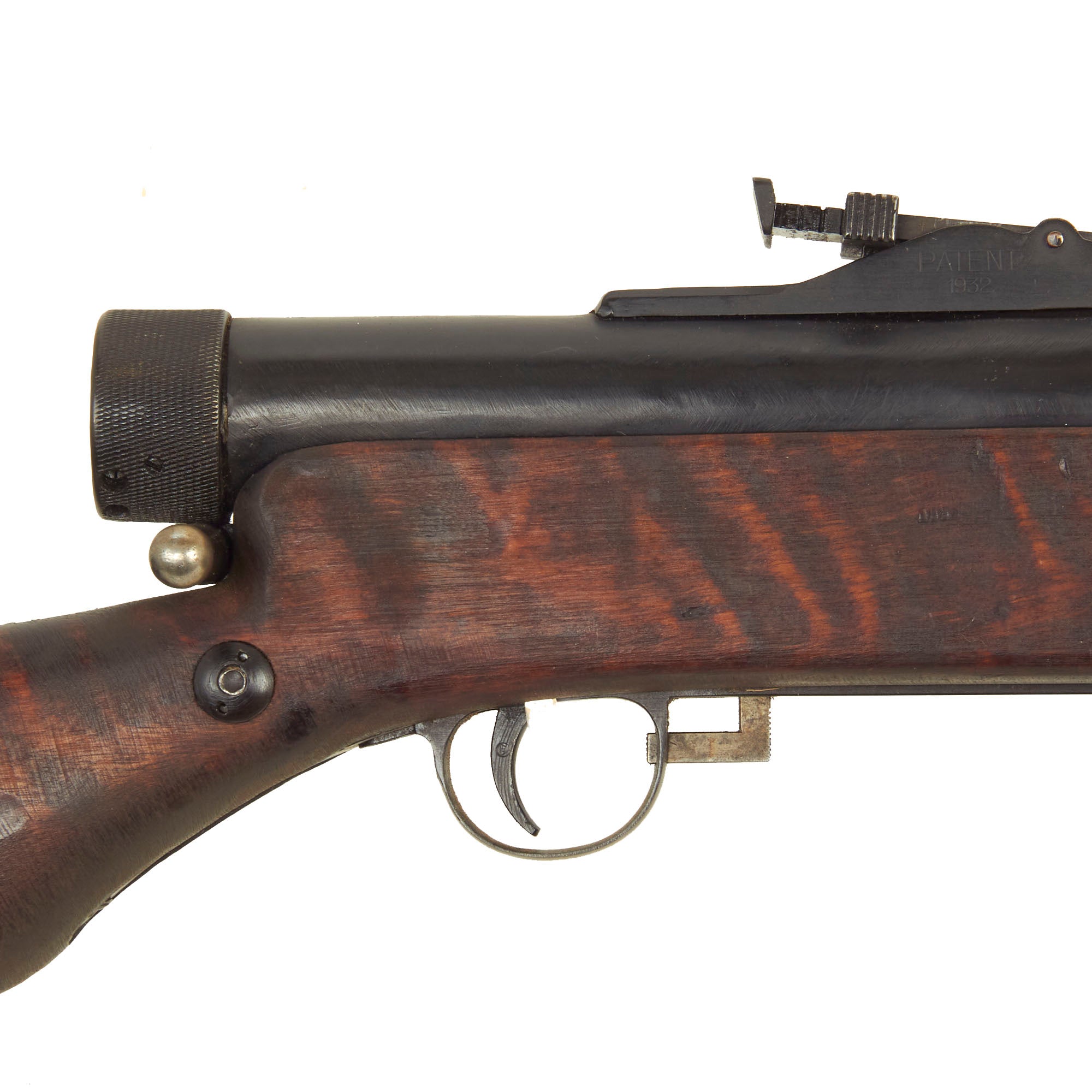 The magazine release tab, safety, barrel jacket lock, and sight are all still intact and movable. However due to the display gun was demilitarized and welded, the barrel jacket can no longer be removed. Due to this the barrel has also been welded in place, and is also not removable. The included magazine can be properly be removed using the latch. Overall a very nice condition piece and very attractive, especially with the figured wood stock!