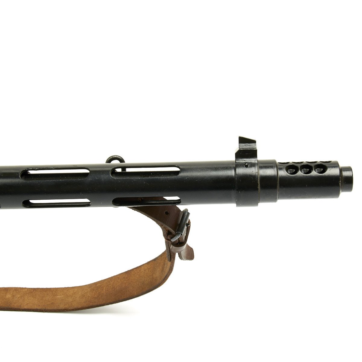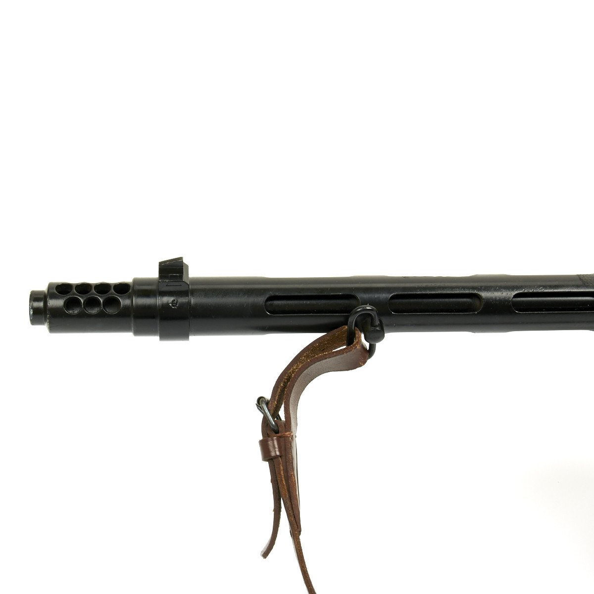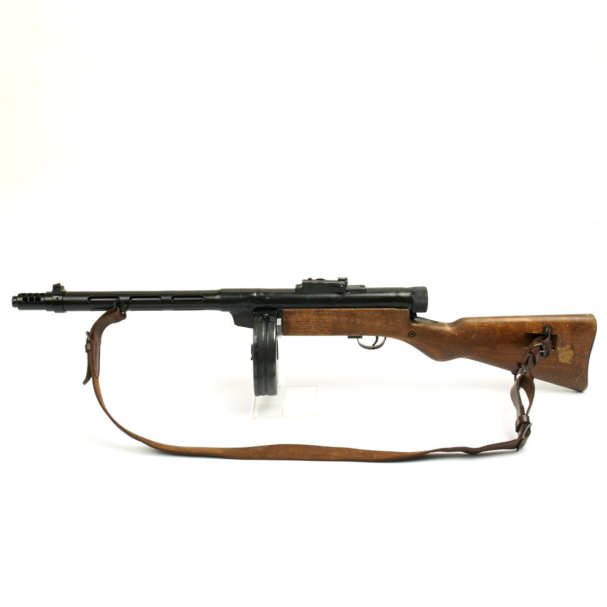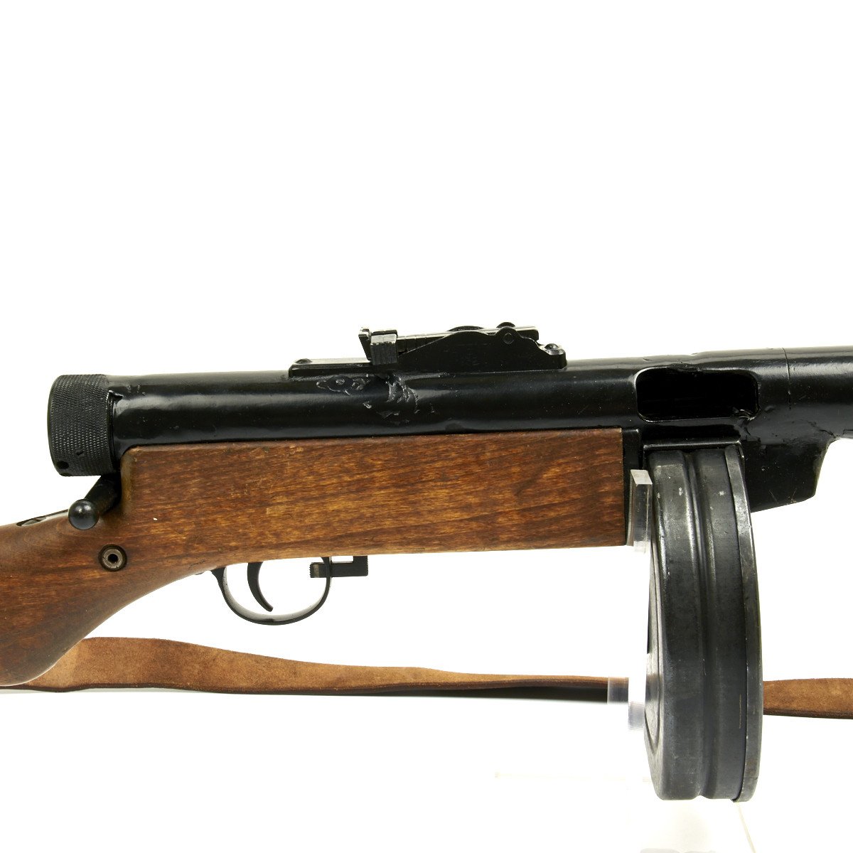 Original Item: Only One Available. Offered in fine non-firing BATF approved non-gun display condition this SMG comes with an original leather sling and original drum magazine. Magazine release tab is missing but drum seated tightly and will not slip out.