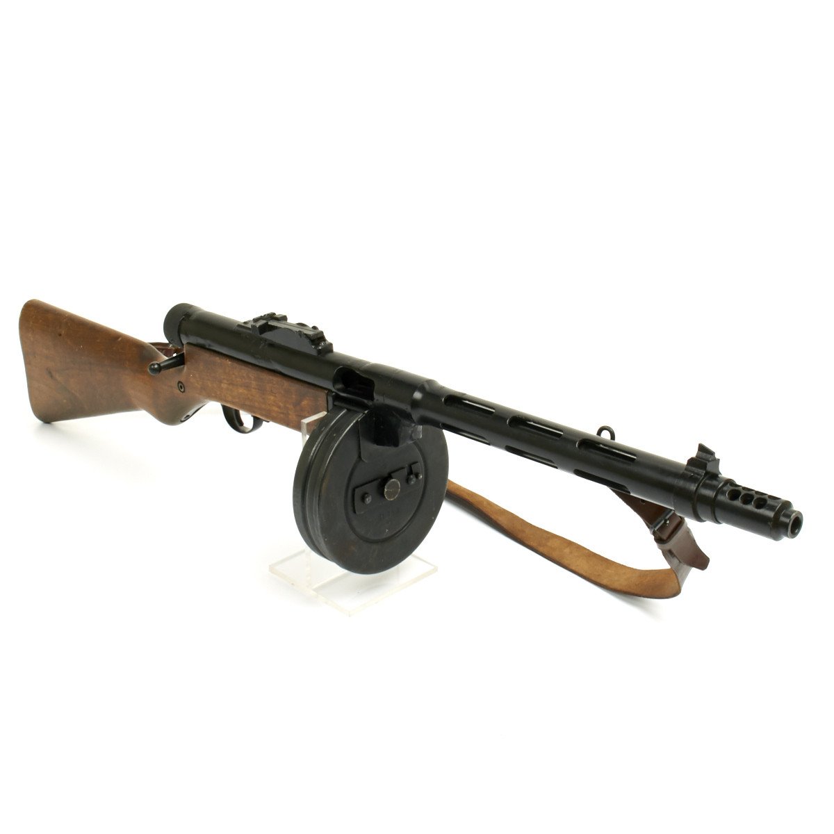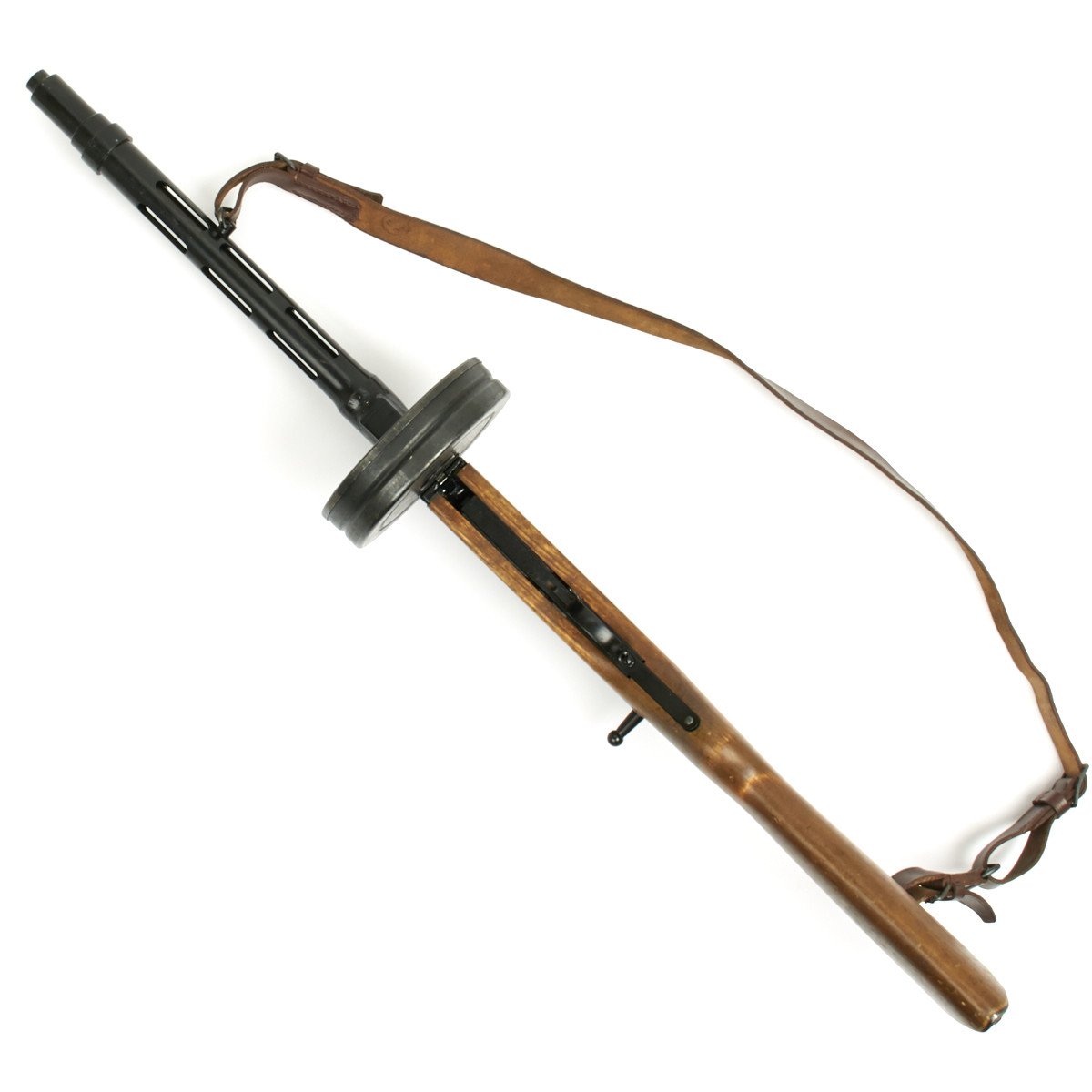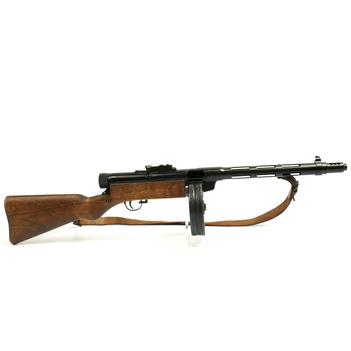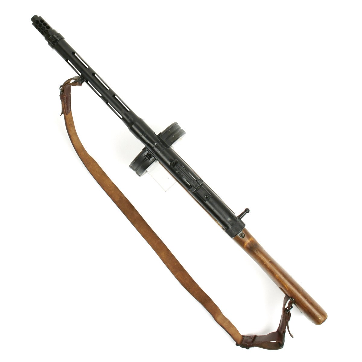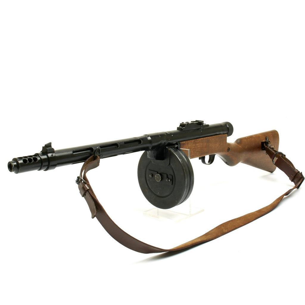 Original Item: Only One Available. Offered in fine non-firing BATF approved non-gun display condition this SMG comes with an original leather sling and original drum magazine. Magazine release tab is missing but drum seated tightly and will not slip out.