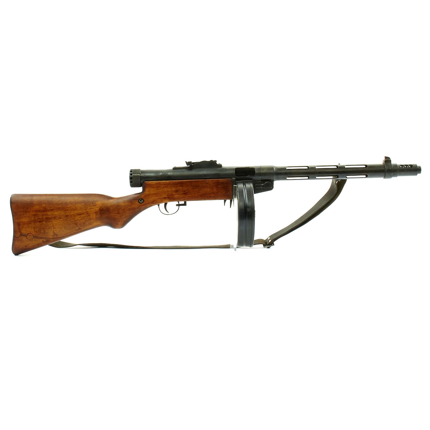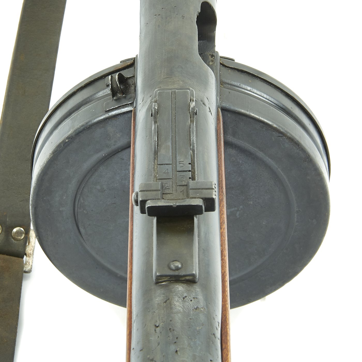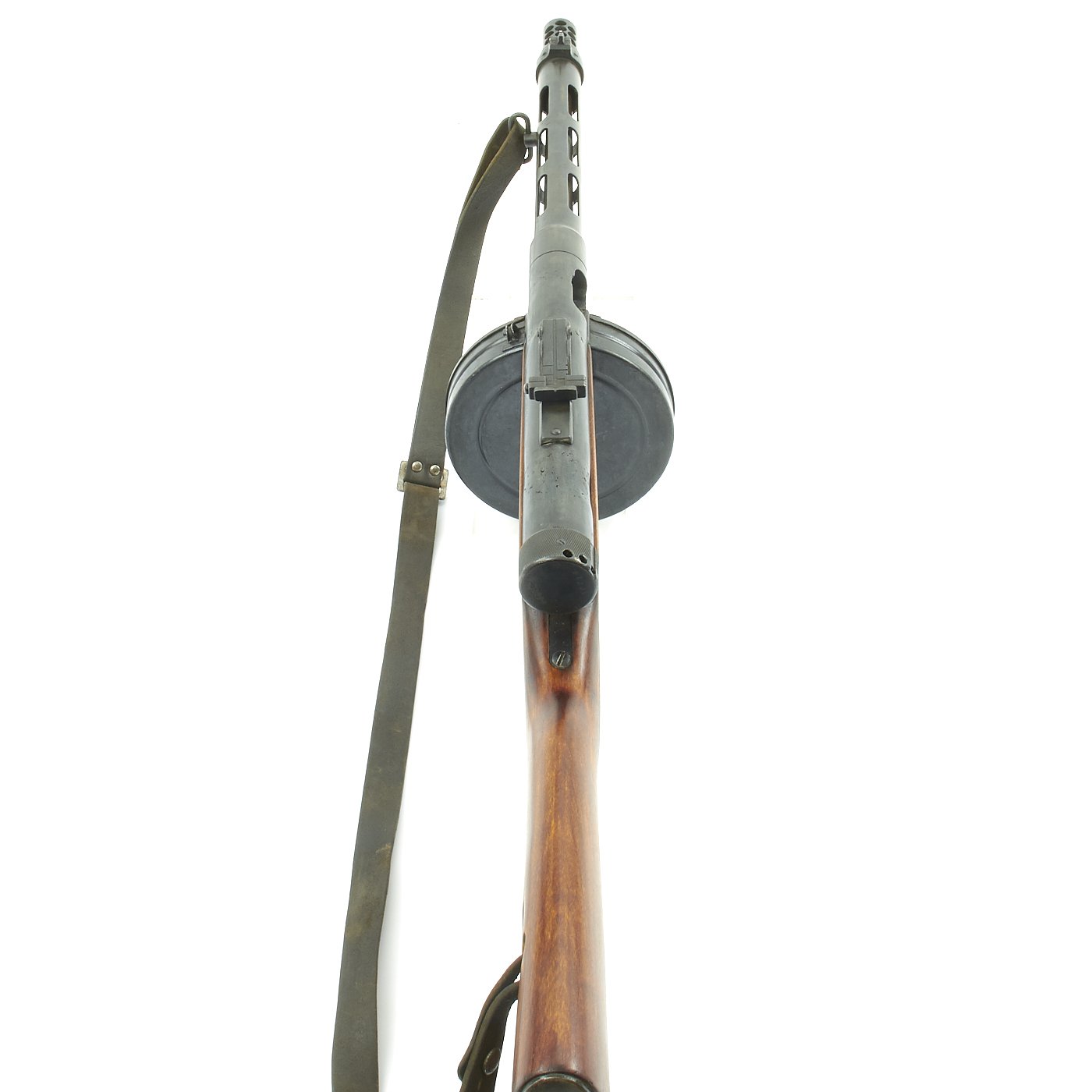 Original Item: Only One Available. Offered in fine condition built on a newly made non-firing BATF approved non-gun display receiver this SMG comes with an original drum magazine. Magazine release tab, safety, barrel jacket lock, and sight are all intact and movable. The cocking handle is unfortunately missing. Comes complete with an original sling. Overall a very nice condition piece and very attractive.