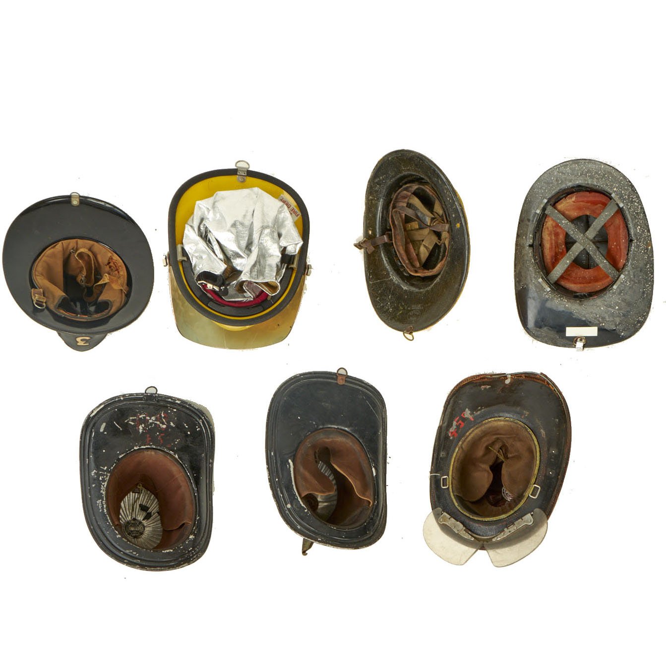 - Original Items: Only One Lot Available. This is a collection of 7 various fire helmets Sizes, condition and type vary. See photos for details.