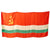 - Flag of the Byelorussian SSR: 68” x 35” horizontal bicolor of red over green in a 2:1 ratio and the golden hammer and sickle with the bordered star on the canton, with a white ornamental pattern on a red vertical stripe at the hoist.