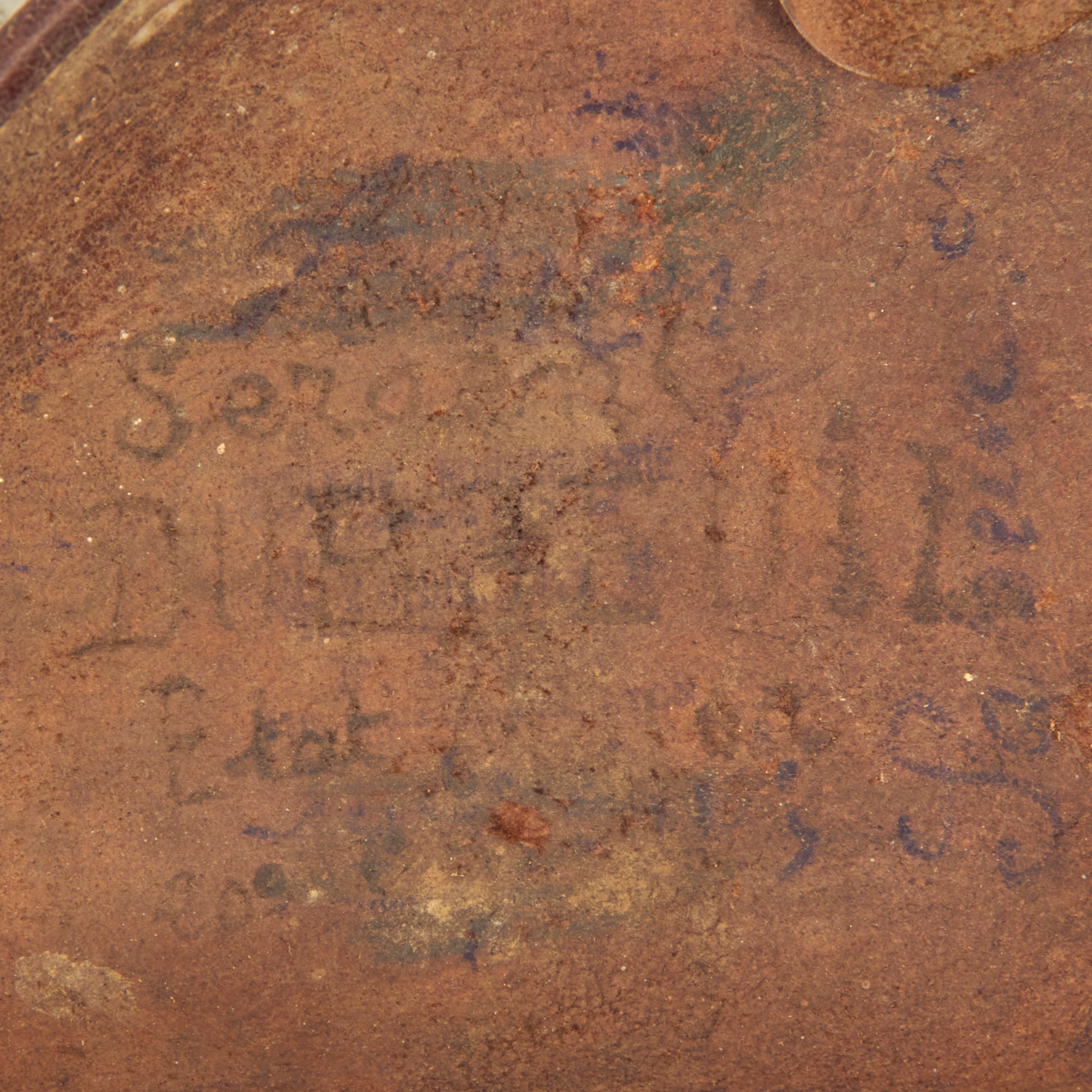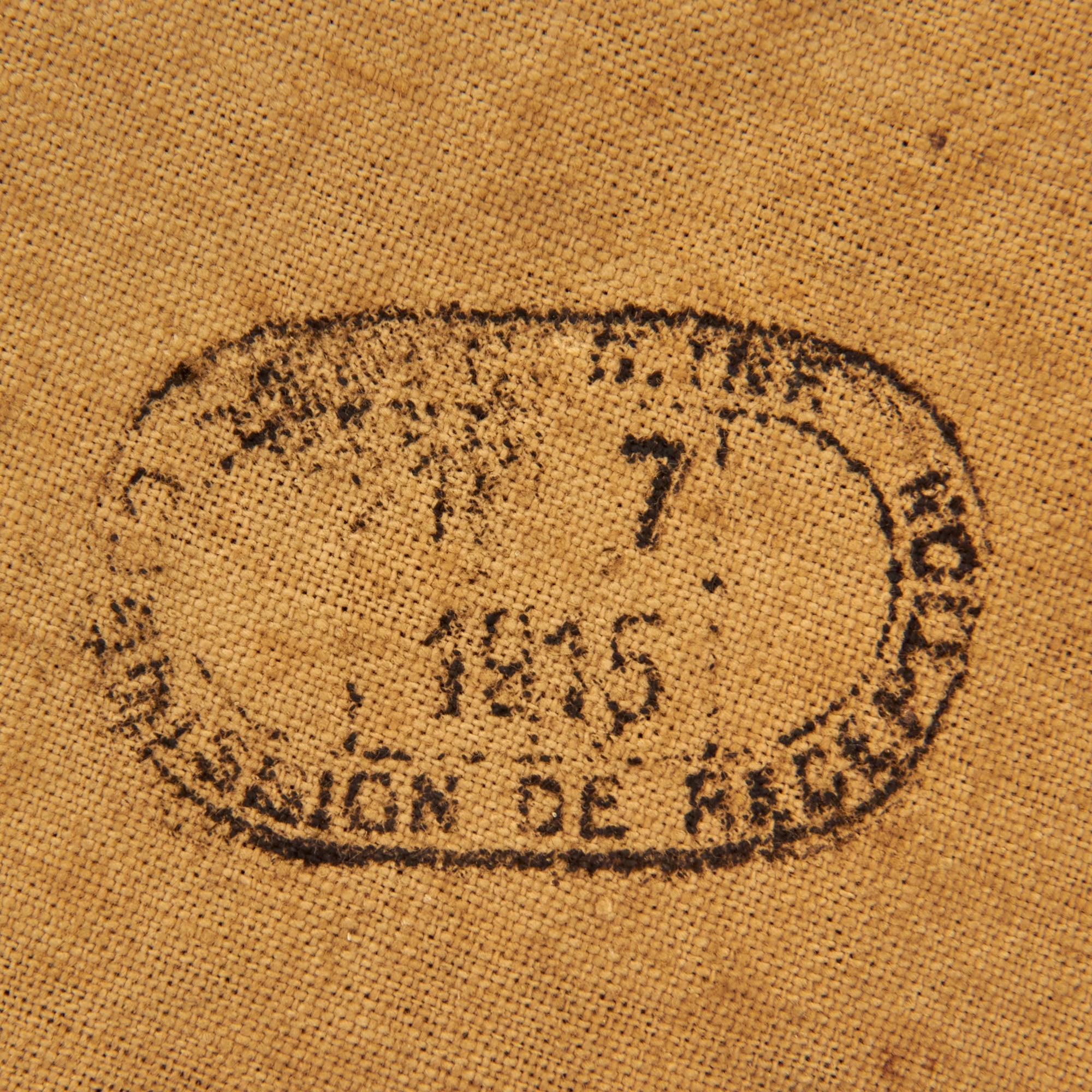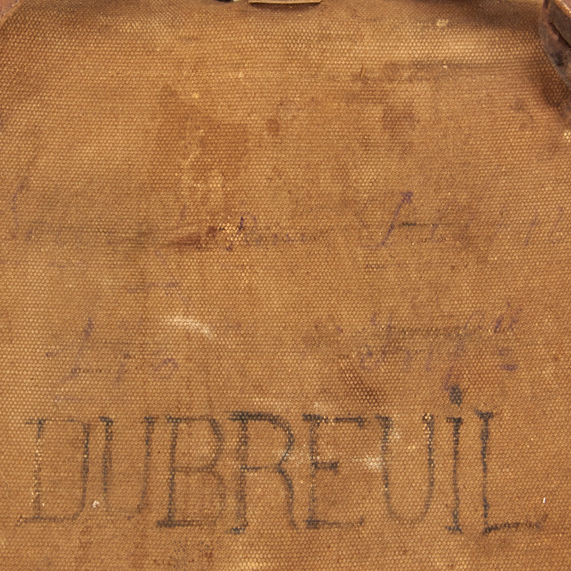 - Model 1893 l'Havresac: The M.1893/14 knapsack is made of unpainted canvas around a wooden frame and is offered in wonderful, field used condition. The front flap of the pack is marked with his rank, name and what appears to be a unit marking but we are unsure. The canvas does have staining to it but nothing that retracts from the beauty of the item. All leather straps and buckles appear to be present and in functional order, but as with all leather of this era, it is cracked and in a rather delicate state.