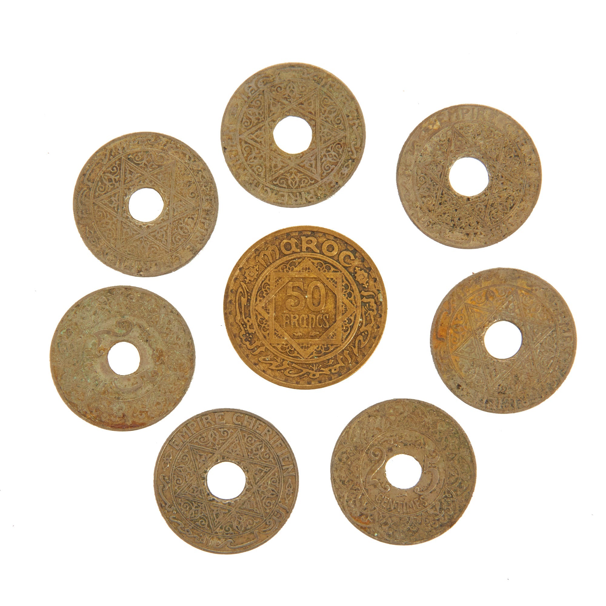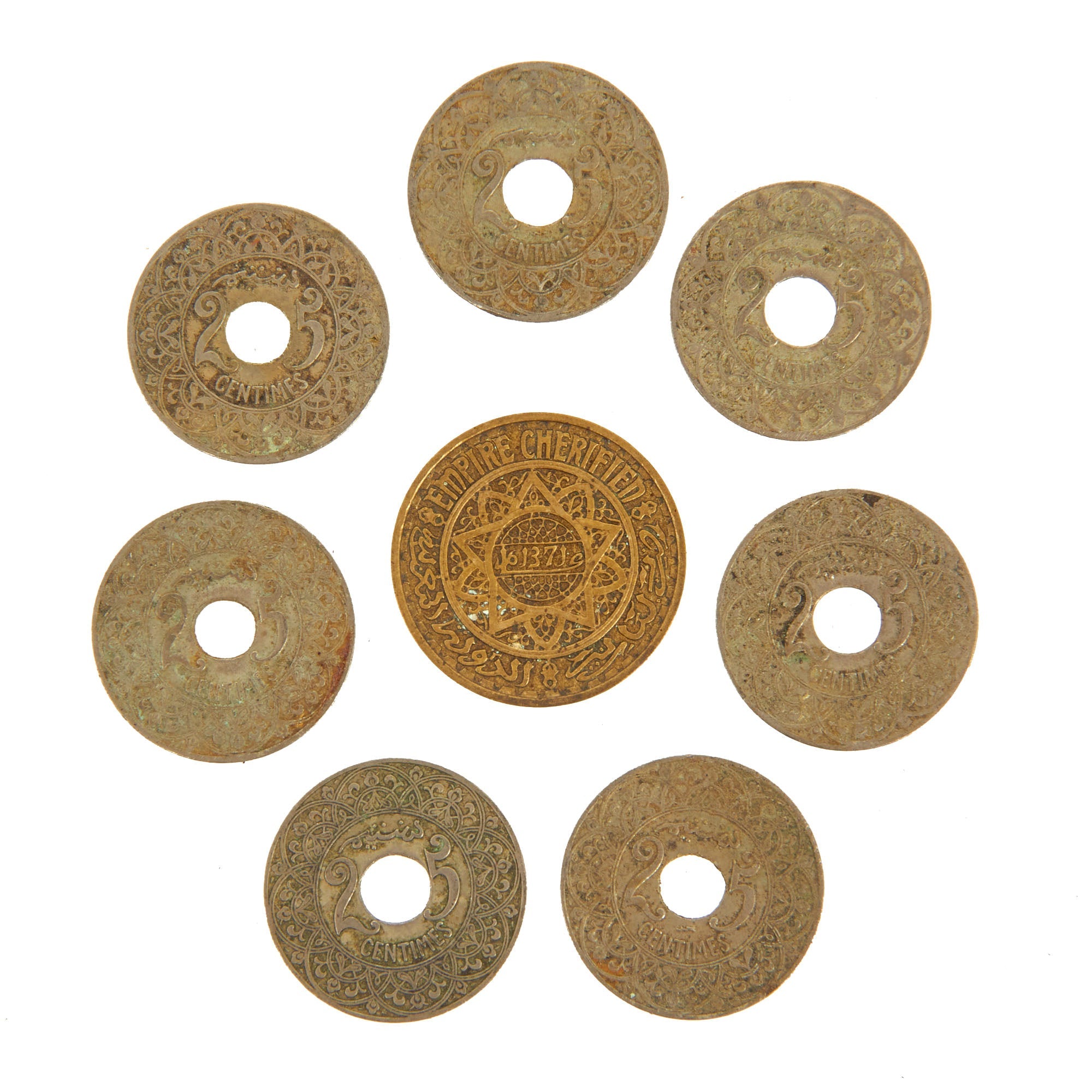 - x8 Coins: The coins are (7) 25 Centimes from Morocco and (1) 50 Francs Coin also from Morocco. The French protectorate in Morocco, also known as French Morocco, was the period of French colonial rule in Morocco between 1912 and 1956. The protectorate was officially established 30 March 1912, when Sultan Abd al-Hafid signed the Treaty of Fez, though the French military occupation of Morocco had begun with the invasion of Oujda and the bombardment of Casablanca in 1907.