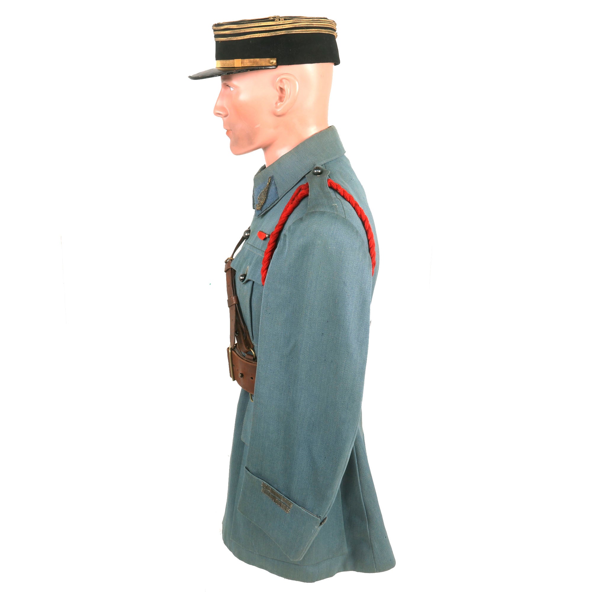 The kepi is a nice World War One era French Infantry Officer kepi in excellent condition. This is the lower height style kepi they first started using after phasing out the floppy or "bummer" type kepis. This style was only worn for a short time during WWI into the early 1920's.
