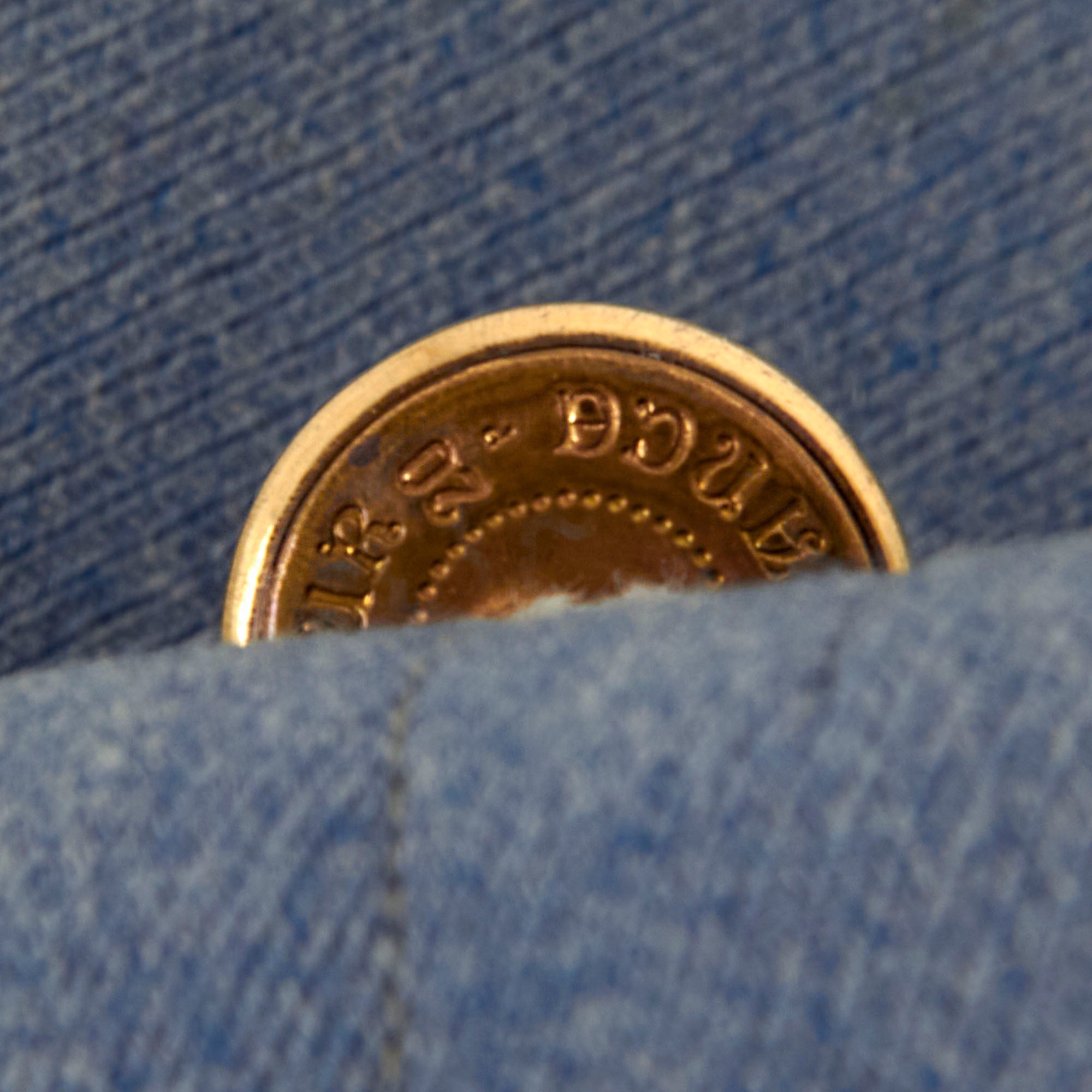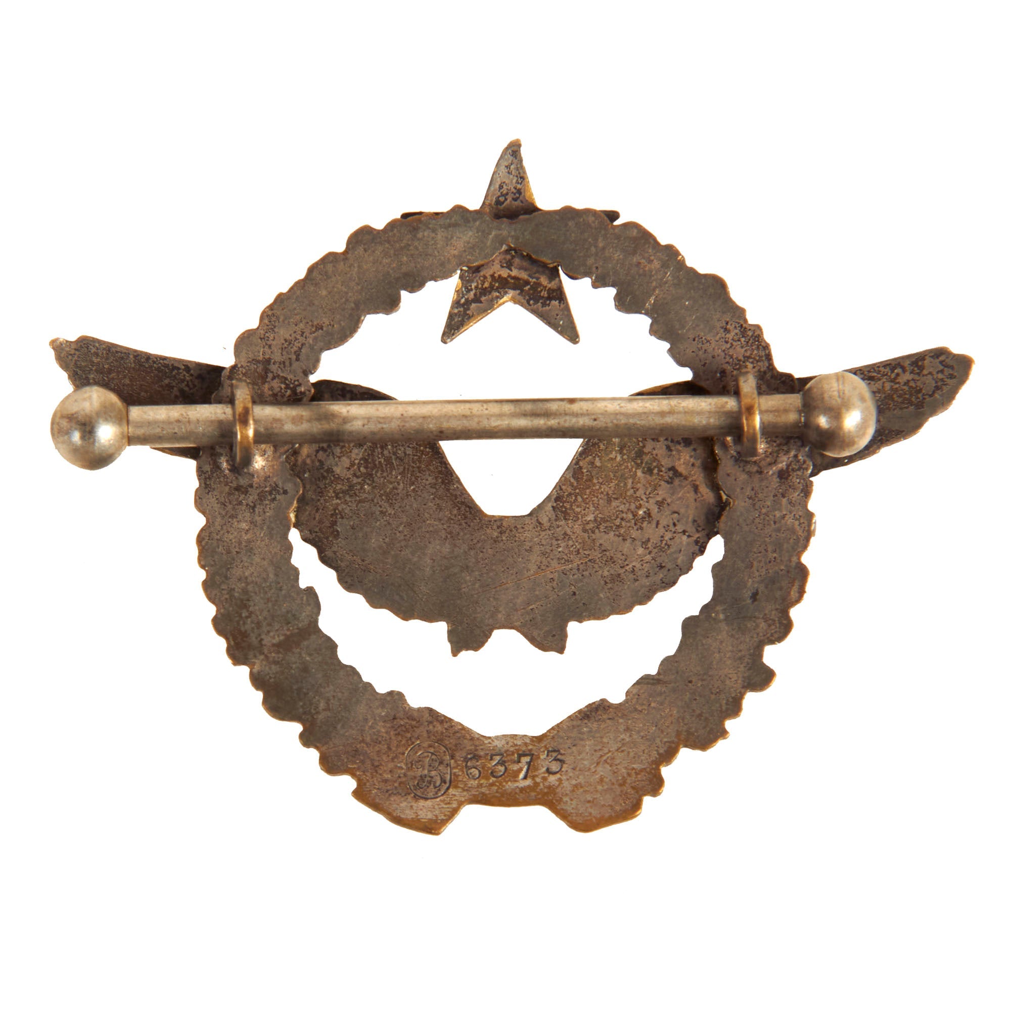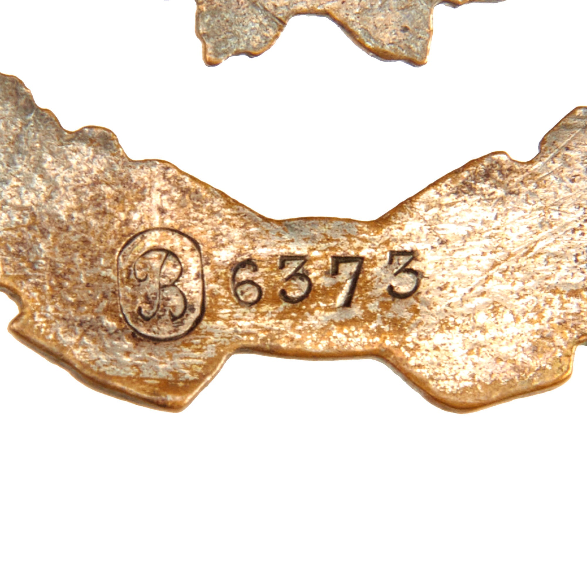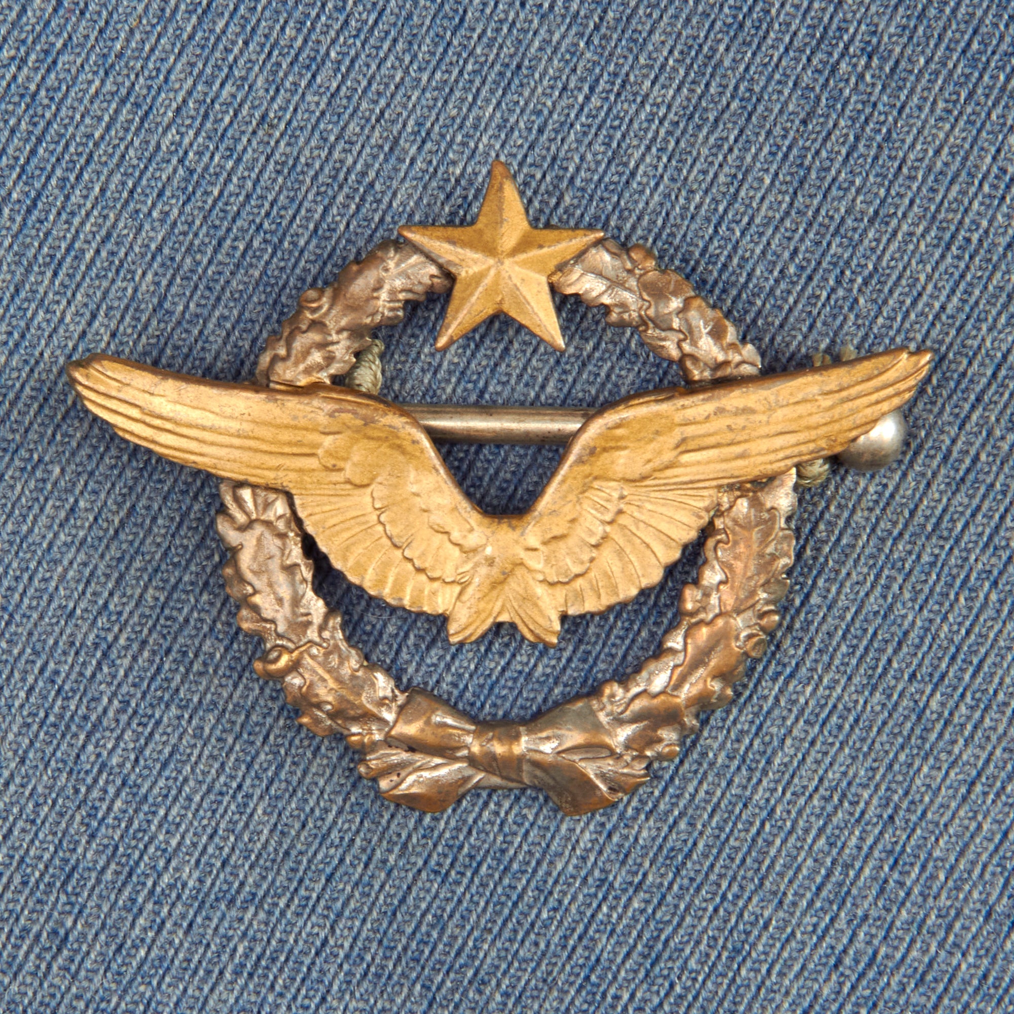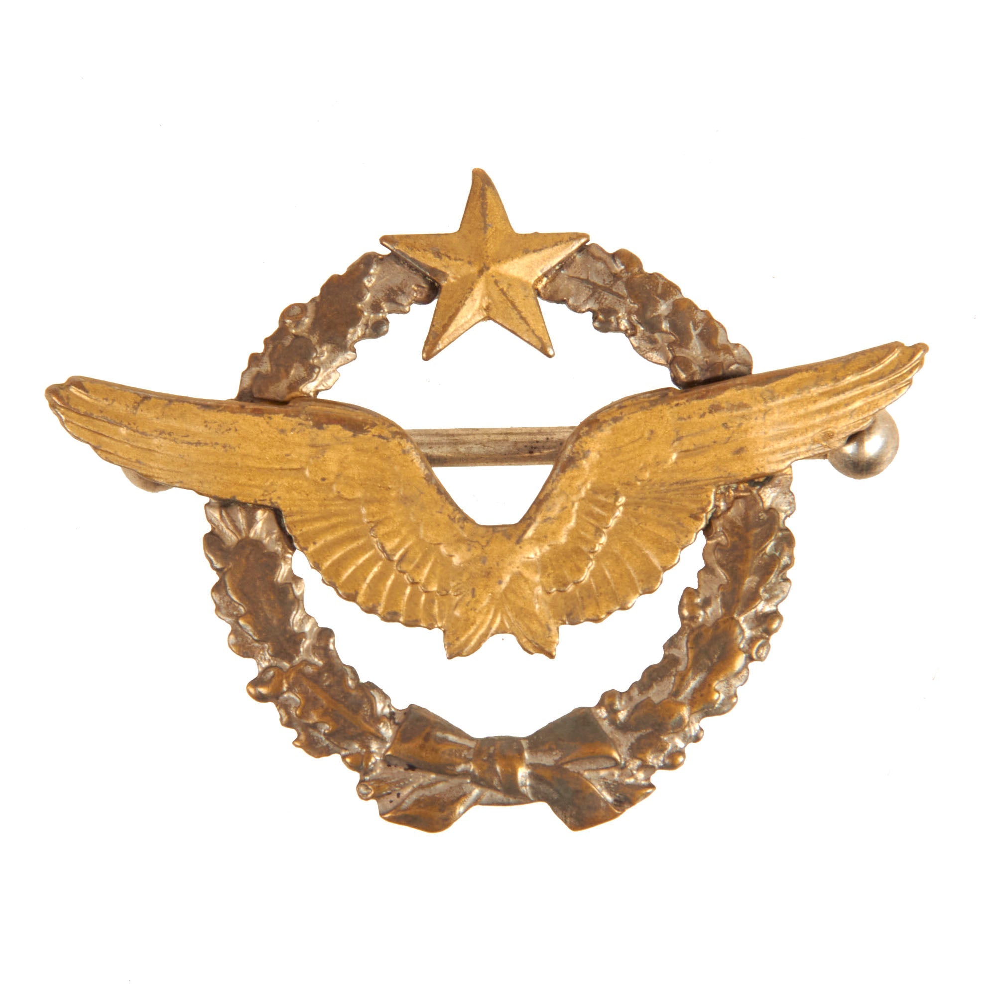 Now this is an absolutely stunning uniform set. This was the standard issue for a WWI French Pilot. Horizon blue French Air Service service coat, single breasted with all 8 brass buttons down front. The collar tabs feature beautiful gold bullion “winged star” insignia with the color retained very well. The right side of the uniform features a lovely “B” hallmarked Pilot’s Wings Badge with the colors retained very well. The badge was issued in the final years of the war, while the “B” hallmarked badges were used up into 1925. These badges in their own standpoint are very rare. The belt featured on the tunic is in wonderful condition and rests on the integrated belt hooks on the tunic quite nicely.