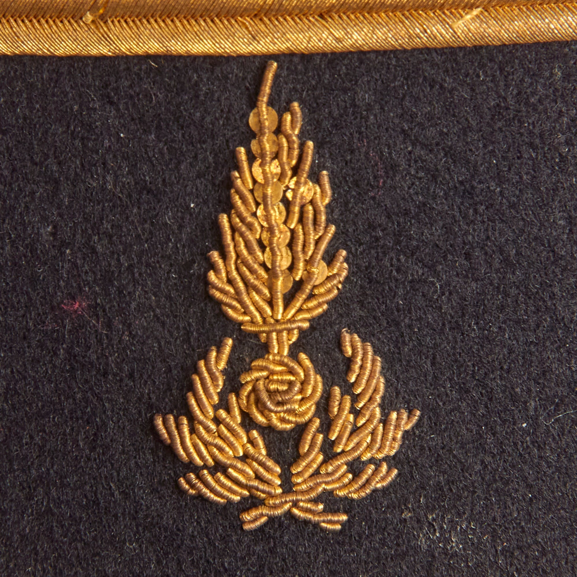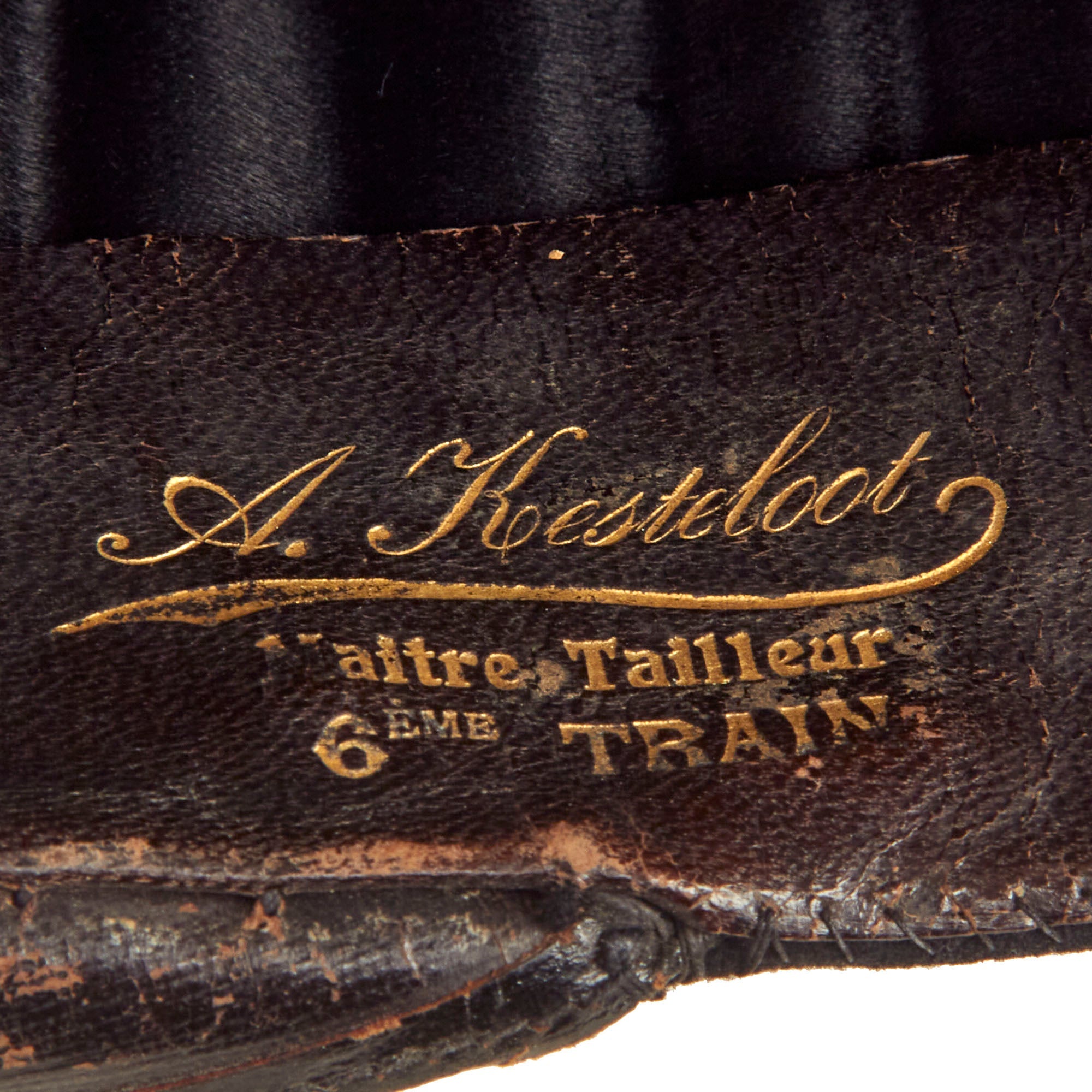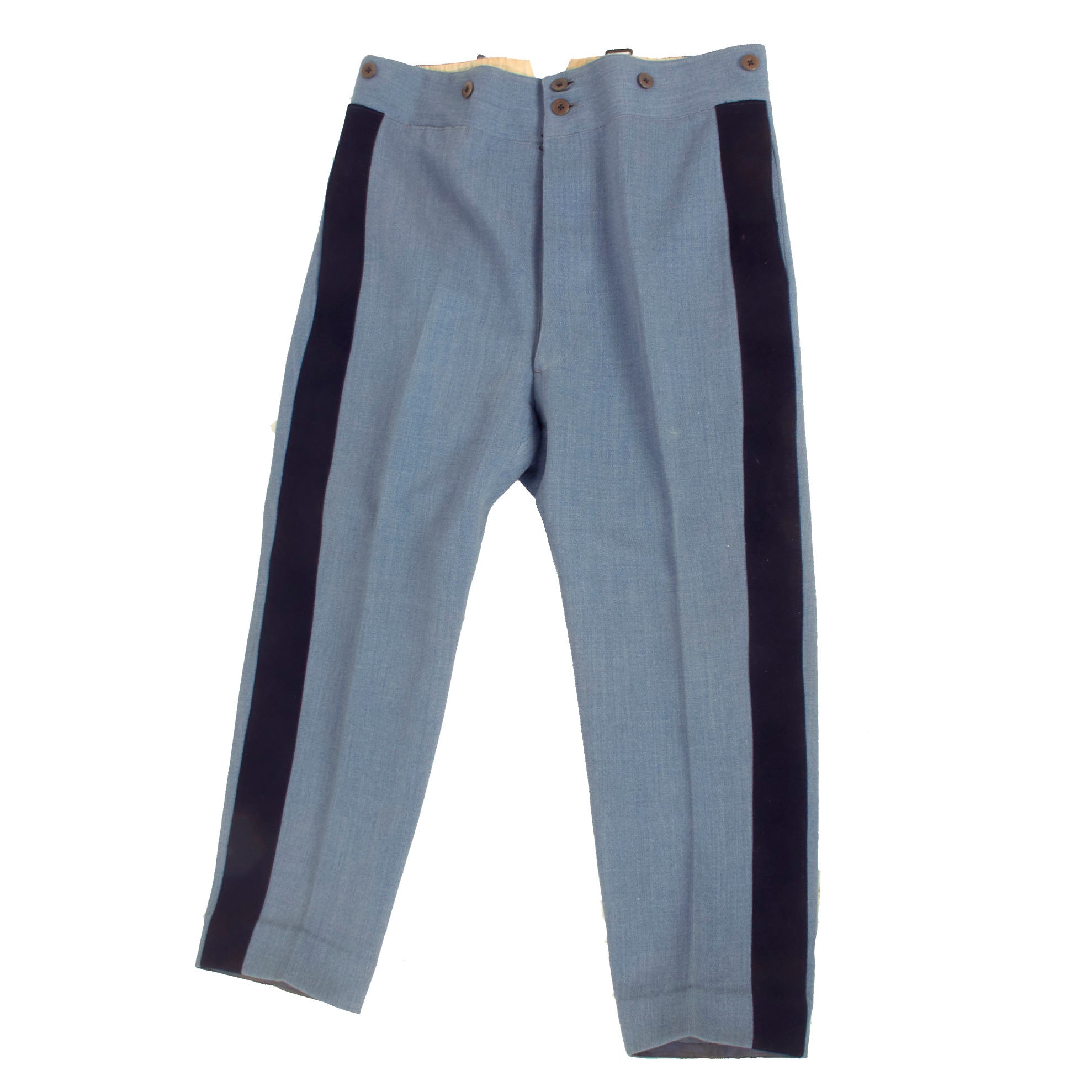 This example kepi is high quality and most likely a private purchase. It was issued to an officer with a bullion cross design to the crown. Interior has a leather sweatband with a Bandalium maker’s mark present. The included trousers are in wonderful condition with minor moth nips present and no extensive damage.