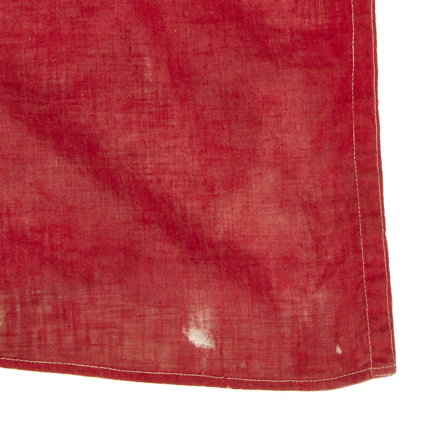 Condition is very good, especially considering the age, with the colors retained well. There is some age toning and staining, but that is to be expected of a flag that saw service. There also are some torn areas and possibly moth damage, as expected on a Wool Flag. However it still presents beautifully.