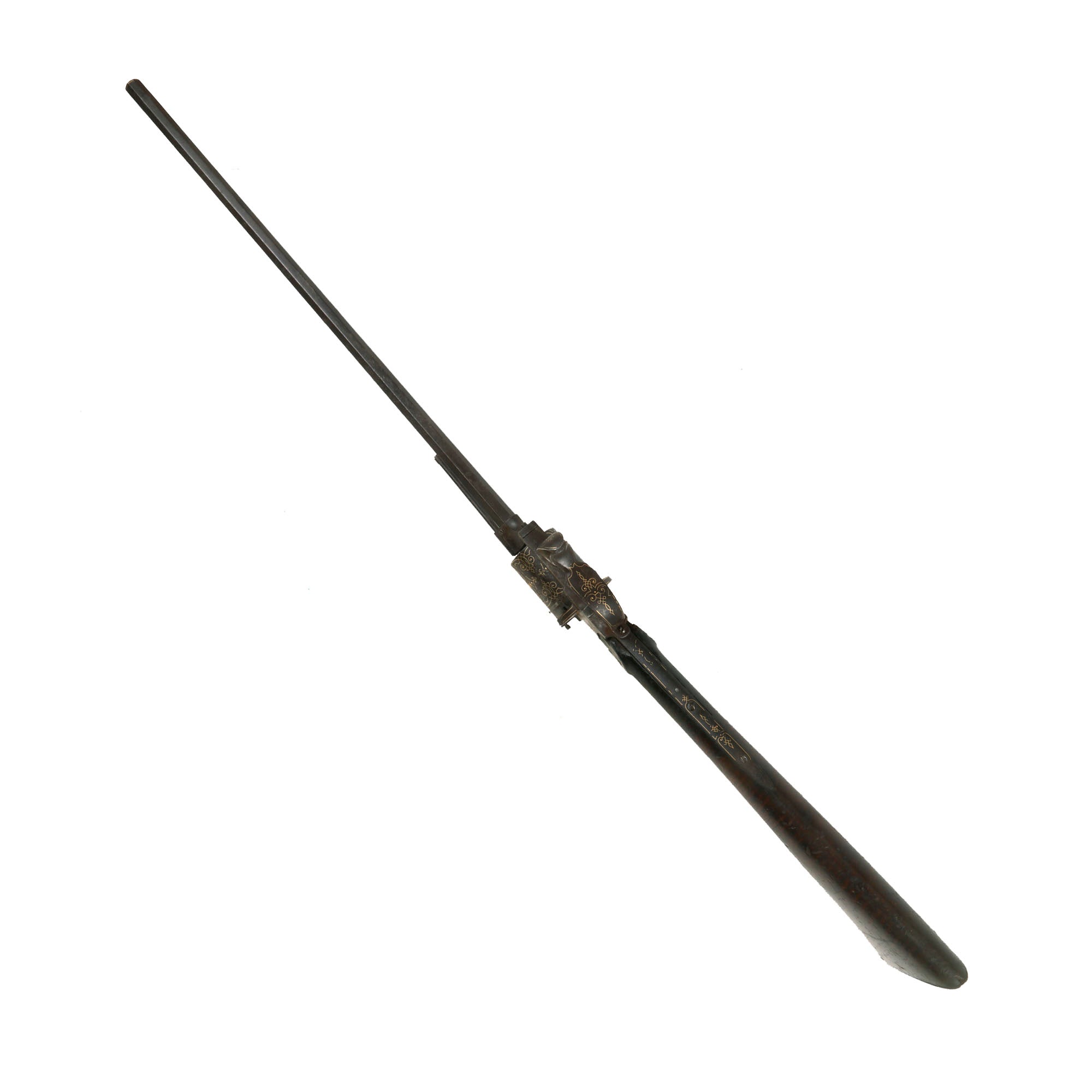 Original item. Only One Available. This is a lovely example of a historical rarity: a revolving rifle! There were various designs fielded in Europe and the United States during the mid 19th century, but they never really caught on in the same way that revolving pistols did. The relatively poor breech seal that revolvers have was definitely an issue with long range accuracy, which other "repeating" systems were able to mitigate more easily.