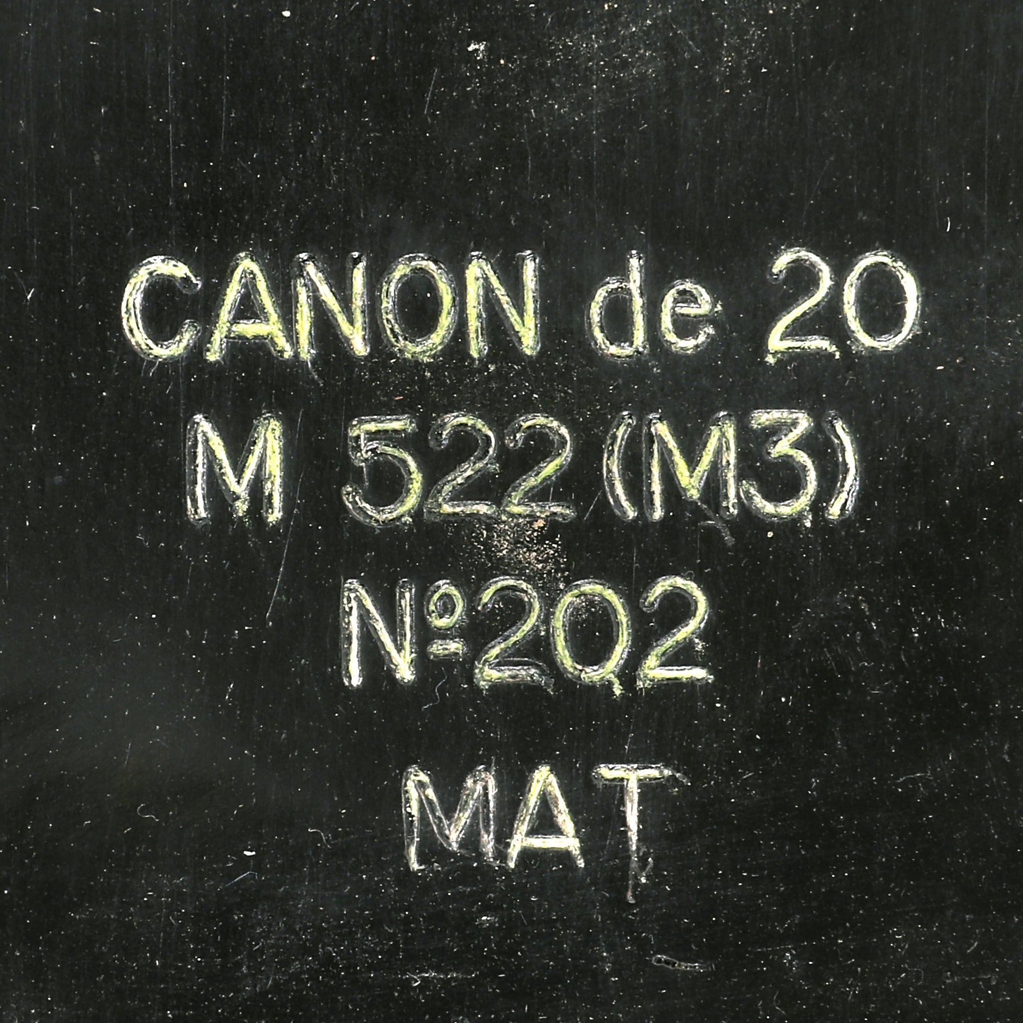 This version of the Hispano-Suiza design a French made version of the U.S. AN/M3 used in the Vought F4U, used to equip the airplanes purchased from the U.S. It was much more cost effective to produce the armaments domestically, as the French definitely had the industrial capacity and skill to do so. It still has the original markings on the rear of the receiver: