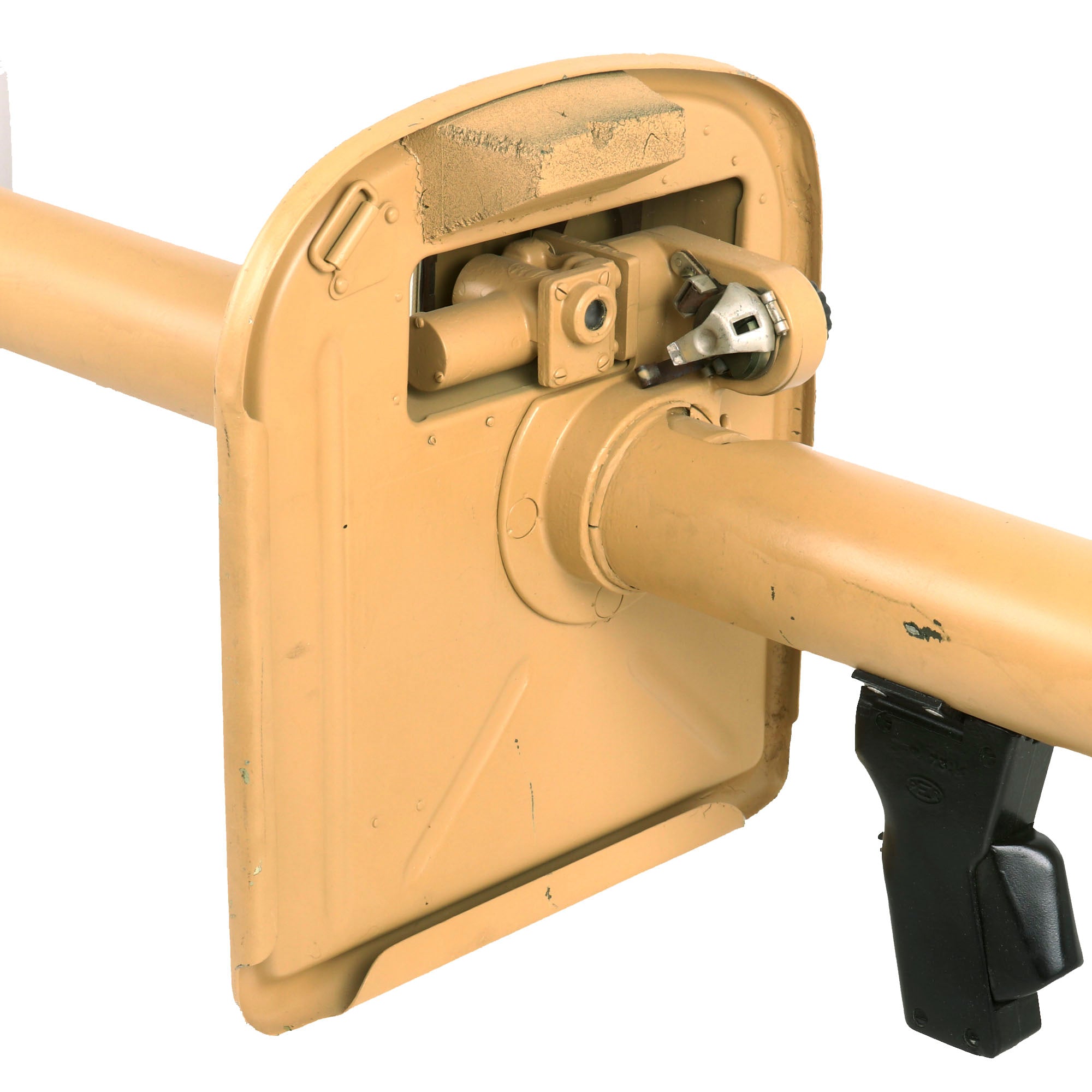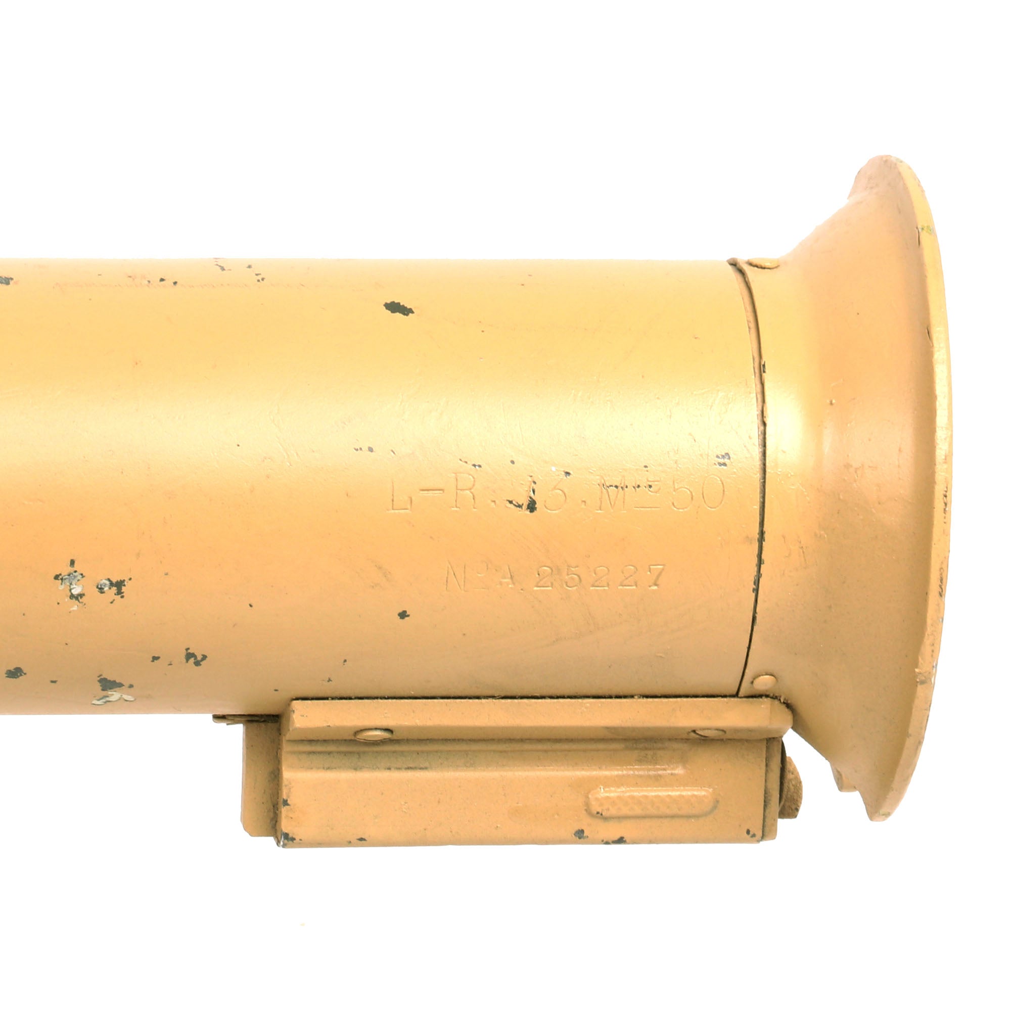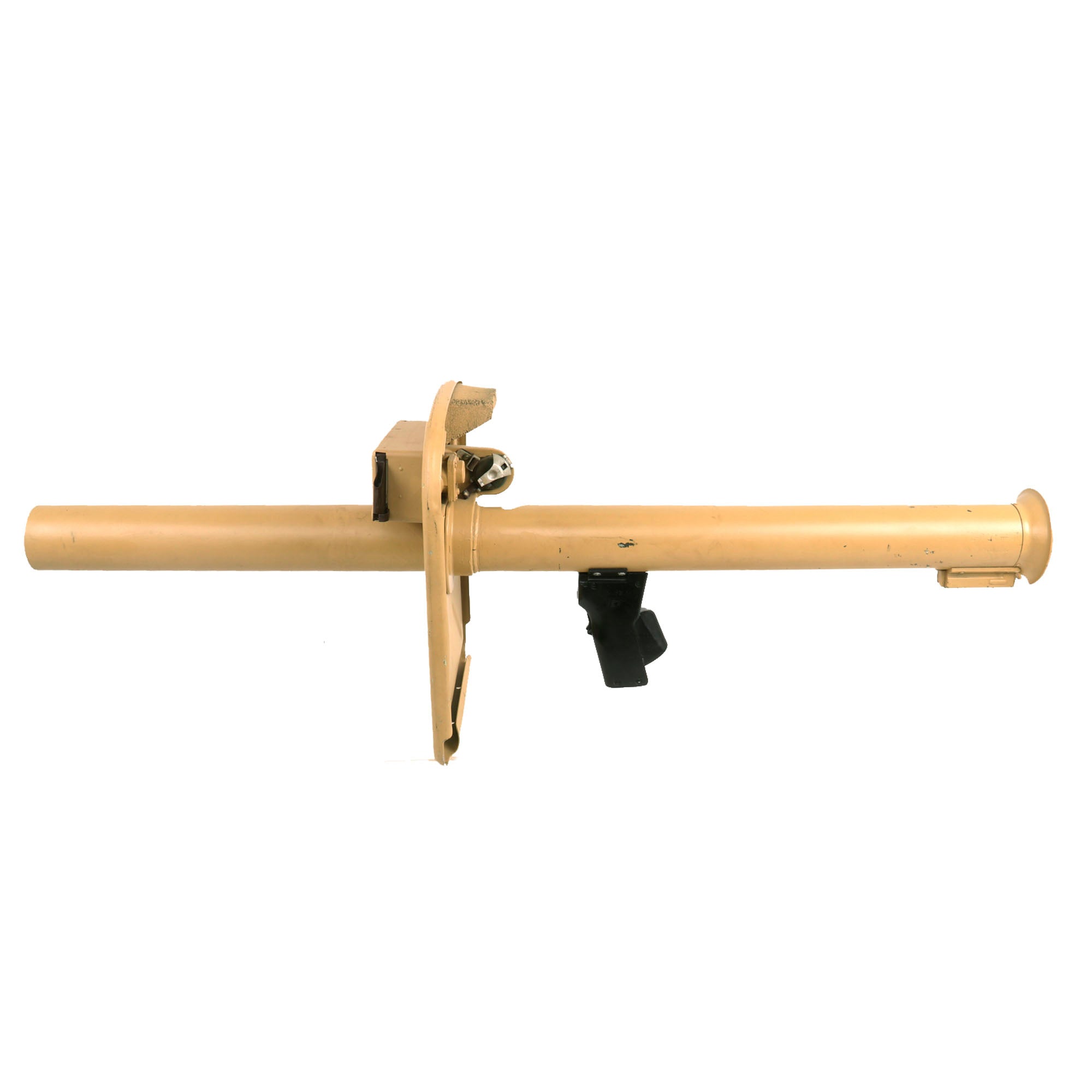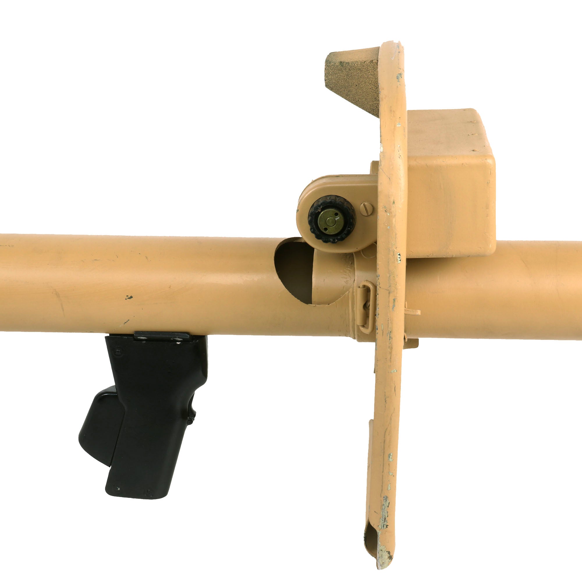 This is a BATF compliant, totally deactivated example of the French LRAC 73-50, recently repainted in lovely desert tan. It has had the firing mechanism deactivated and a bore width hole drilled into the side of the tube. It still retains the original blast shield with both panes of glass still intact, and a functional optical sight. Measures about 4 ft in overall length.