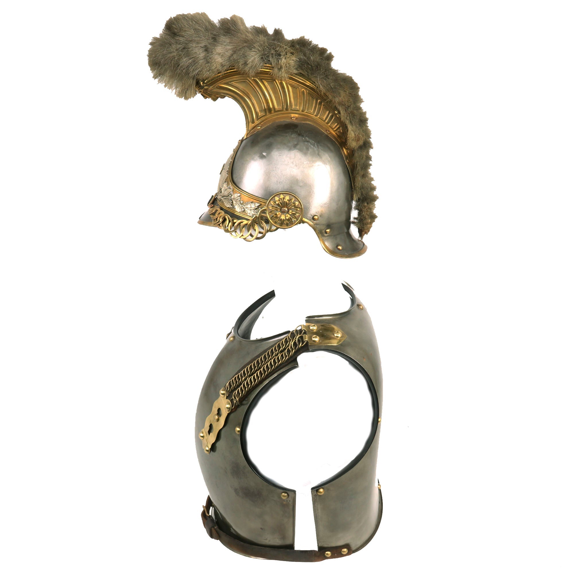 Original Items: One Set Only. The Elite Carabiniere were part of the French Heavy Cavalry during the Napoleonic Wars. After the defeat of Napoleon Bonaparte following his retreat from Moscow in 1812 and his exile to the island of Elba, the French Monarchy were re-instated under King Louis XVIII. Unfortunately this was short-lived with Napoleon's escape from Elba and dramatic return to France in 1815. History tells us that most all of France, including the Military, rose up in rebellion supporting the return of the Emperor and probably one of the world's most nail biting periods followed.