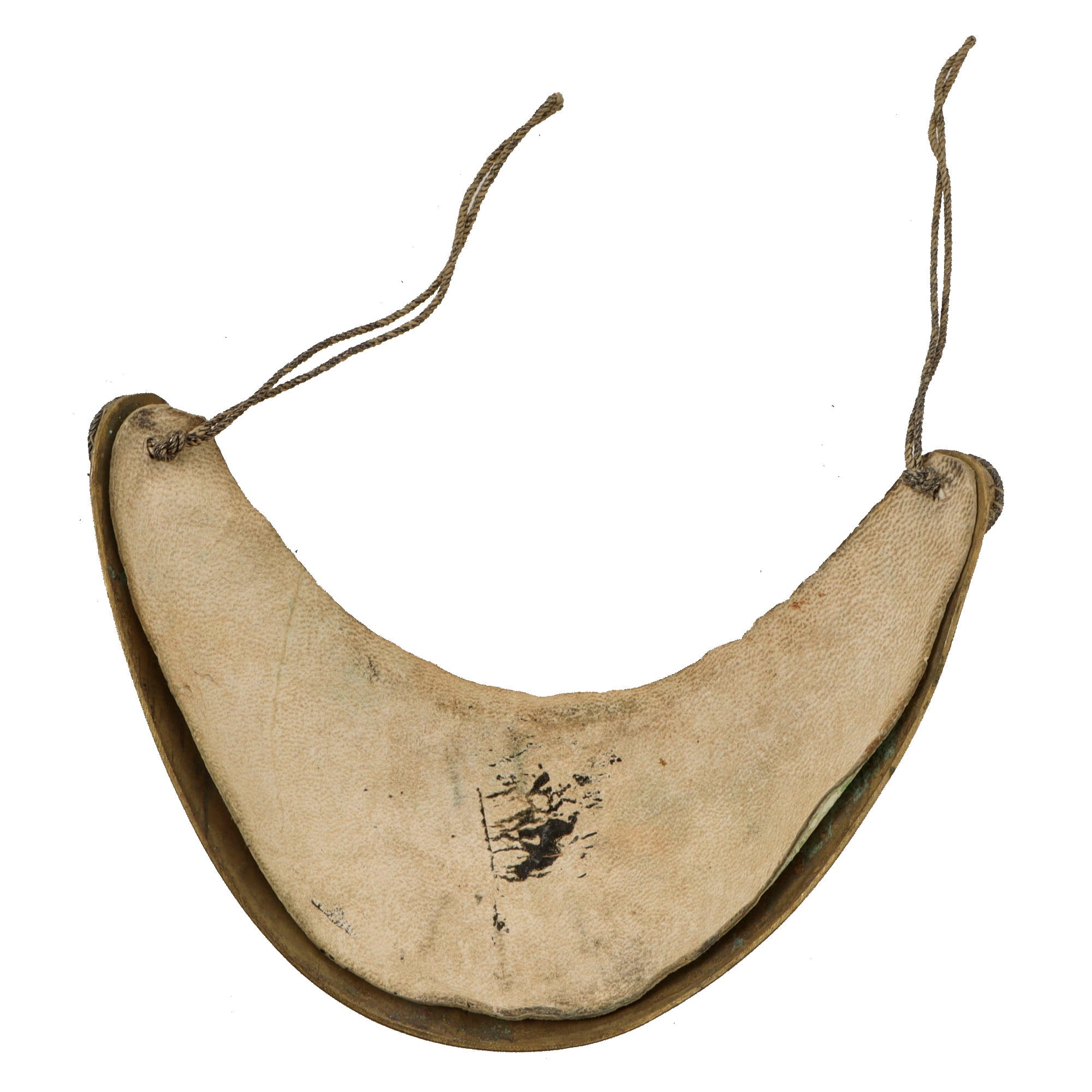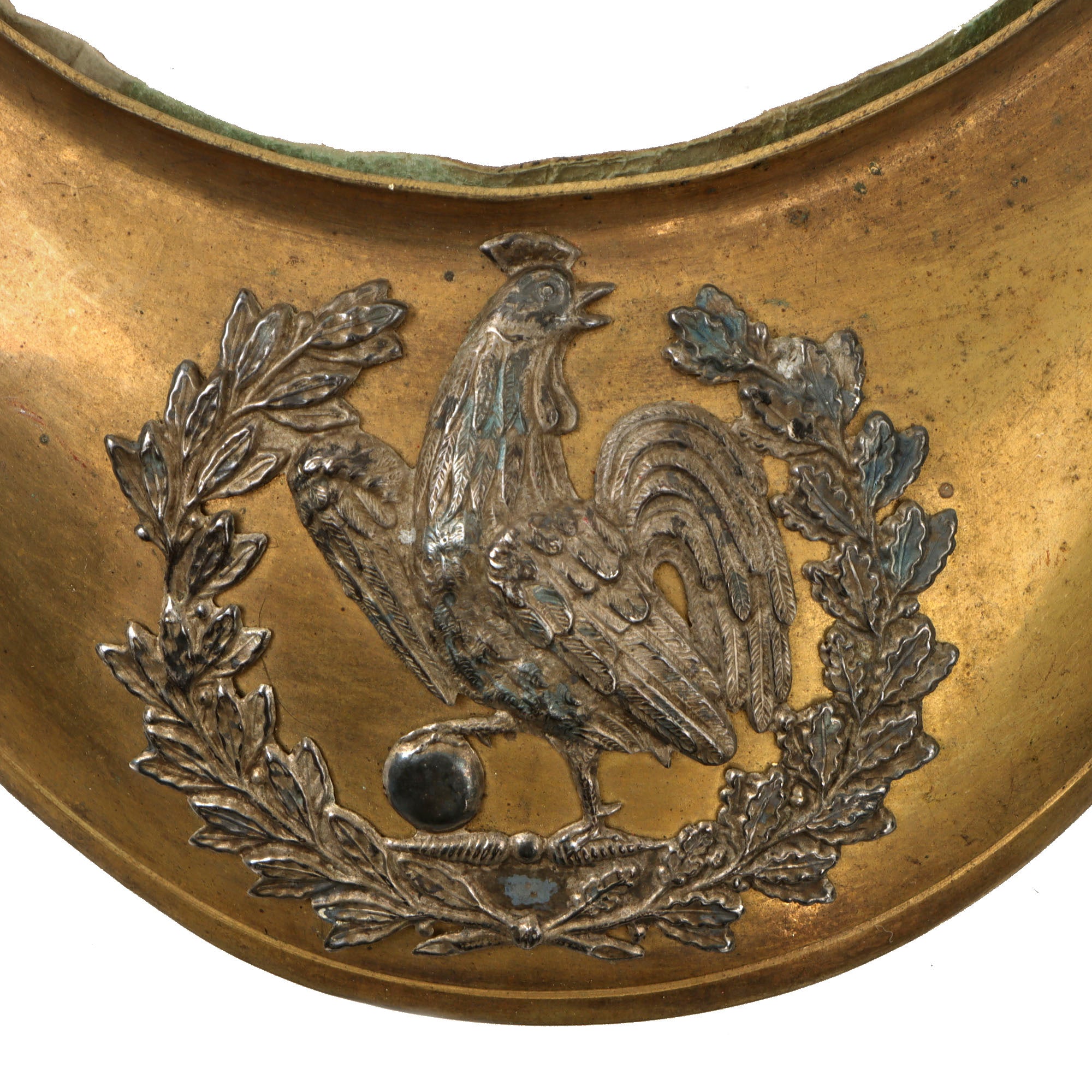 Original Item: Only One Available. This is a lovely example of a 19th Century French Second Empire Officer’s Gorget, as worn by the Royal Guard of the Restoriation. A gorget, from the French gorge meaning throat, was a band of linen wrapped around a woman's neck and head in the medieval period or the lower part of a simple chaperon hood. The term later described a steel or leather collar to protect the throat, a set of pieces of plate armor, or a single piece of plate armor hanging from the neck and covering the throat and chest. Later, particularly from the 18th century, the gorget became primarily ornamental, serving as a symbolic accessory on military uniforms, a use which has survived in some armies.