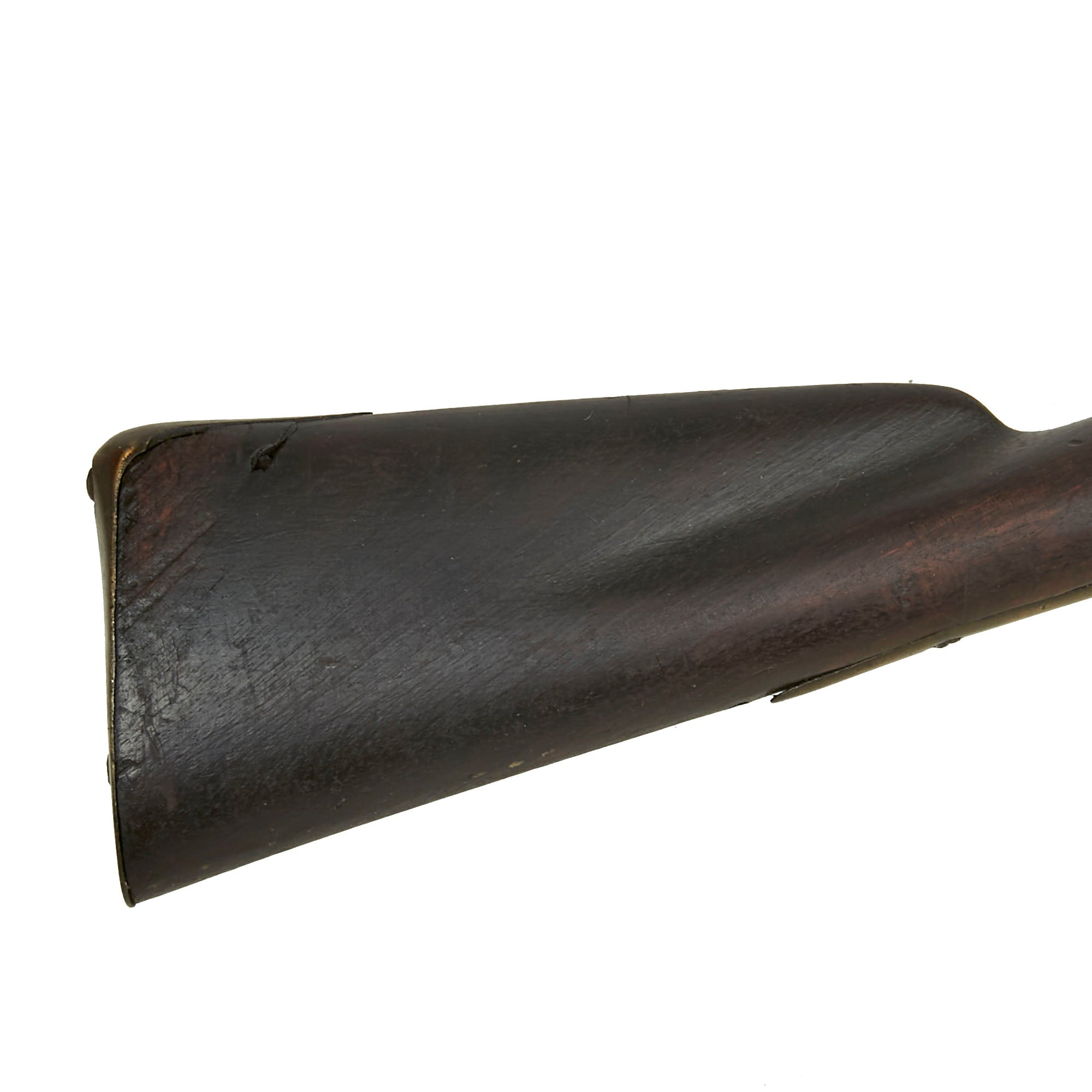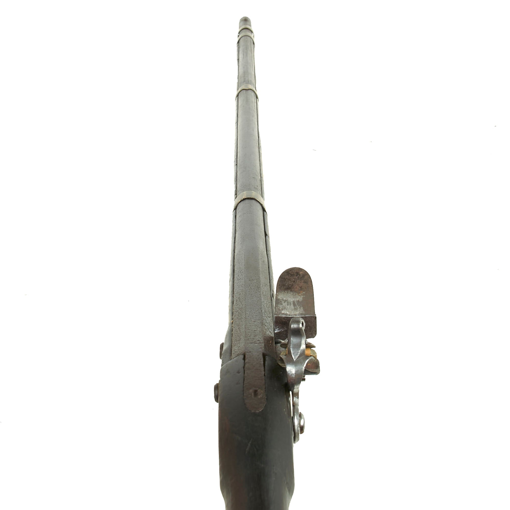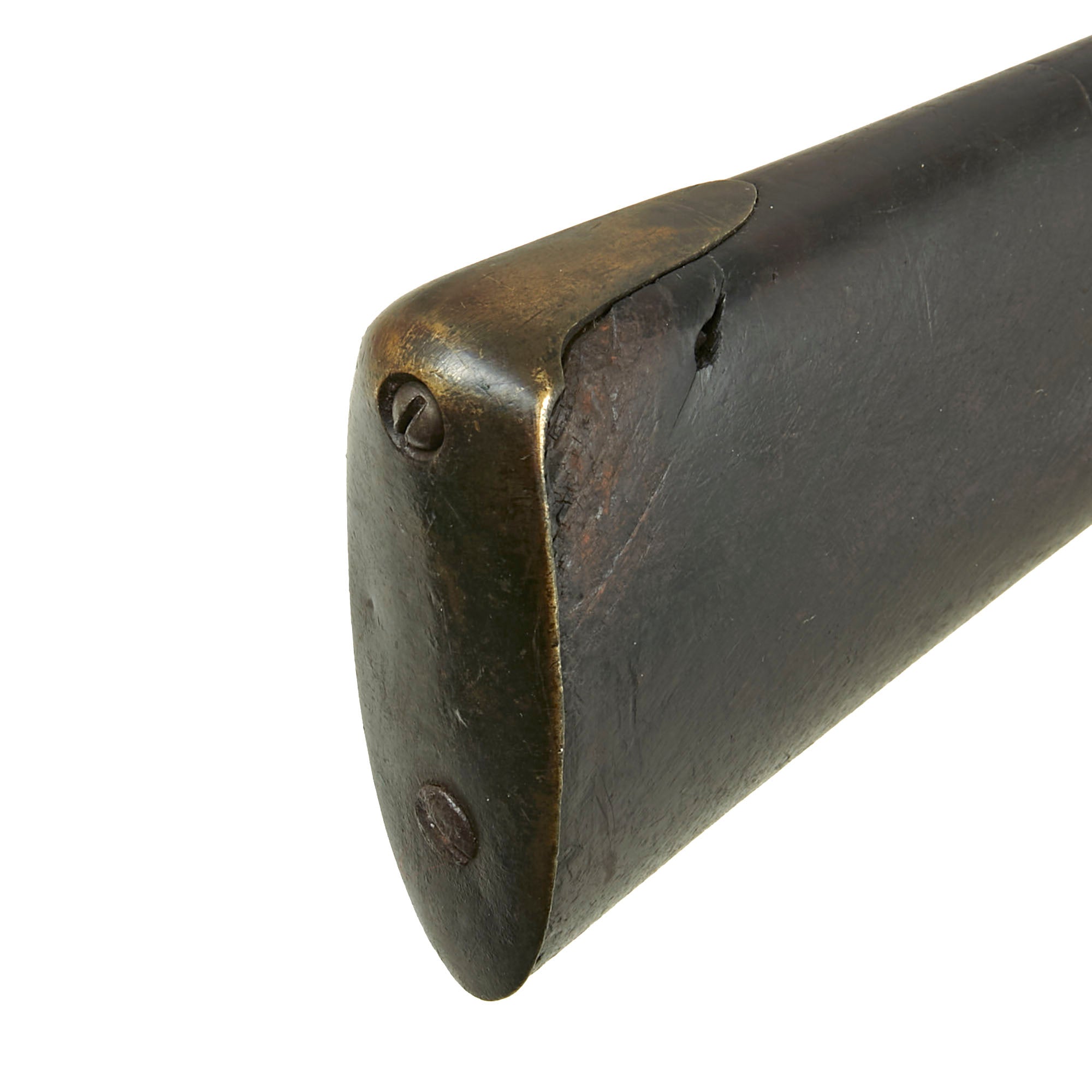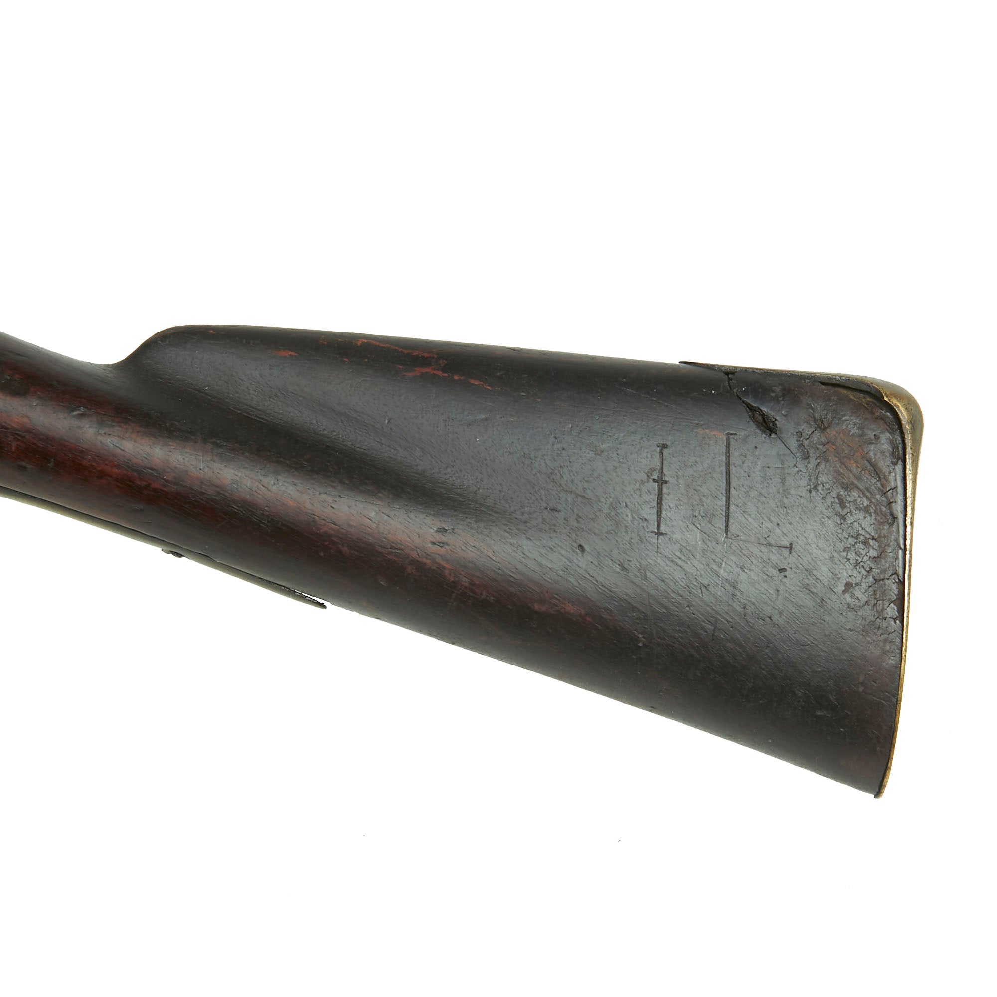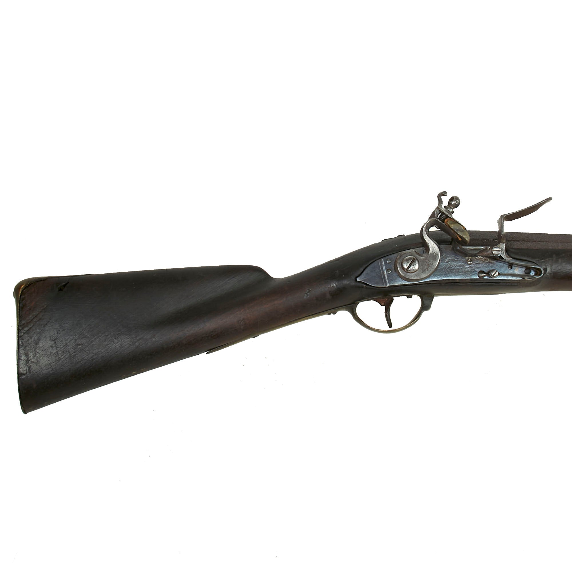The musket is in very good condition, especially considering the harsh environment it was used in, which is also a good reason why no other examples of these exist. The barrel retains a dark heavy patina and scattered pitting, which is a bit worse nearer the breech due to powder burn. The lock is still in its original flintlock configuration, though it does look to have had some repairs in the past to the pan to fix erosion from powder and sea exposure.