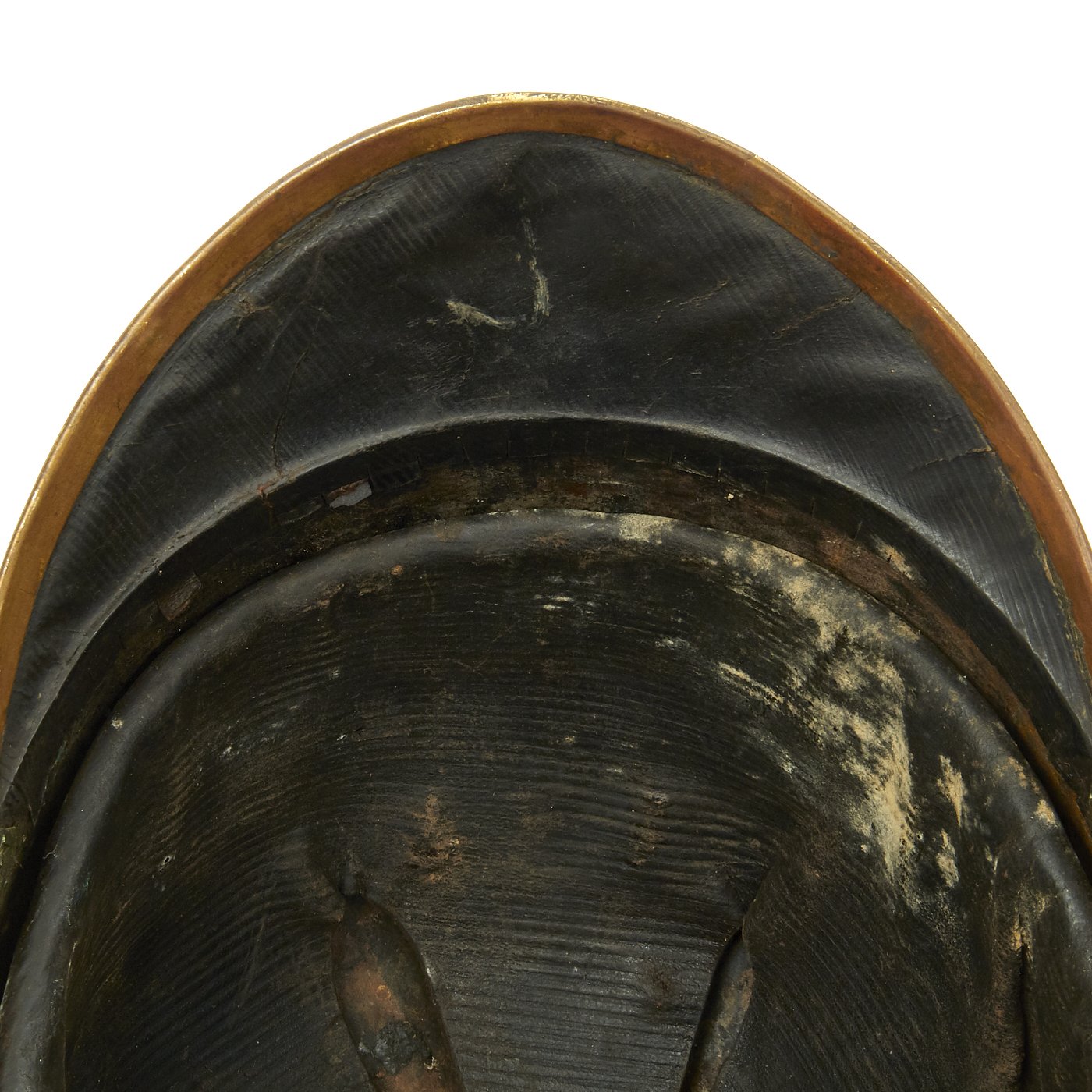 The helmet we are fairly certain comes from the time of NAPOLEON THE THIRD and in fact the helmet displays the CITY OF PARIS GUARD. The Cuirass on the other hand, which was probably issued in the 1860's to the PARIS CITY GUARD of much earlier in production. Close inspection indicates that this indeed the case, and the armor is definitely from the 1830s. Both the front and back plate bear French arsenal markings on the lower left interior, with regimental markings to the lower right.