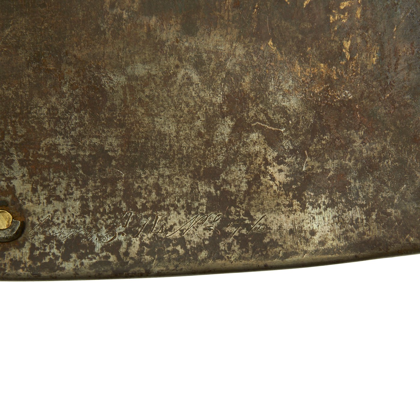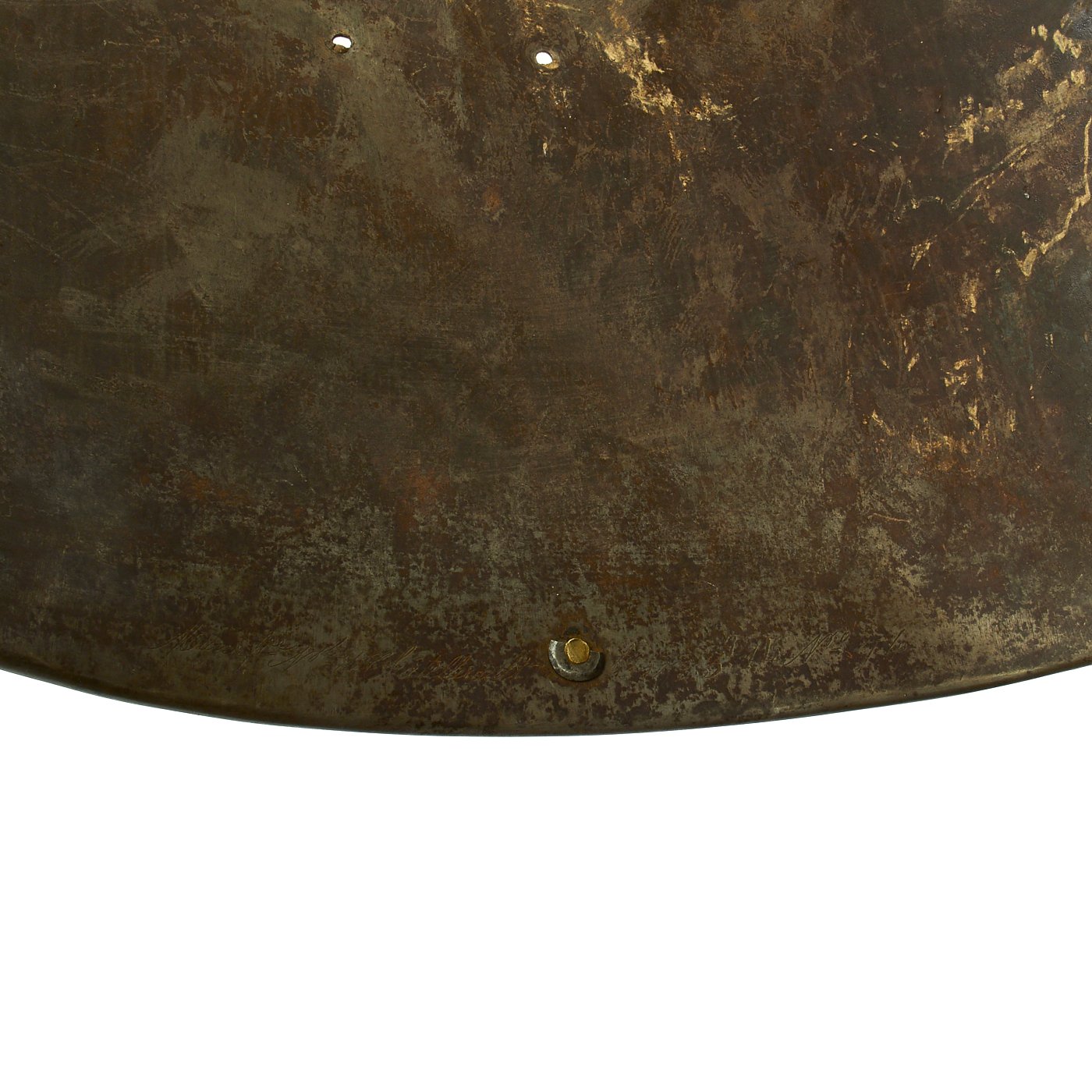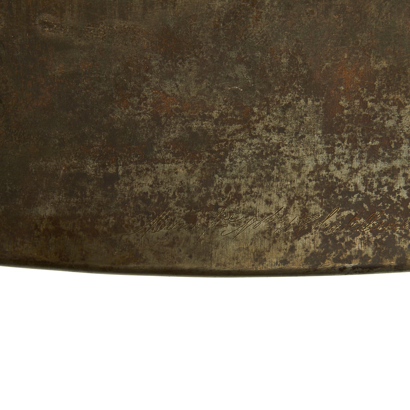 This is a slight abbreviation of "Manufacture Royale de Châtellerault 1832", for Manufacture at the Royal Arsenal at Châtellerault in June 1832. As these were re-used many times in arsenal, it was not uncommon for the front and back plates to become unmatched over the years. These were both manufactured during the reign of Louis-Philippe I, the Citizen King of the House of Orléans, who reigned 1830–1848, which is known as the "July Monarchy" period. The front plate is quite a bit heavier than the rear, as the primary need for protection was from the front. The set still has the brass ring "straps" for other the shoulders, however the leather portions are unfortunately long gone.