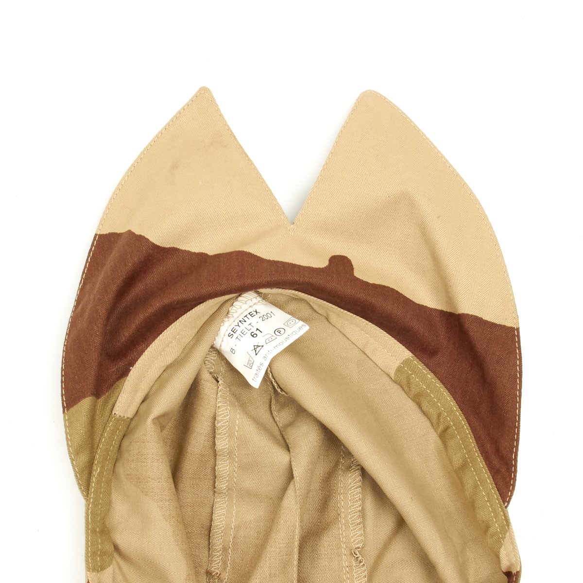Original Items: The beloved Bigeard, one of history’s coolest military headpieces ever made with the two-prong "swallowtail" protecting the neck. Known as the Bigeard in France, after its creator Marcel Bigeard, an officer in the (among others) the war in Indochina. This unique style creates the famous 'casquette Bigeard' cap from the 'excess' material of the long shorts in the standard uniform.
