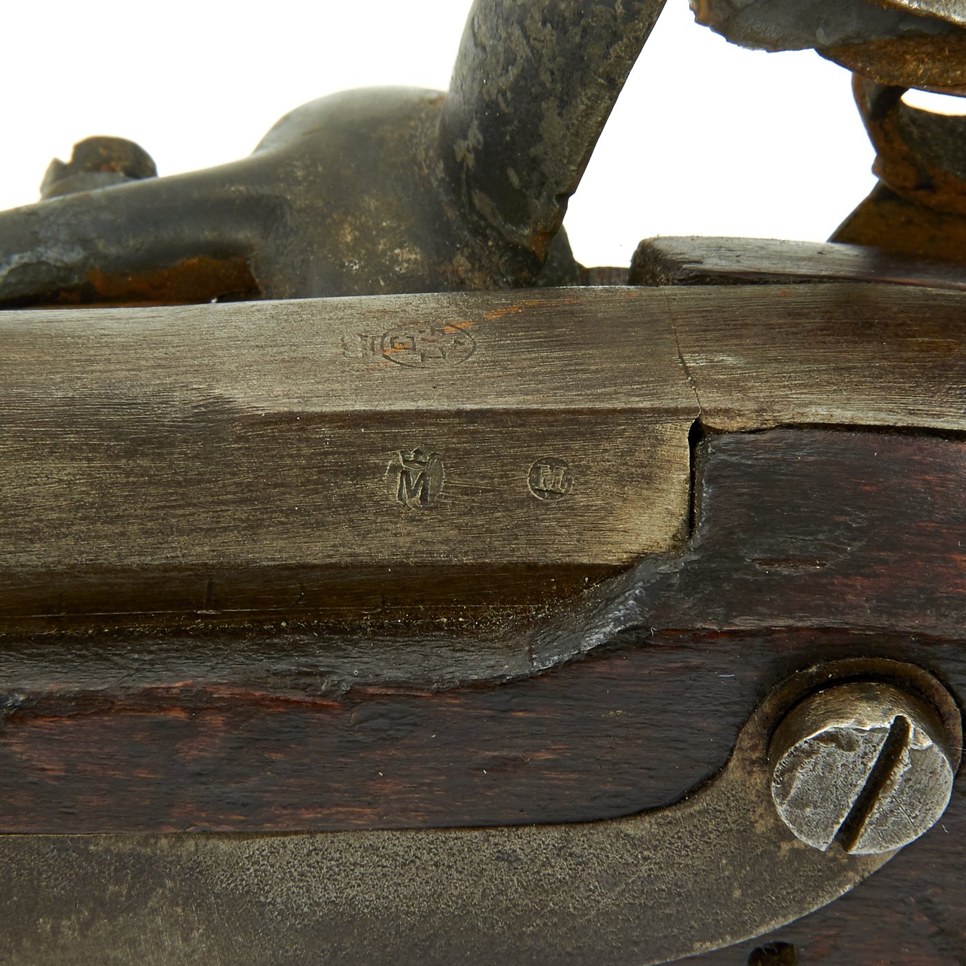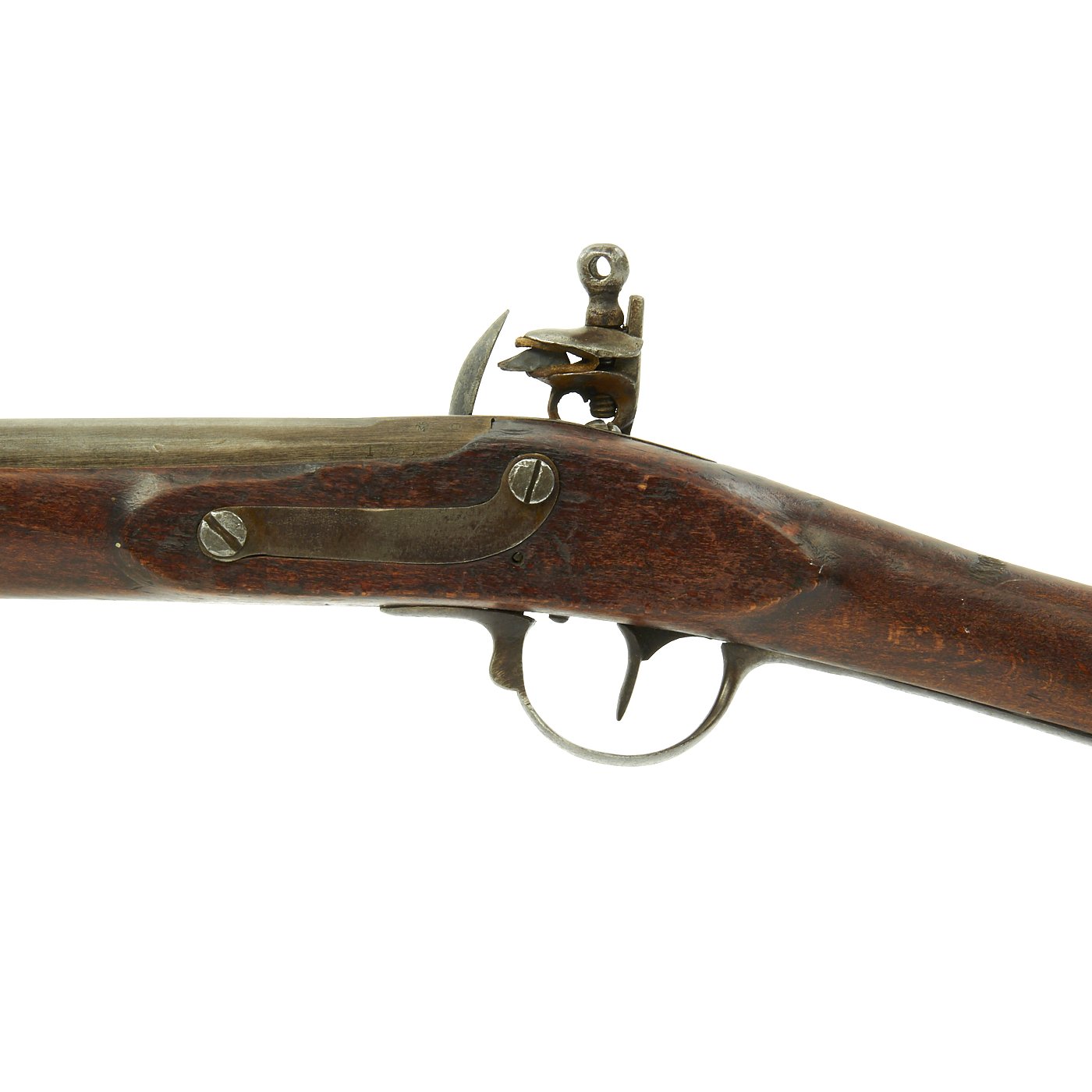 Original Item: Only One Available. We just received this lovely Antique Converted musket, along with about 200 other guns, from a collection that sat in an attic for close to 100 years. Made in the early part of the 1800's this is a French Cadet Musket with a 26" smooth bore barrel and full iron mounts. It features wo barrel bands and original iron ram rod. The flintlock lock is unmarked, but the barrel breech is marked with the E / L G/ * in a Crowned Oval, indicating production in Liège, Belgium. This city manufactured many weapons under contract to France during the early 1800s.