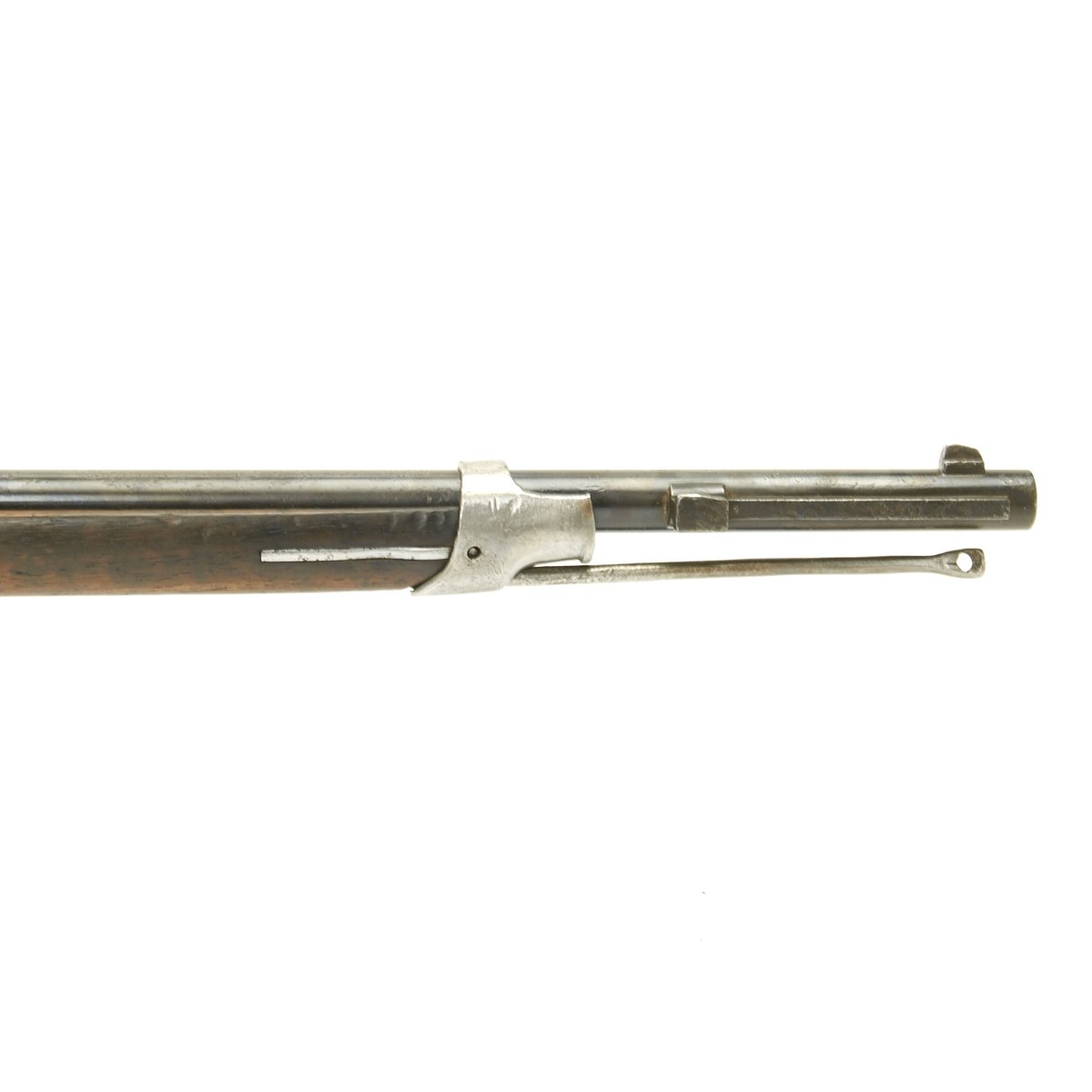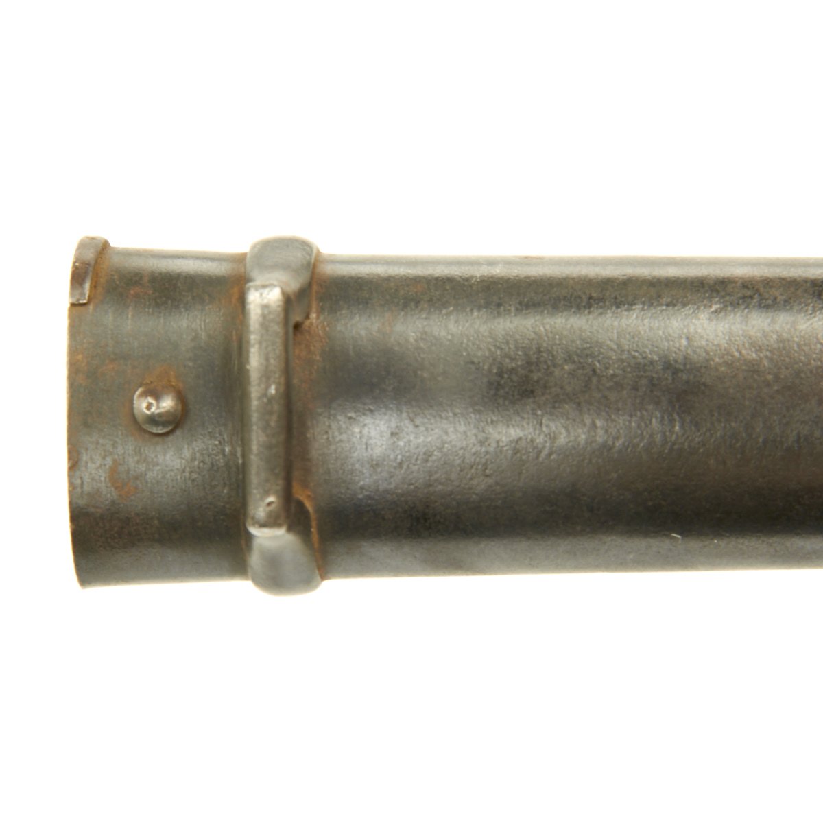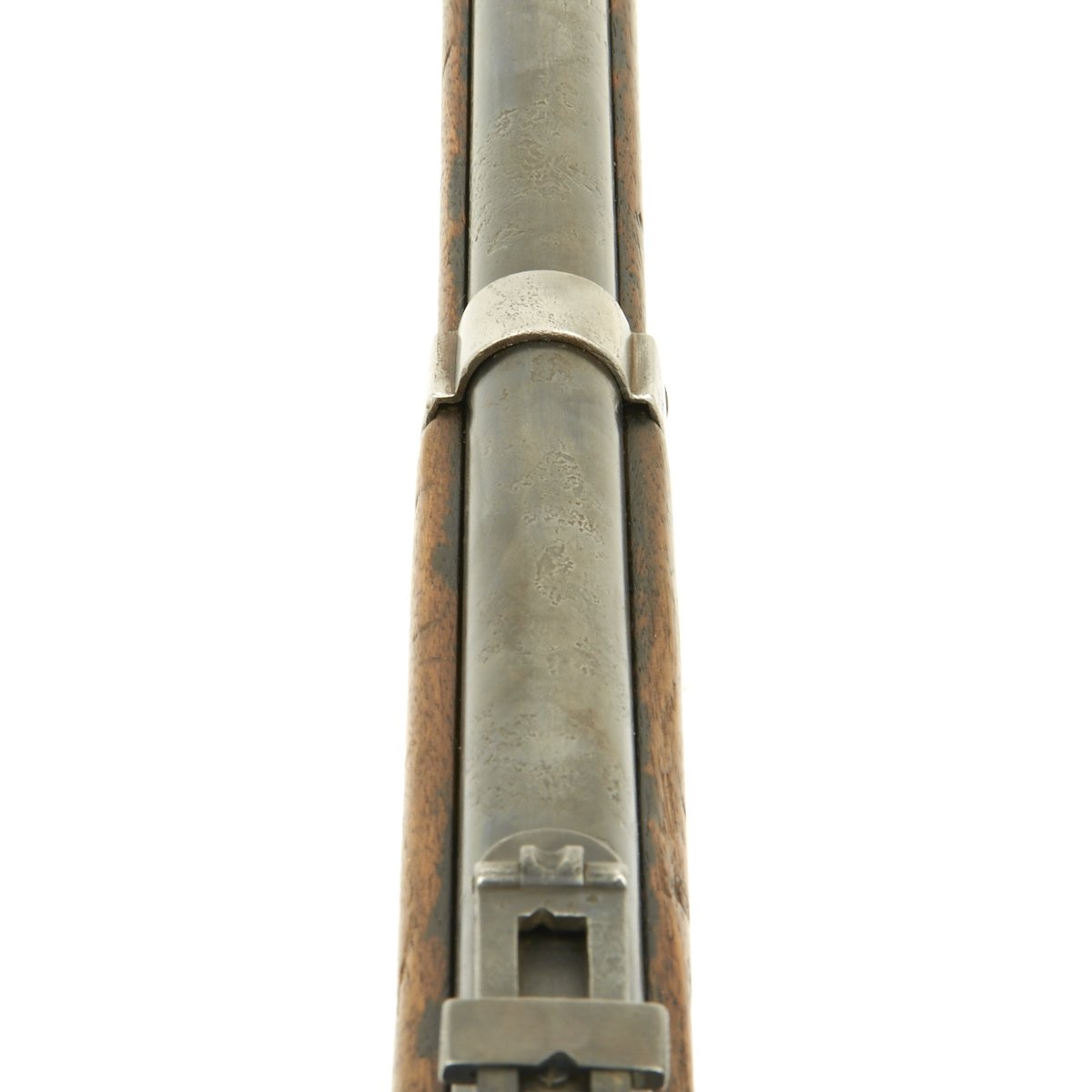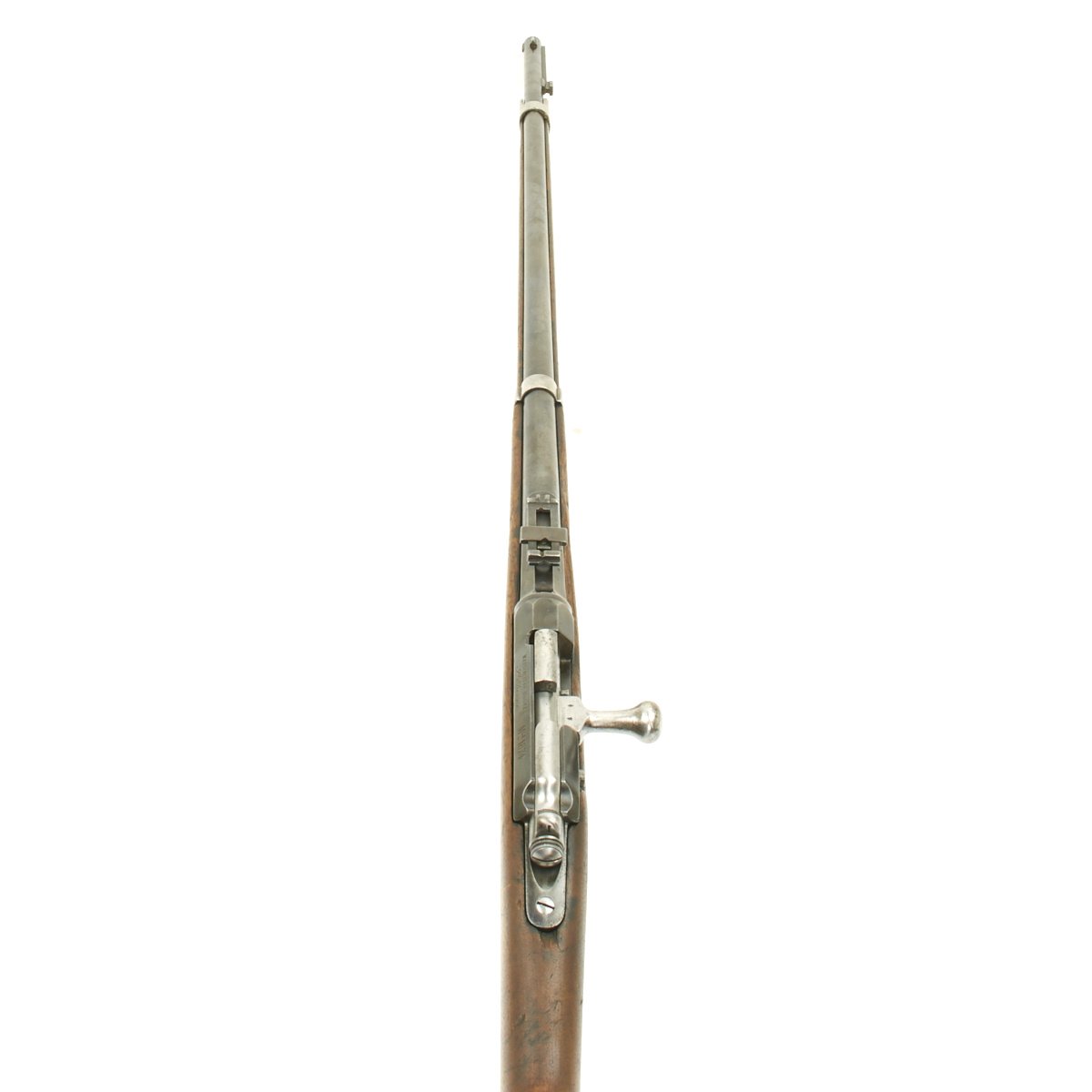 This is a fine example has an excellent bright bore with clear lands and grooves. The received is marked MANUFACTURE D'ARMES St-Étienne Mle 1874 over M80. The rifle has an issue date stamped into the barrel of S.1878. It comes with all original steel mounts and cleaning rod. Most fittings bear the correct government proof marks, though some are worn. The stock has traces of the usual round cartouche, however it is very faint, and the central plug has been sanded down. The rest of the stock is also worn, with chips and dents throughout. This rifle has partially matched serial numbers, indicating a long service life, as indicated by the stock condition. Serial number 10976 is present on the barrel, stock, and all parts of the bolt except for the bolt face, which has been replaced.