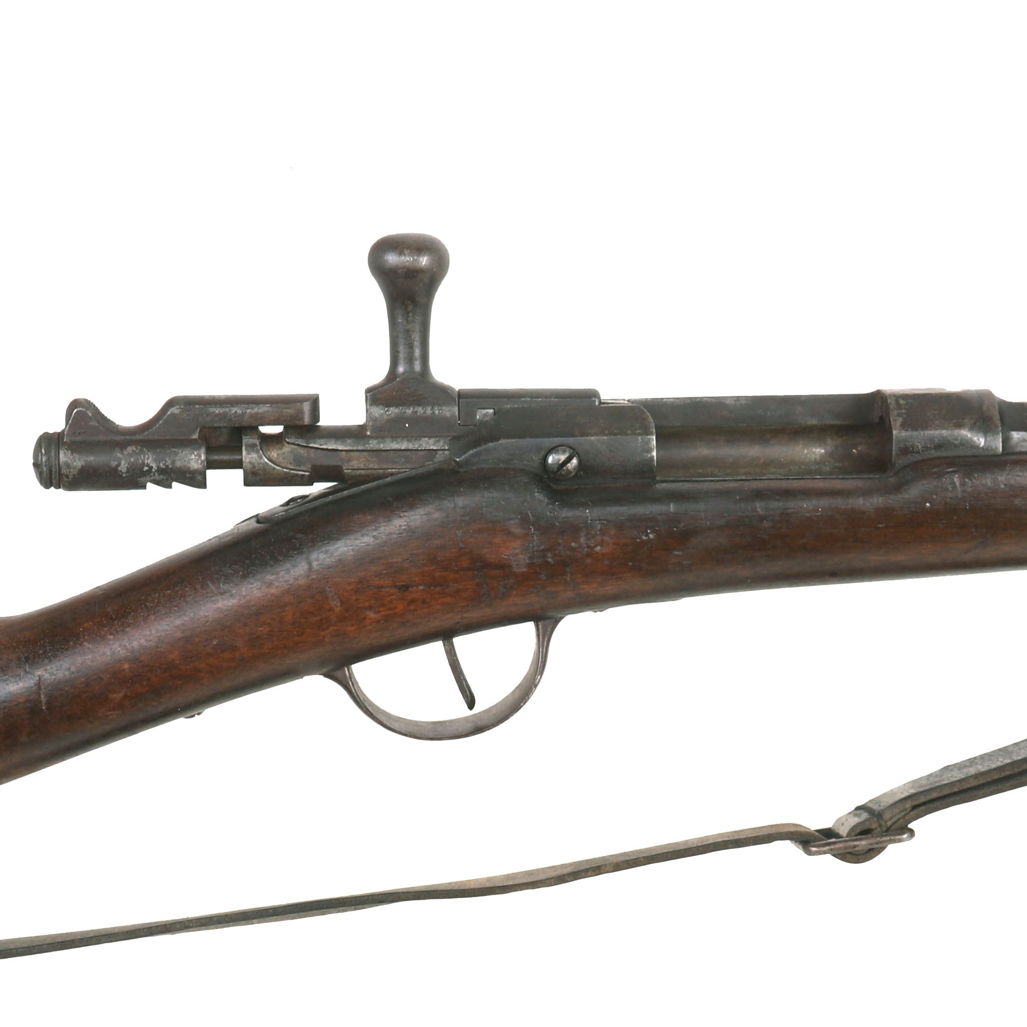 Original item: Only One Available. The Fusil Gras Modèle 1874 M80 was one of the primary French service rifle of the late 19th century. The Gras used by the French Army was an adaptation to metallic cartridge of the Chassepot Mle 1866 breech-loading rifle, developed by Colonel Basile Gras. The first examples were in fact conversions of the Chassepot, replacing the needle-fire system with a bolt action one.