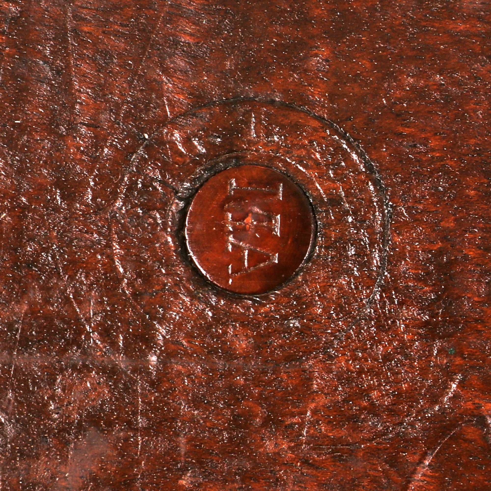 The stock is in good condition with a very nice dark red brown color, showing that it saw much use while in service. It has the expected dents, chips, scratches, and small gouges commensurate with service. There is some cracking next to the butt plate, which looks to have seen oxidation and possible water exposure. There is also a crack on the left side by the rear of the receiver, a somewhat common place to see cracks due to stresses from firing. The stock does however have a lovely pattern of figuring on both sides of the butt stock, and the partially legible stock roundel still has the original wooden insert present, marked MA. Both sling swivels are present, and an original sling is still fitted to the gun, though it may be from the WWI era.