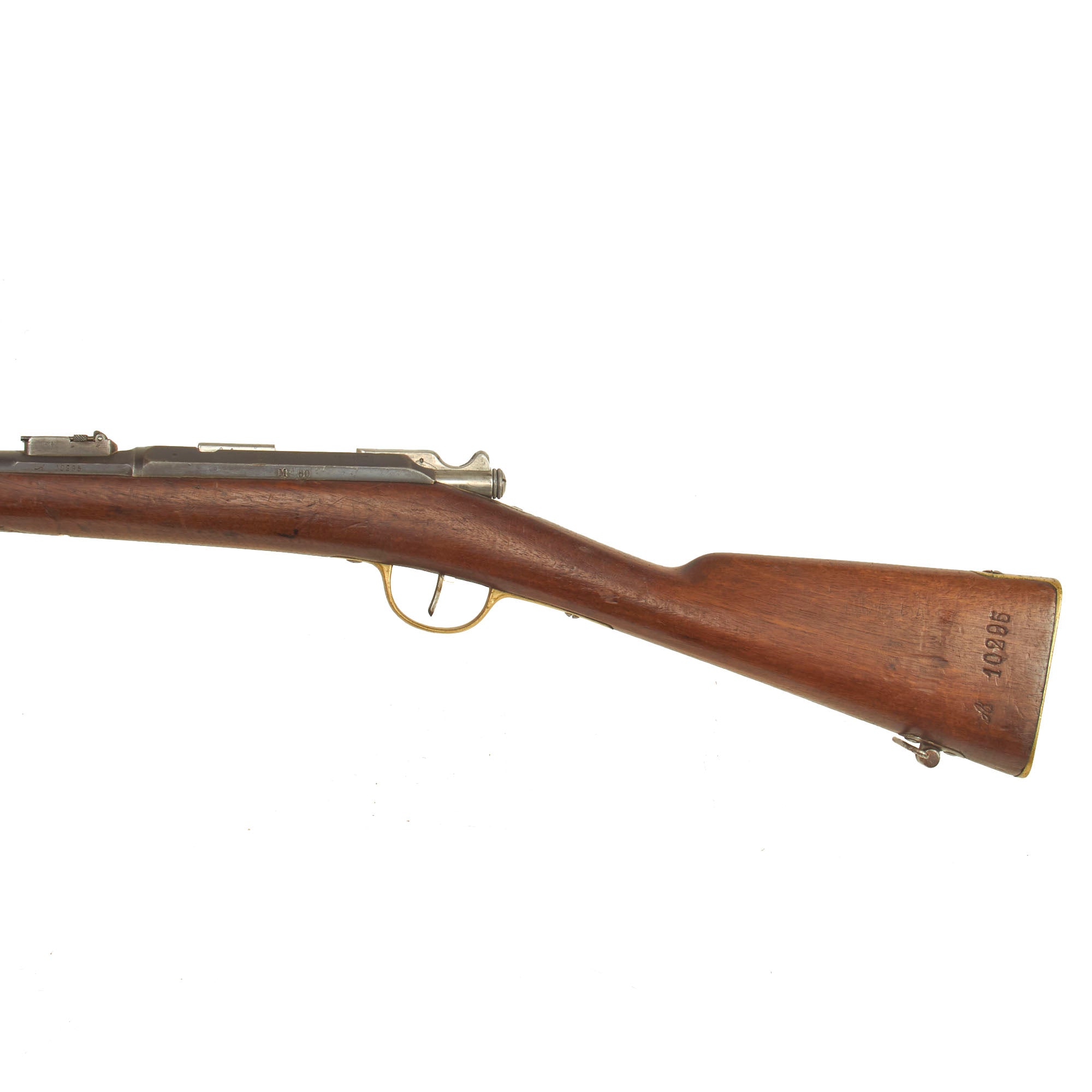 Original item: Only One Available. The Fusil Gras Modèle 1874 M80 was one of the primary French service rifle of the late 19th century. The Gras used by the French Army was an adaptation to metallic cartridge of the Chassepot Mle 1866 breech-loading rifle, developed by Colonel Basile Gras. The first examples were in fact conversions of the Chassepot, replacing the needle-fire system with a bolt action one.