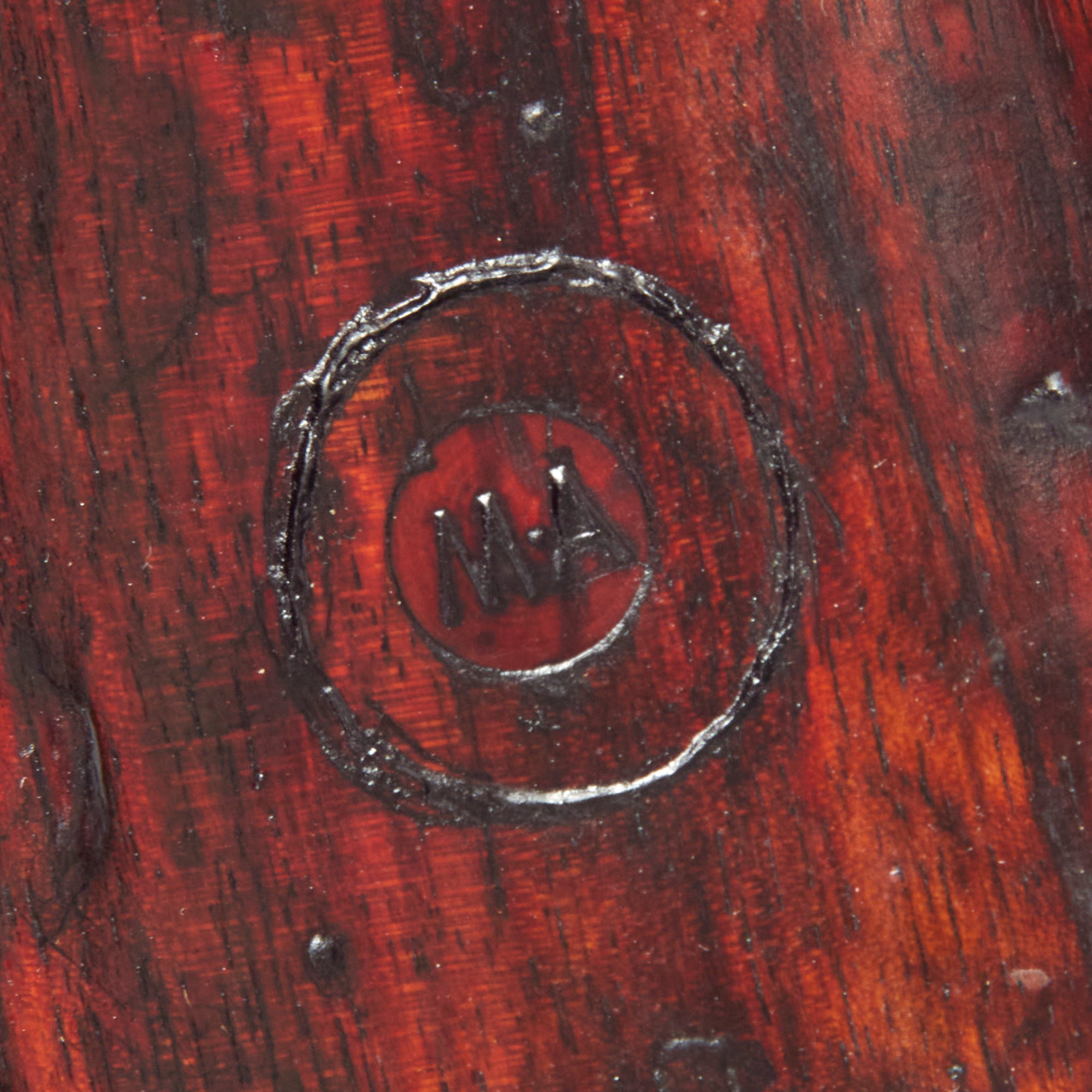 The left side of the receiver is still faintly marked MANUFACTURE D'ARMES / St. Étienne / M 80 next to model designation MLE 1874,indicating manufacture at the government arsenal at St. Étienne. The "M 80" is for a later update to the action that added a channel for gas escape to the bolt and receiver, in the case of a ruptured primer. The rifle has an issue date marking of S. 1880 stamped into the right barrel nocks form, for manufacture at the Imperial Arsenal of St. Étienne in 1880.