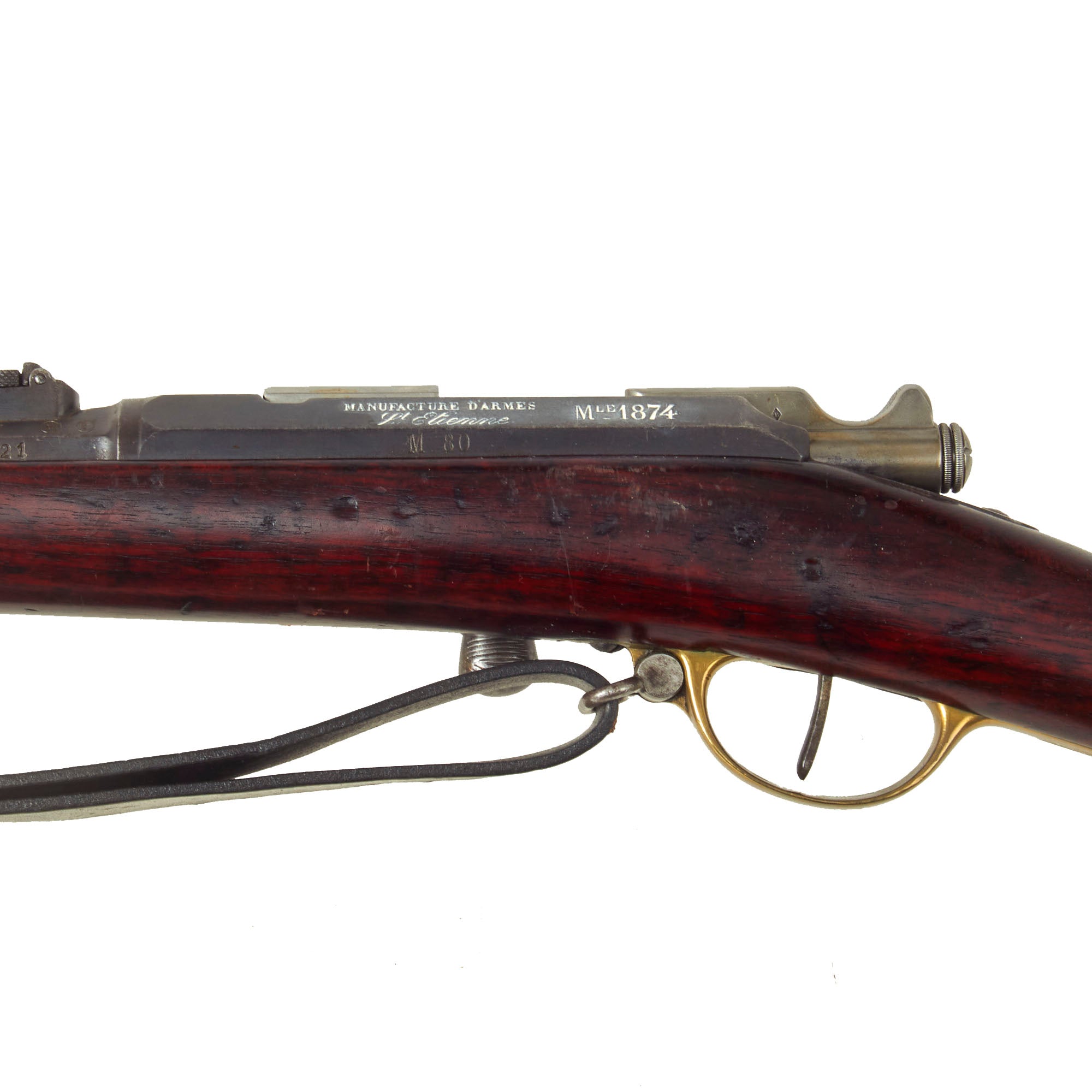 Original item: Only One Available. The Fusil Gras Modèle 1874 M80 was one of the primary French service rifle of the late 19th century. The Gras used by the French Army was an adaptation to metallic cartridge of the Chassepot Mle 1866 breech-loading rifle, developed by Colonel Basile Gras. The first examples were in fact conversions of the Chassepot, replacing the needle-fire system with a bolt action one.