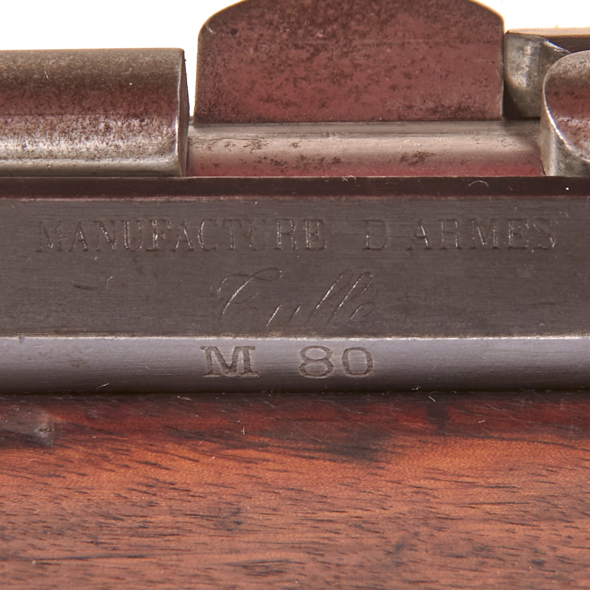 Original item: Only One Available. The Fusil Gras Modèle 1874 M80 was one of the primary French service rifle of the late 19th century. The Gras used by the French Army was an adaptation to metallic cartridge of the Chassepot Mle 1866 breech-loading rifle, developed by Colonel Basile Gras. The first examples were in fact conversions of the Chassepot, replacing the needle-fire system with a bolt action one.