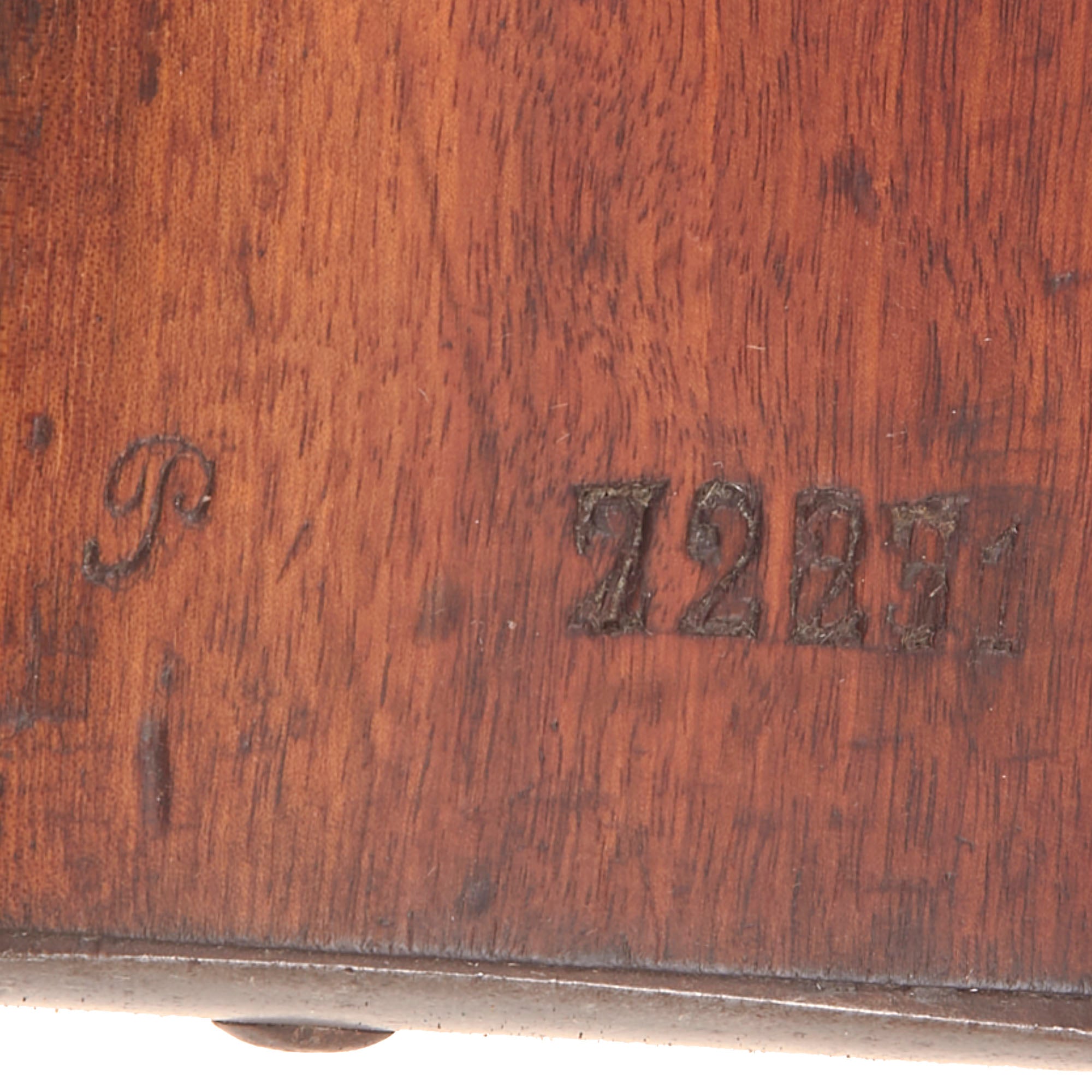 This rifle is marked with serial RT 60281 on the left side of the barrel nocks form and on the bayonet stand, however all of the other serial numbers are not matching. This rifle was most likely reconditioned at arsenal, where parts were swapped freely. We even noticed that the date around the "Holy Water Plug" boxwood insert on the right side of the stock is AOÛT / 1879, so the stock was definitely swapped out as well.