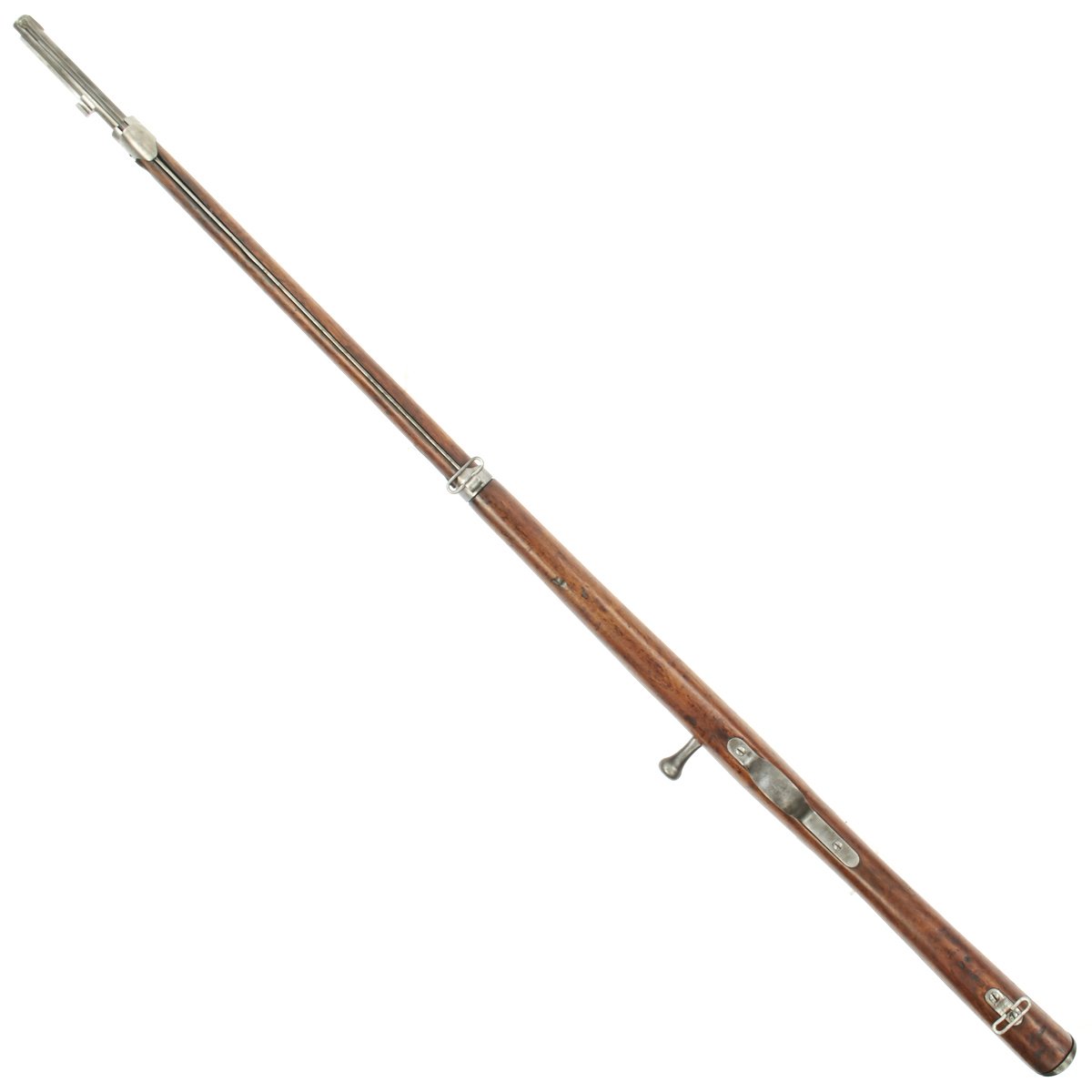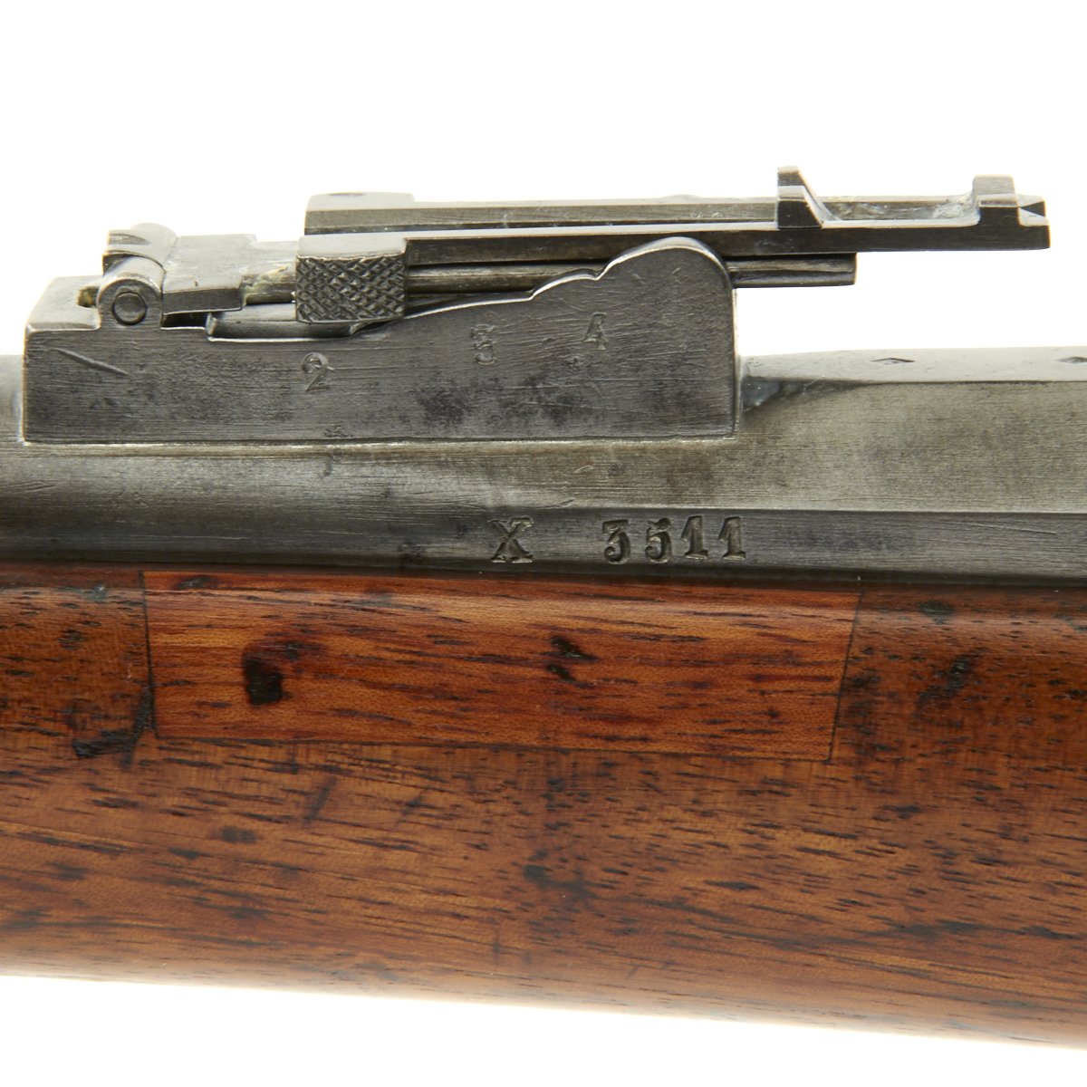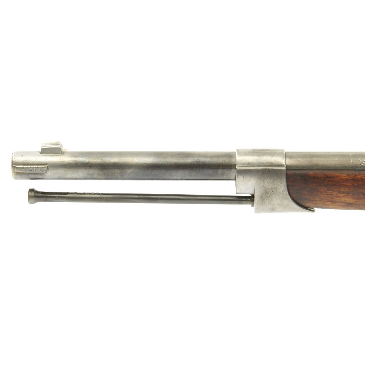 The rifle is in good condition with a bare steel finish, un-blued, as it was originally issued, though it has acquired a lovely light gray patina over the decades, with some areas of light corrosion. The rifle comes complete with cleaning rod and a fully intact needle, though it is missing the leather sealing washers. The rifle is serial numbered X 3511 on the barrel, receiver, bayonet stand, stock, and both parts of the bolt, making this an "all-matching" example.