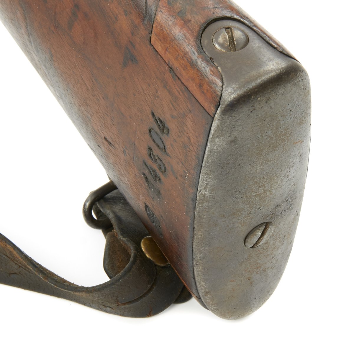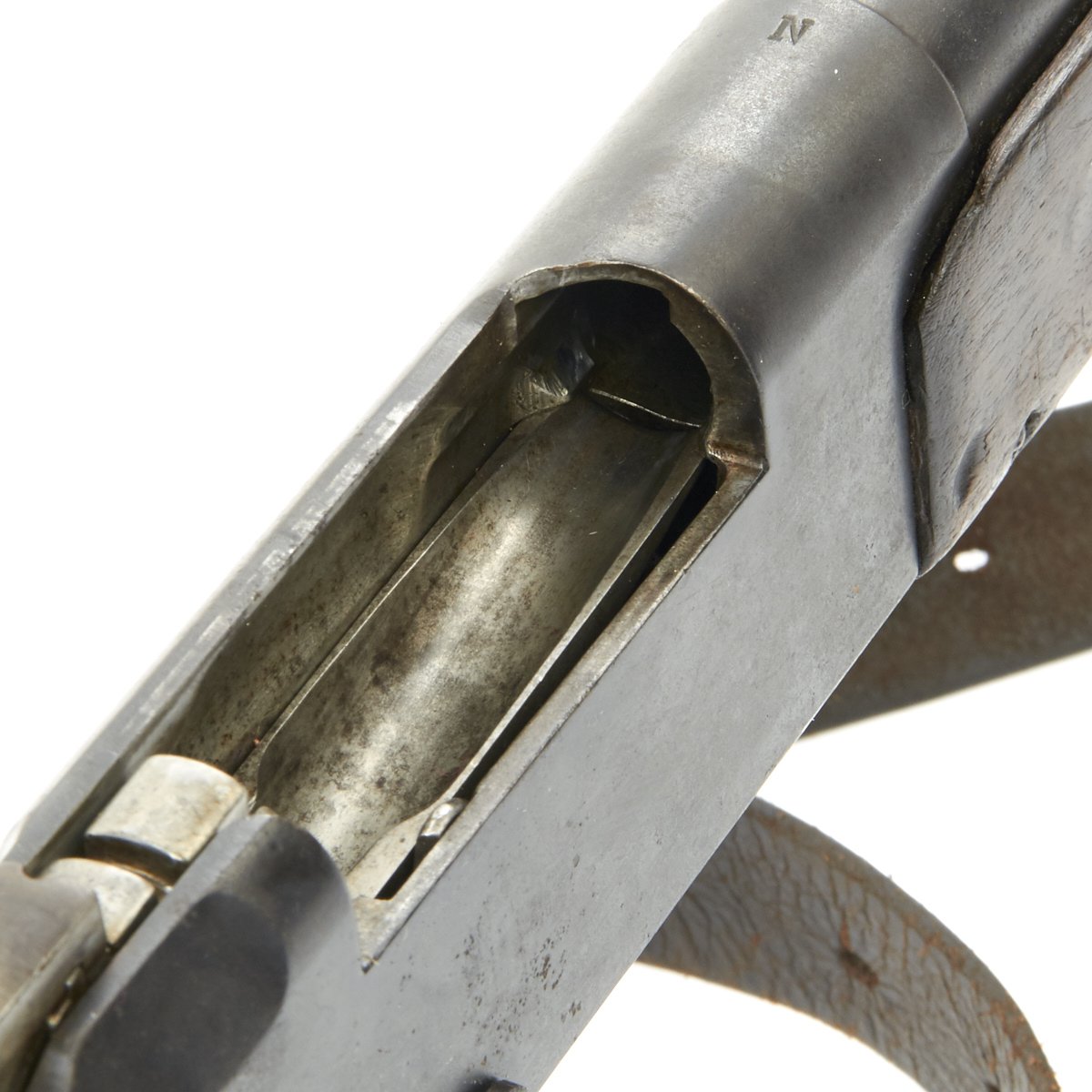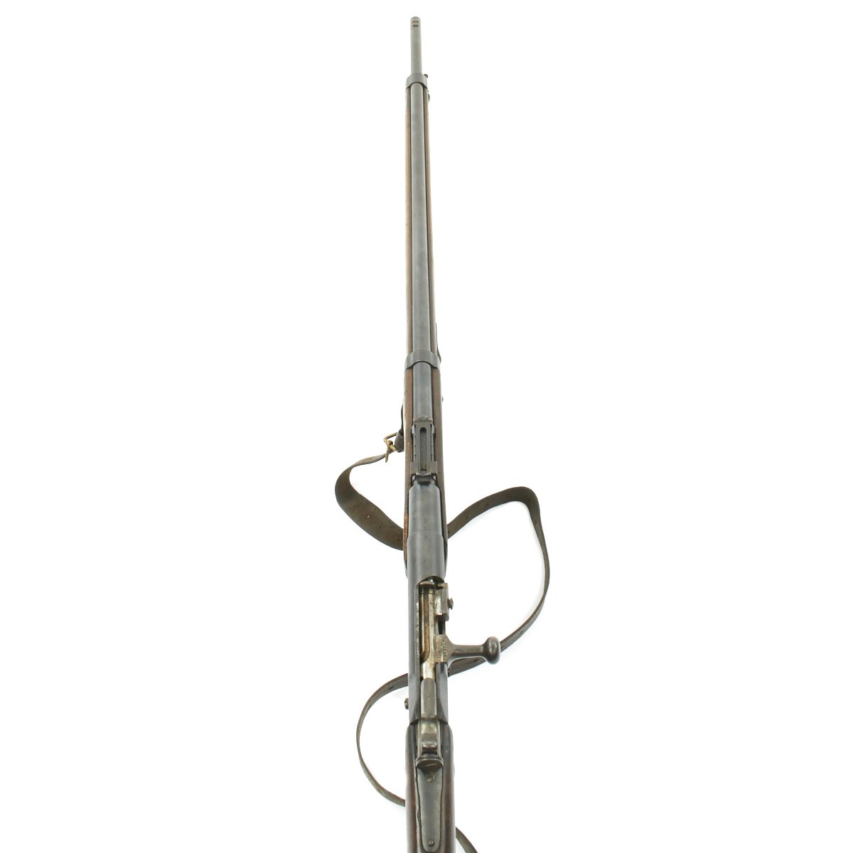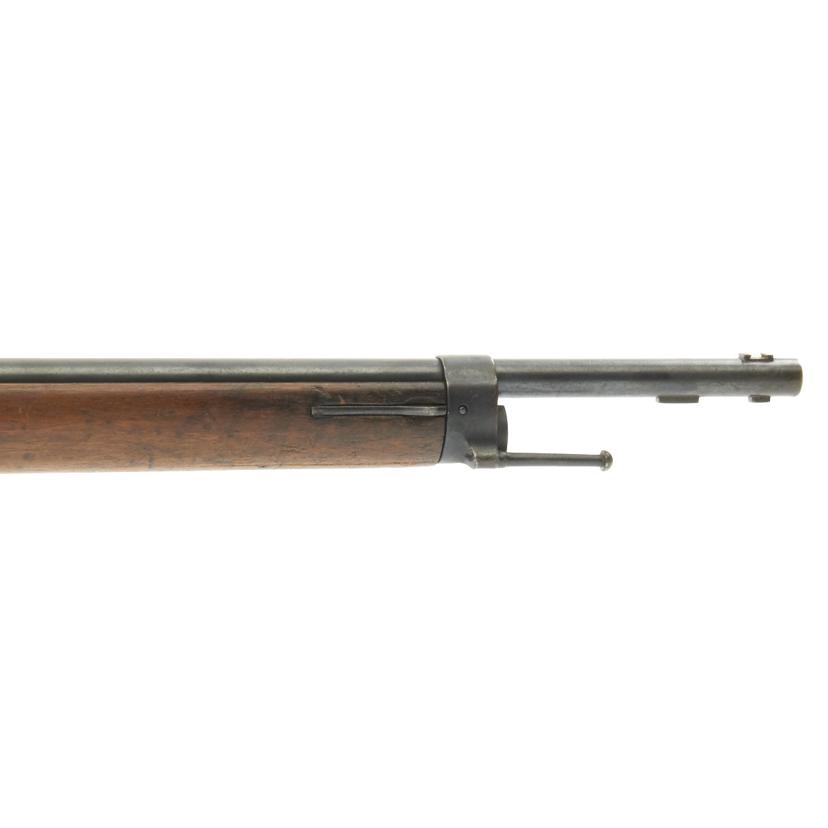 Original Item: Only One Available. The Lebel Model 1886 rifle (French: Fusil Modèle 1886 dit "Fusil Lebel") is also known as the "Fusil Mle 1886 M93", after a bolt modification was added in 1893. It is an 8 mm bolt action infantry rifle that entered service in the French Army in 1887. It is a repeating rifle that can hold eight rounds in its forestock tube magazine, one round in the transporter plus one round in the chamber. The Lebel rifle has the distinction of being the first military firearm to use smokeless powder ammunition. The new propellant powder, "Poudre B," was nitrocellulose-based and had been invented in 1884 by French chemist Paul Vieille. Lieutenant Colonel Nicolas Lebel contributed a flat nosed 8 mm full metal jacket bullet ("Balle M," or "Balle Lebel"). Twelve years later, in 1898, a solid brass pointed (spitzer) and boat-tail bullet called "Balle D" was retained for all 8mm Lebel ammunition. Each case was protected against accidental percussion inside the tube magazine by a primer cover and by a circular groove around the primer cup which caught the tip of the following pointed bullet. Featuring an oversized bolt with front locking lugs and a massive receiver, the Lebel rifle was a durable design capable of long range performance. In spite of early obsolete features, such as its tube magazine and the shape of 8mm Lebel rimmed ammunition, the Lebel rifle remained the basic weapon of French line infantry during World War I (1914–1918). Altogether, 3.45 million Lebel rifles were produced by the three French state factories between 1887 and 1916.