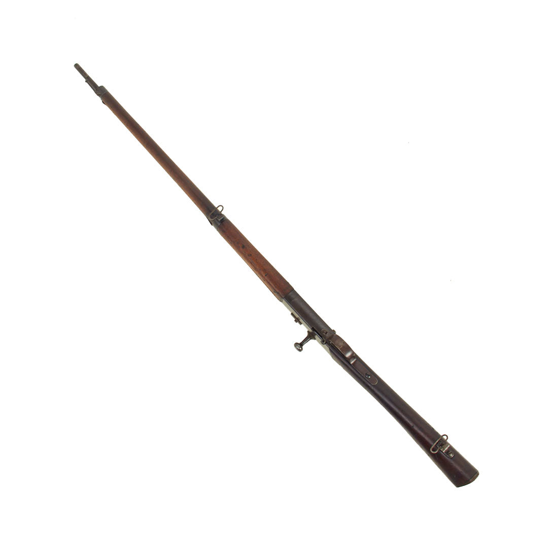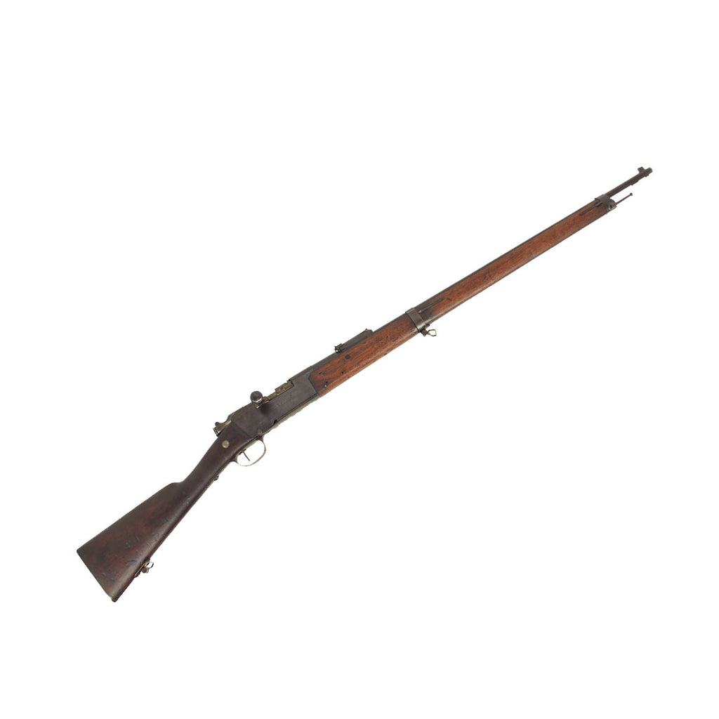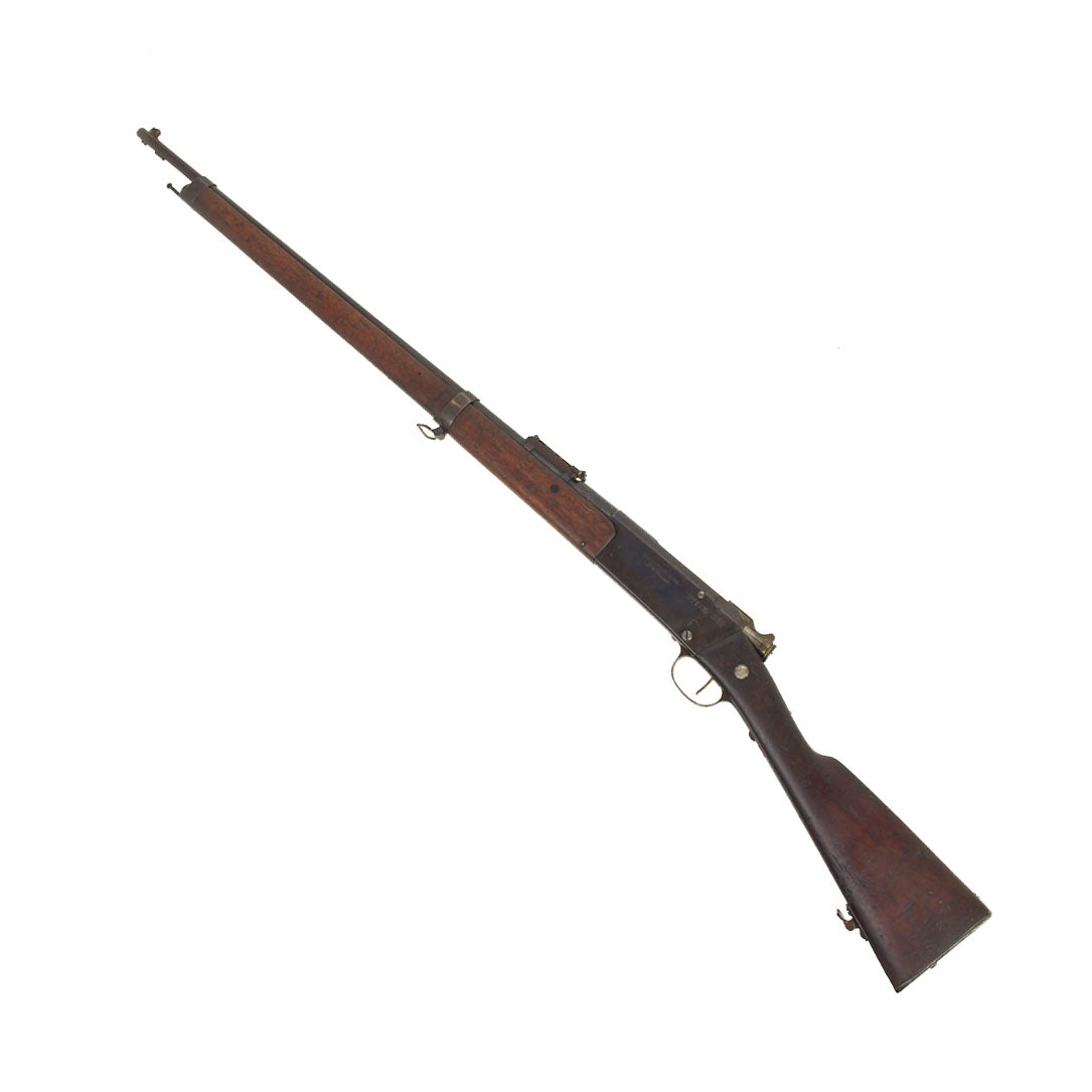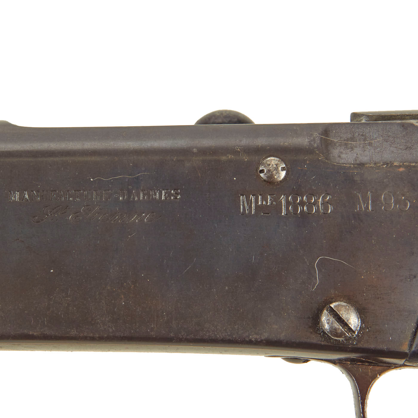 Original Item: Only One Available. The Lebel Model 1886 rifle (French: Fusil Modèle 1886 dit "Fusil Lebel") is also known as the "Fusil Mle 1886 M93", after a bolt modification was added in 1893. It is an 8 mm bolt action infantry rifle that entered service in the French Army in 1887. It is a repeating rifle that can hold eight rounds in its forestock tube magazine, one round in the transporter plus one round in the chamber.