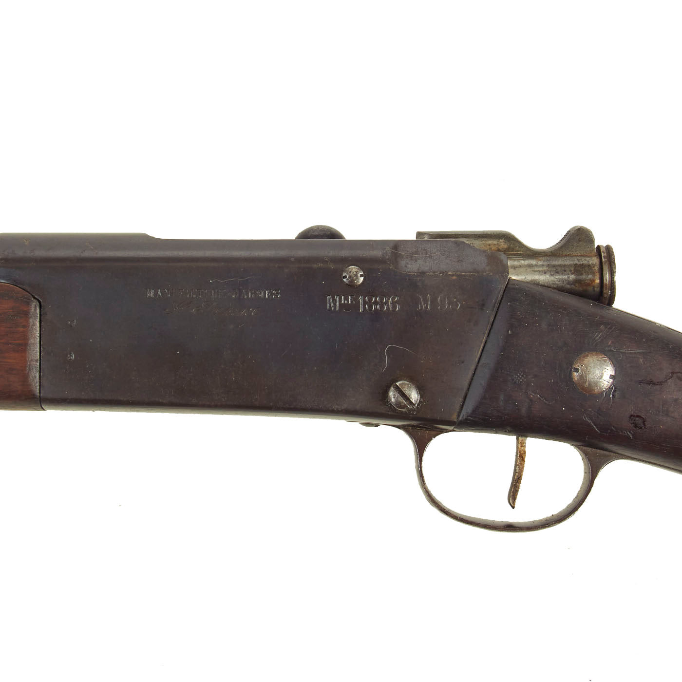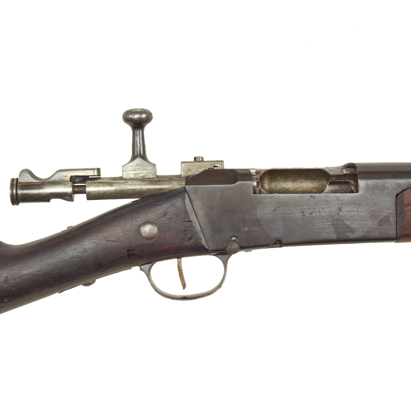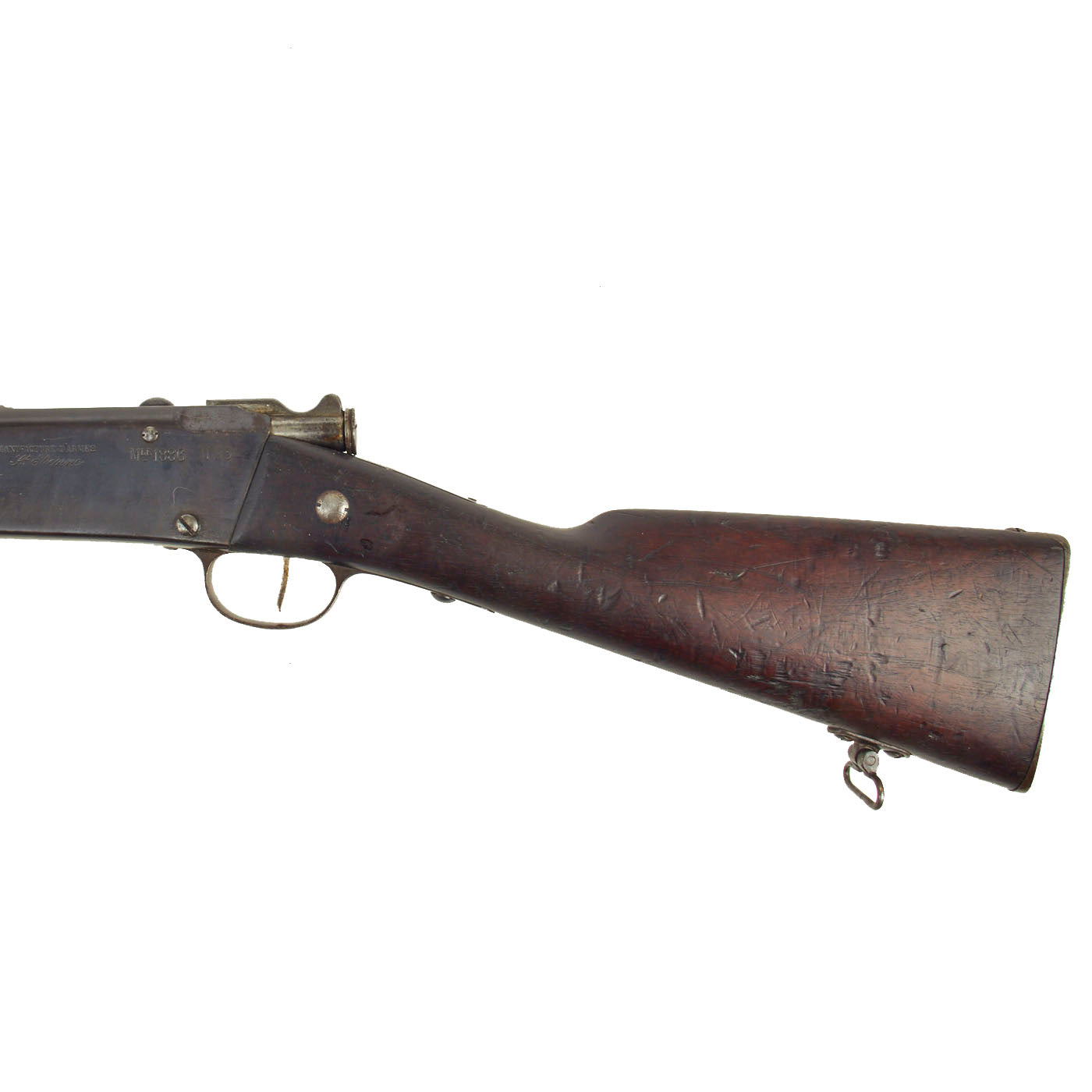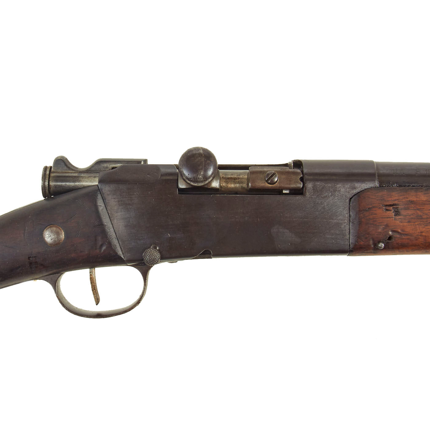Original Item: Only One Available. The Lebel Model 1886 rifle (French: Fusil Modèle 1886 dit "Fusil Lebel") is also known as the "Fusil Mle 1886 M93", after a bolt modification was added in 1893. It is an 8 mm bolt action infantry rifle that entered service in the French Army in 1887. It is a repeating rifle that can hold eight rounds in its forestock tube magazine, one round in the transporter plus one round in the chamber.