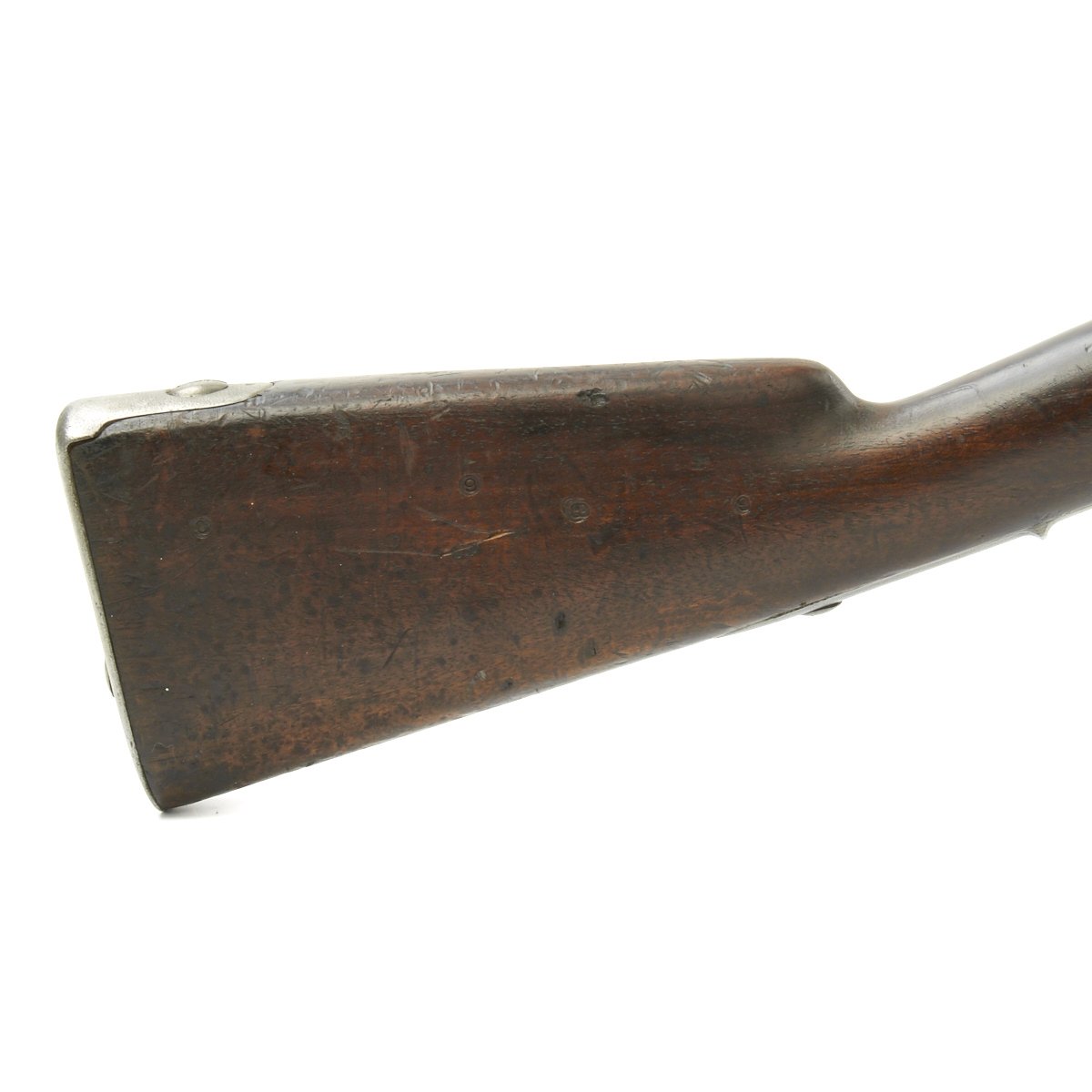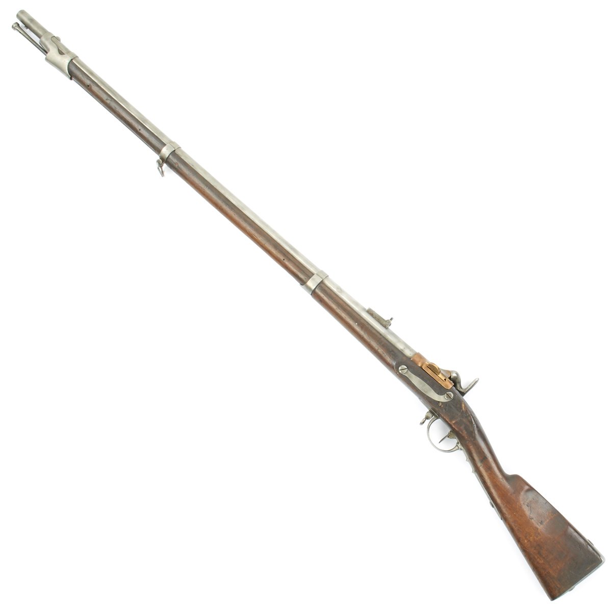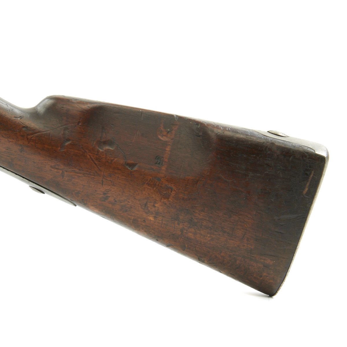 At the same time, the French flirted with the Chassepot Needle Fire Model of 1866. By 1870, the Tabatiere was considered inferior to the Chassepot and was abandoned. The French had converted 358,000 Rifled Muskets from Percussion to breech loading, leaving an amazing 1.4 Million in their original percussion state. In the 1880s the French Government disposed of most all of their Tabatiere Rifles, mostly to Belgium for conversion into half stocked 12 gauge shotguns for the African Native trade in the Belgian Congo. Original military Tabatiere Rifles are very rare and command serious prices.