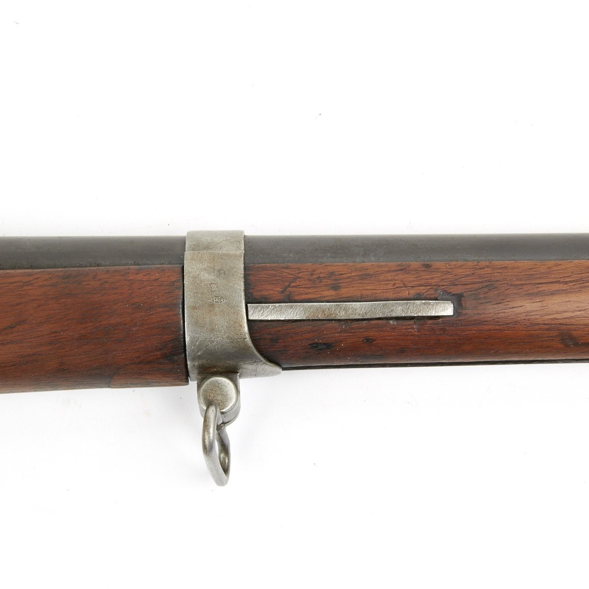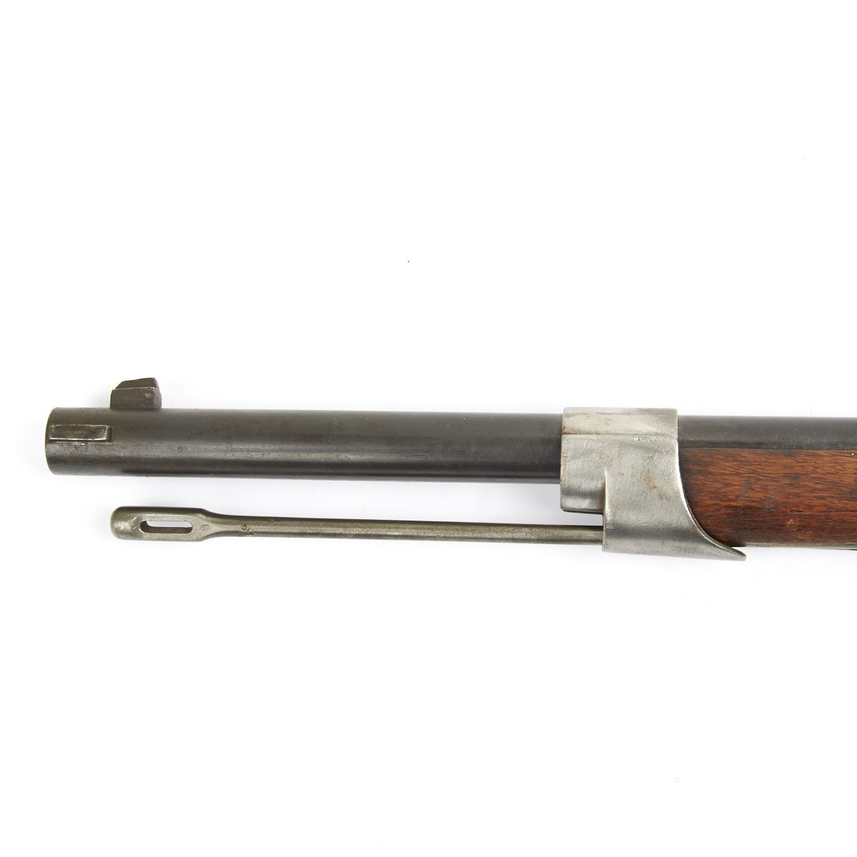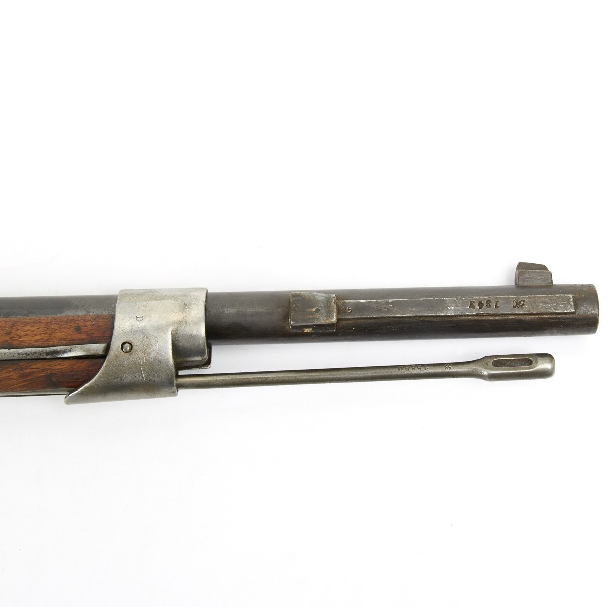 The rifle has an issue date stamped into the barrel of 1877. It comes with all original steel mounts and cleaning rod.