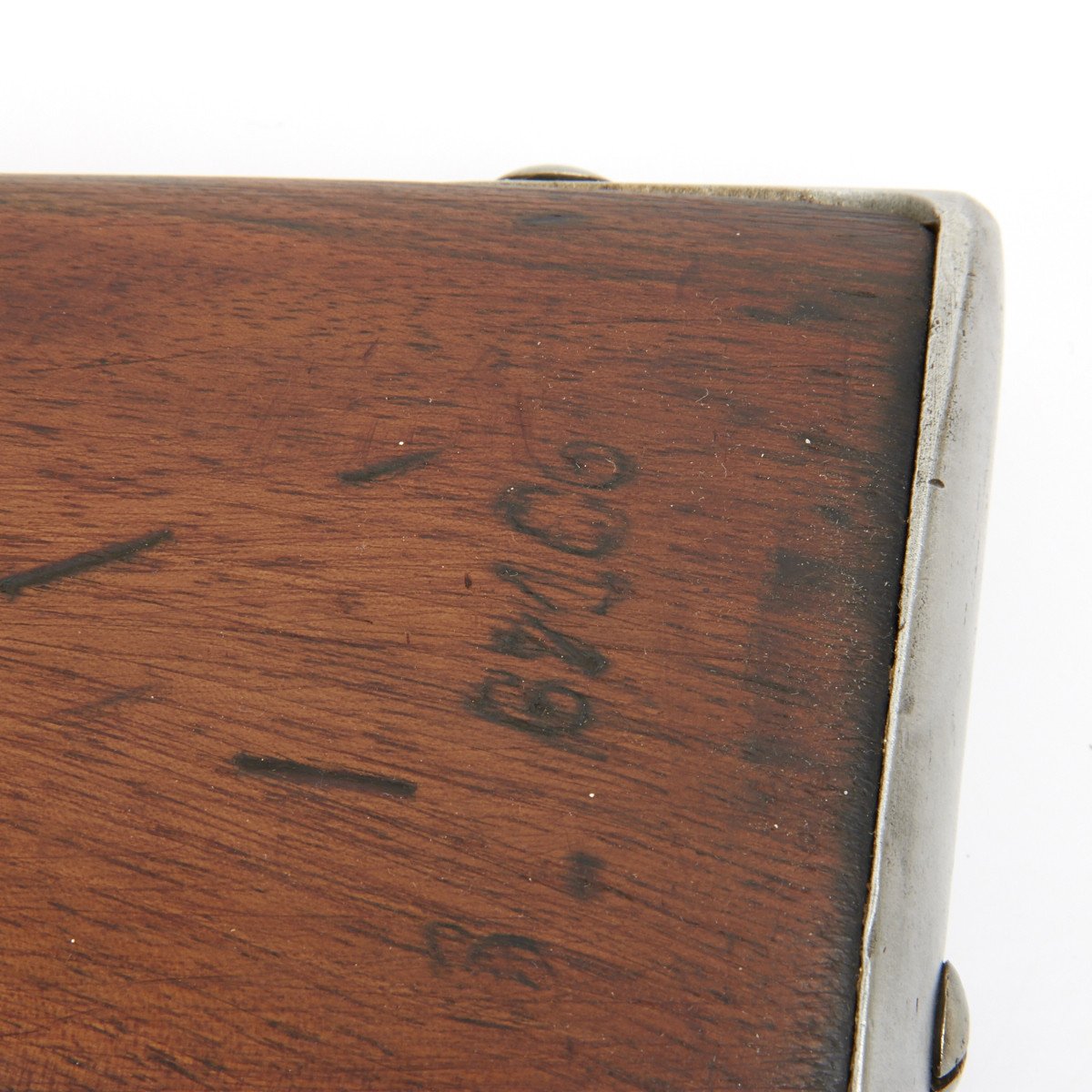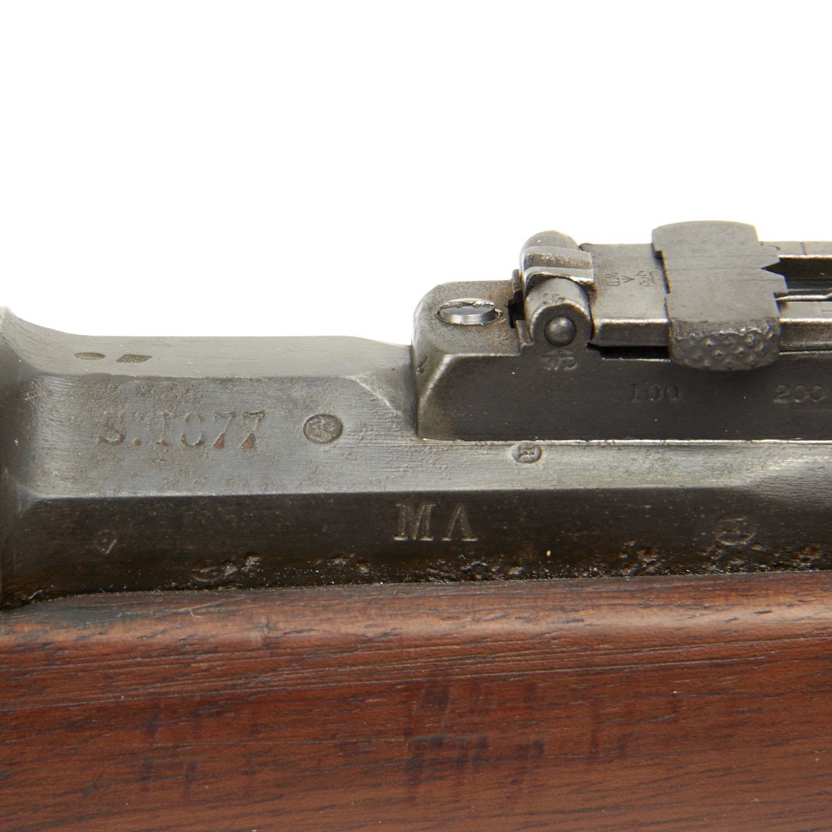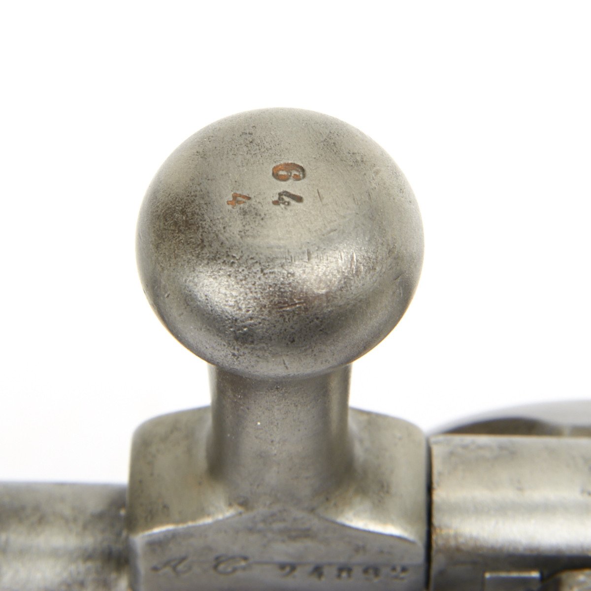 Also included is an original Gras bayonet which has been converted to "training use" by having the point rounded and the hook quillon removed from the cross guard. This was most likely done during WW1 as by that time the Gras Rifle was held in reserve and principally used only for training.