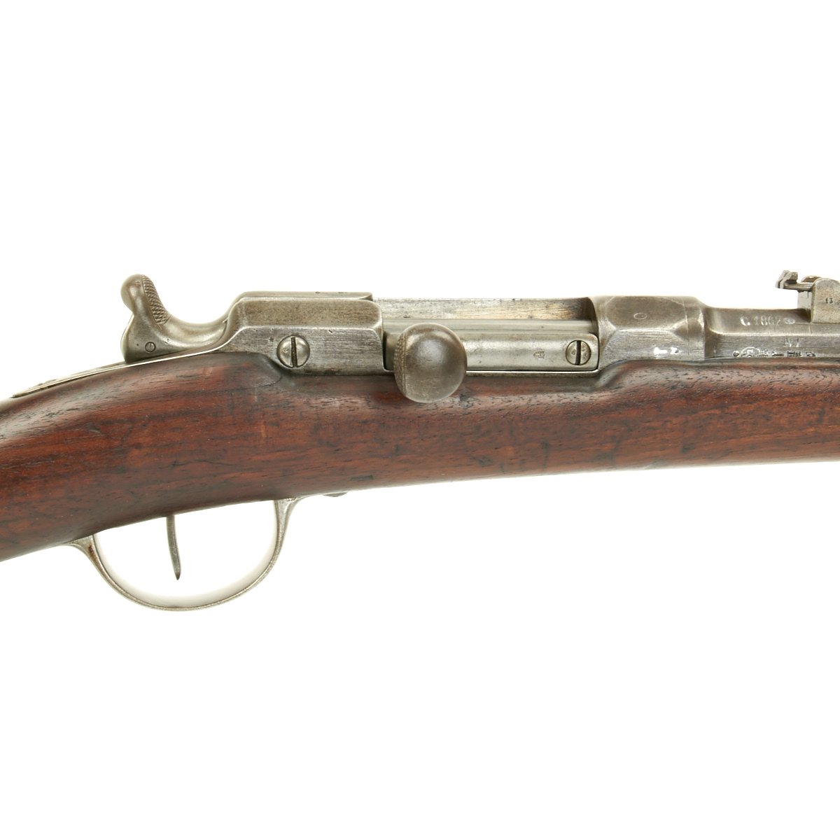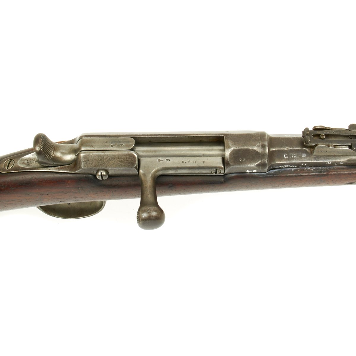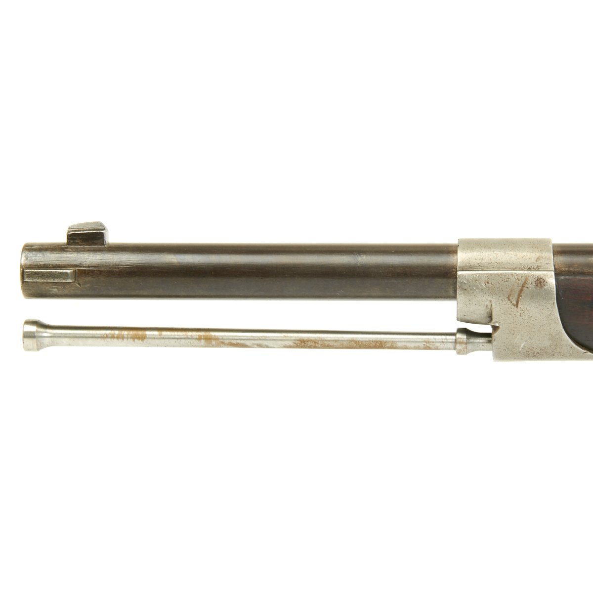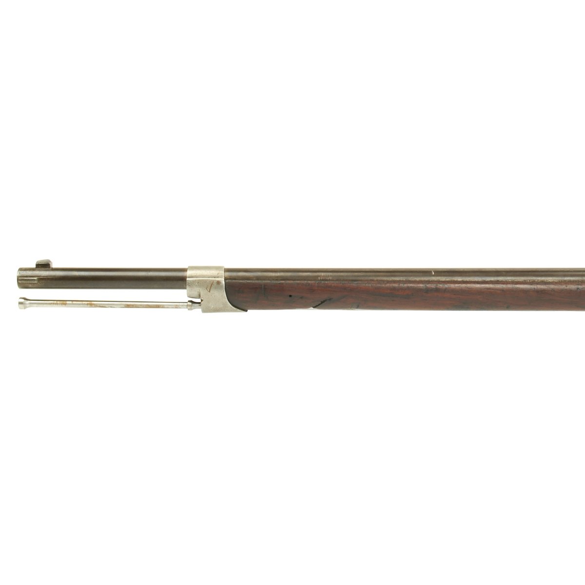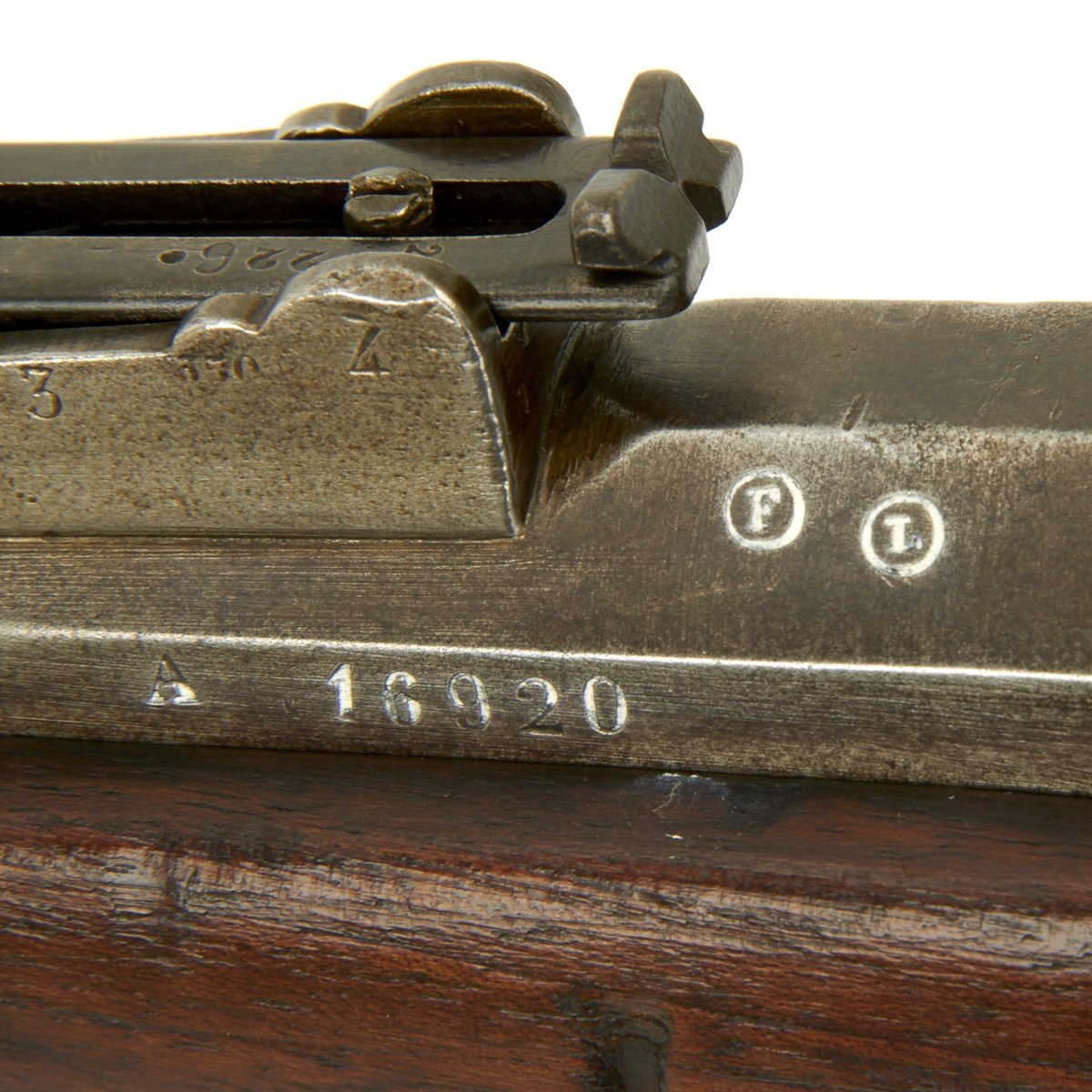 Thousands of French Rifles were captured during the Franco-Prussian war, and then sold off by the Prussians. This particular very early production example is dated 1867 and was sold to Belgium, where it was completely rehabbed and resupplied for Military use, very possibly back to the French. The Rifle has been scrubbed of French markings and now shows LIEGE Proofs from Belgium. The serial numbers are somewhat mixed, another
