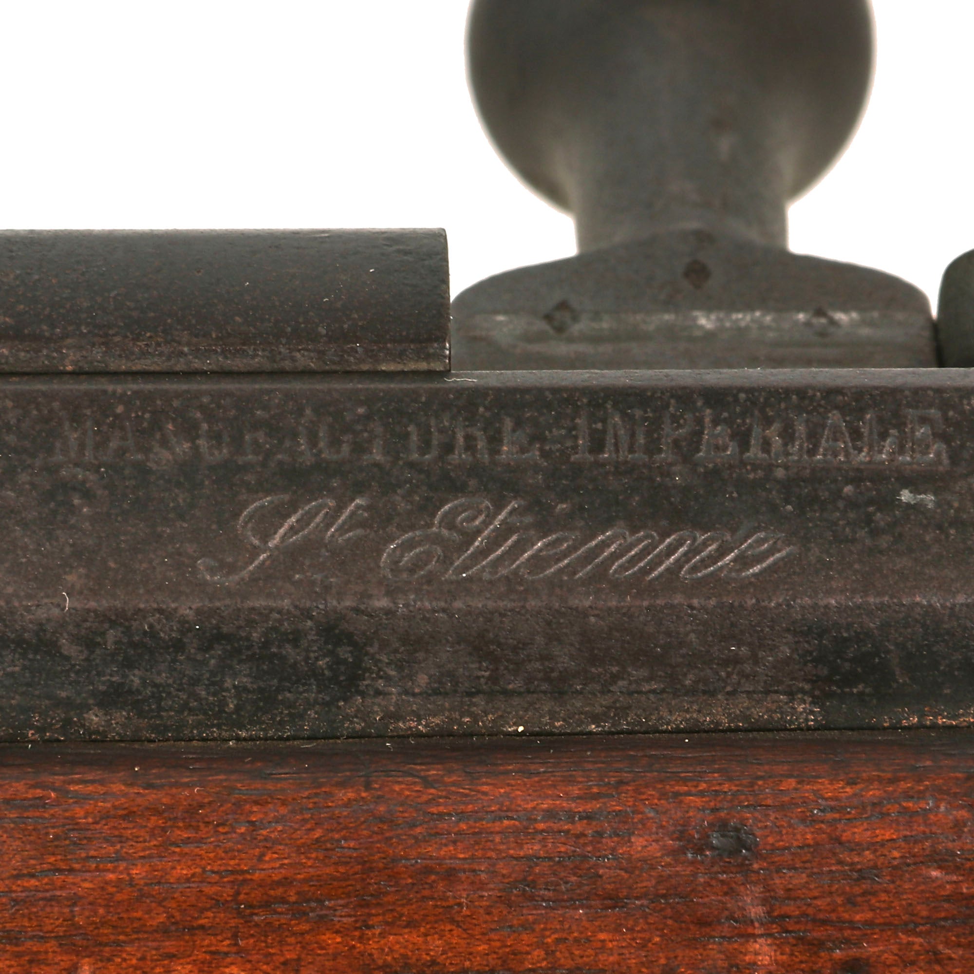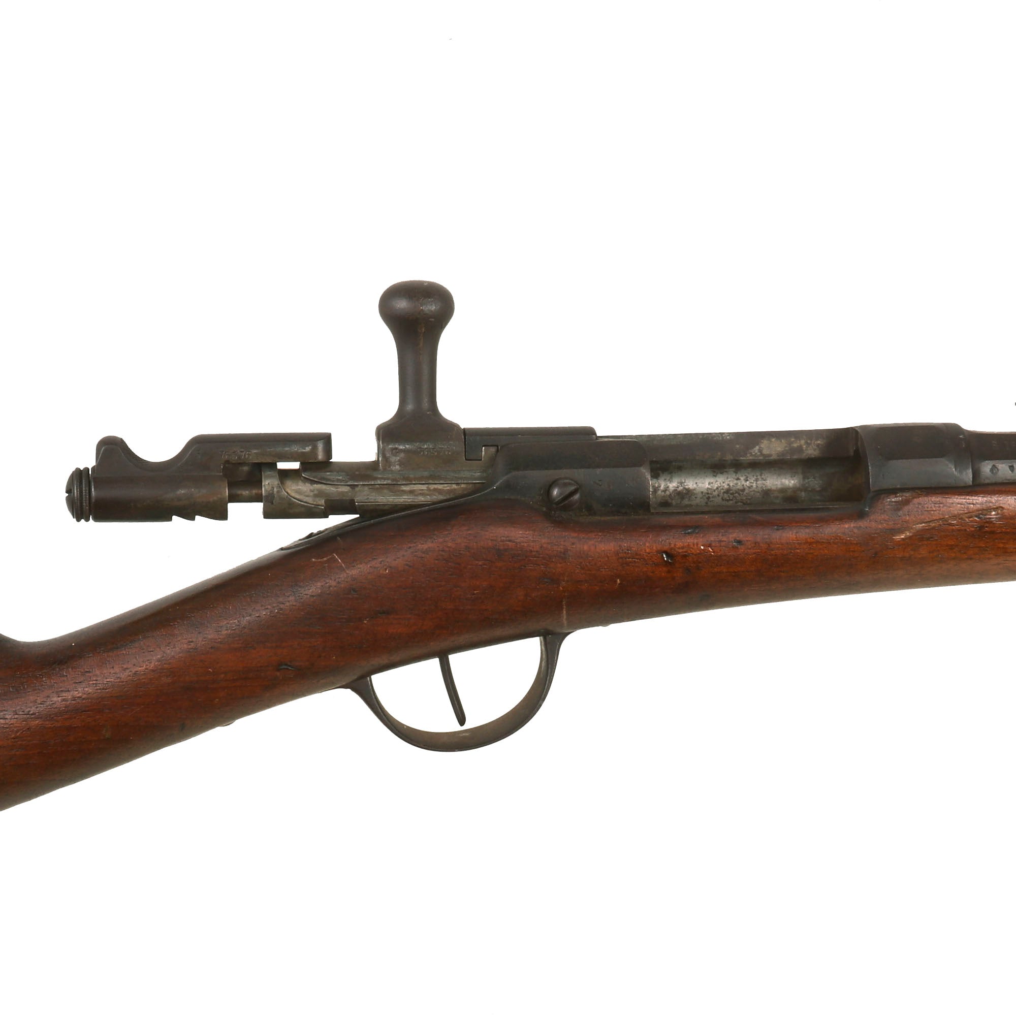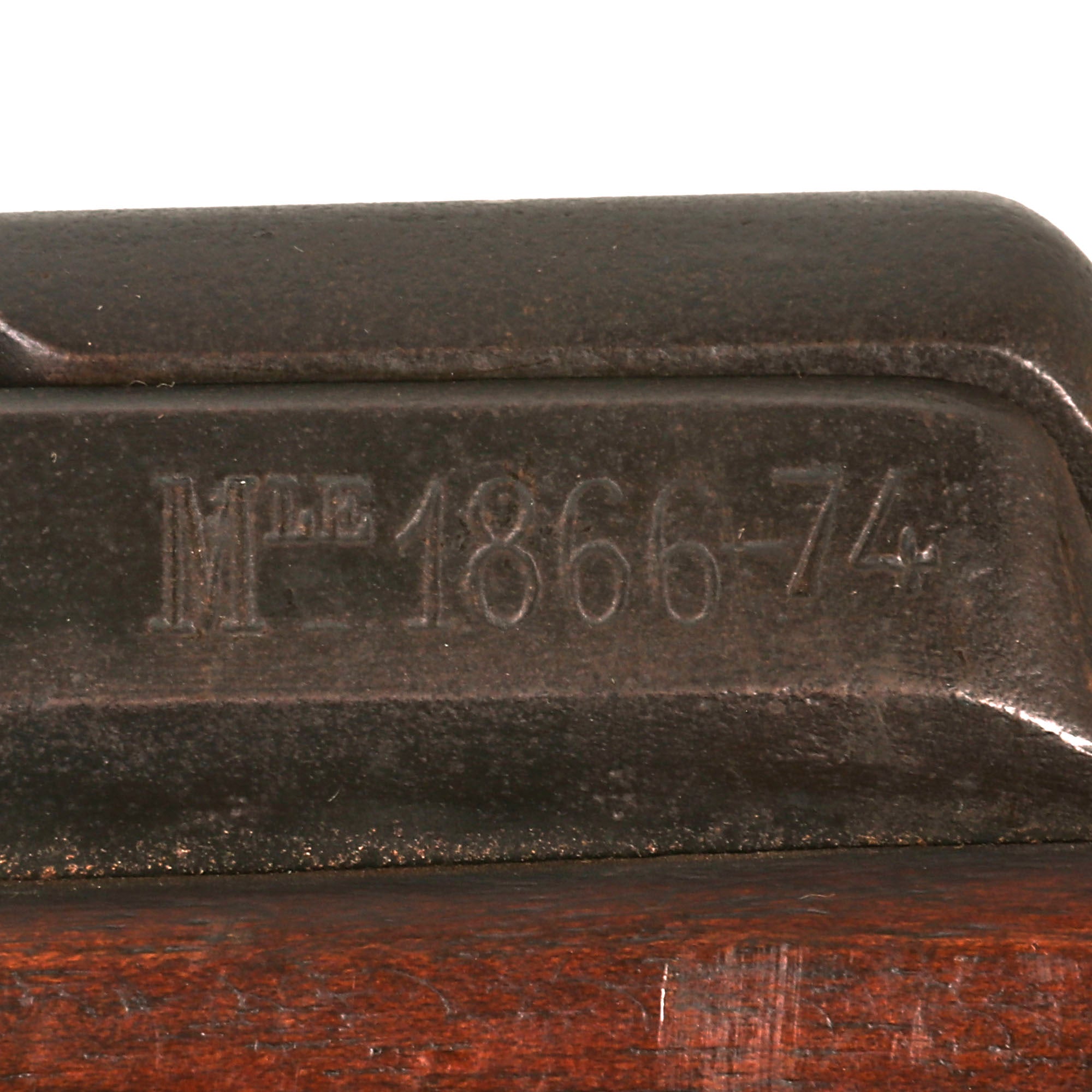 Original Item: Only One Available. The Fusil Gras Modèle 1874 was a French service rifle of the 19th century. The Gras used by the French Army was an adaptation to metallic cartridge of the Chassepot breech-loading rifle by Colonel Basile Gras. This example was originally a needle fire Chassepot, the French ignition system introduced in 1866. It was a single shot bolt-action rifle and was among the best of its kind at the type, being superior to the German Dreyse Needle fire system. It was quickly surpassed however, principally by the British Martini-Henry system. In 1874 the self contained cartridge Gras bolt-action system was introduced, and the Chassepots in service were converted to this system, and had additional markings added indicating this.