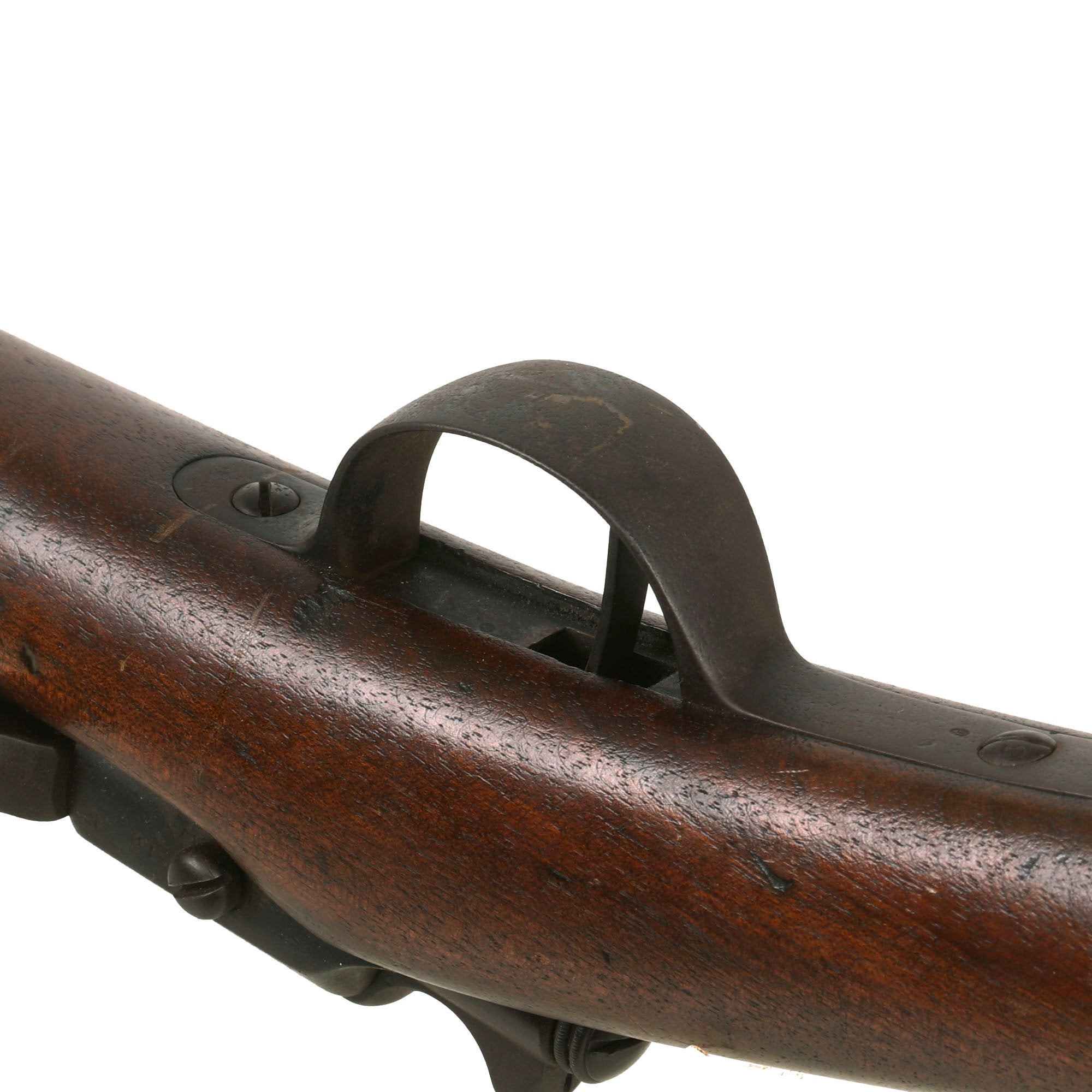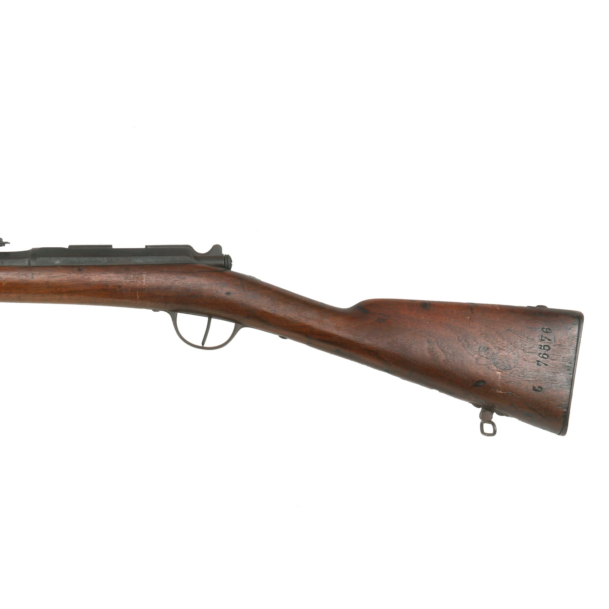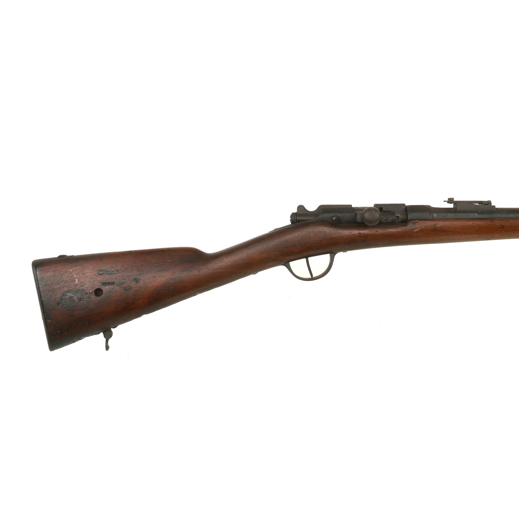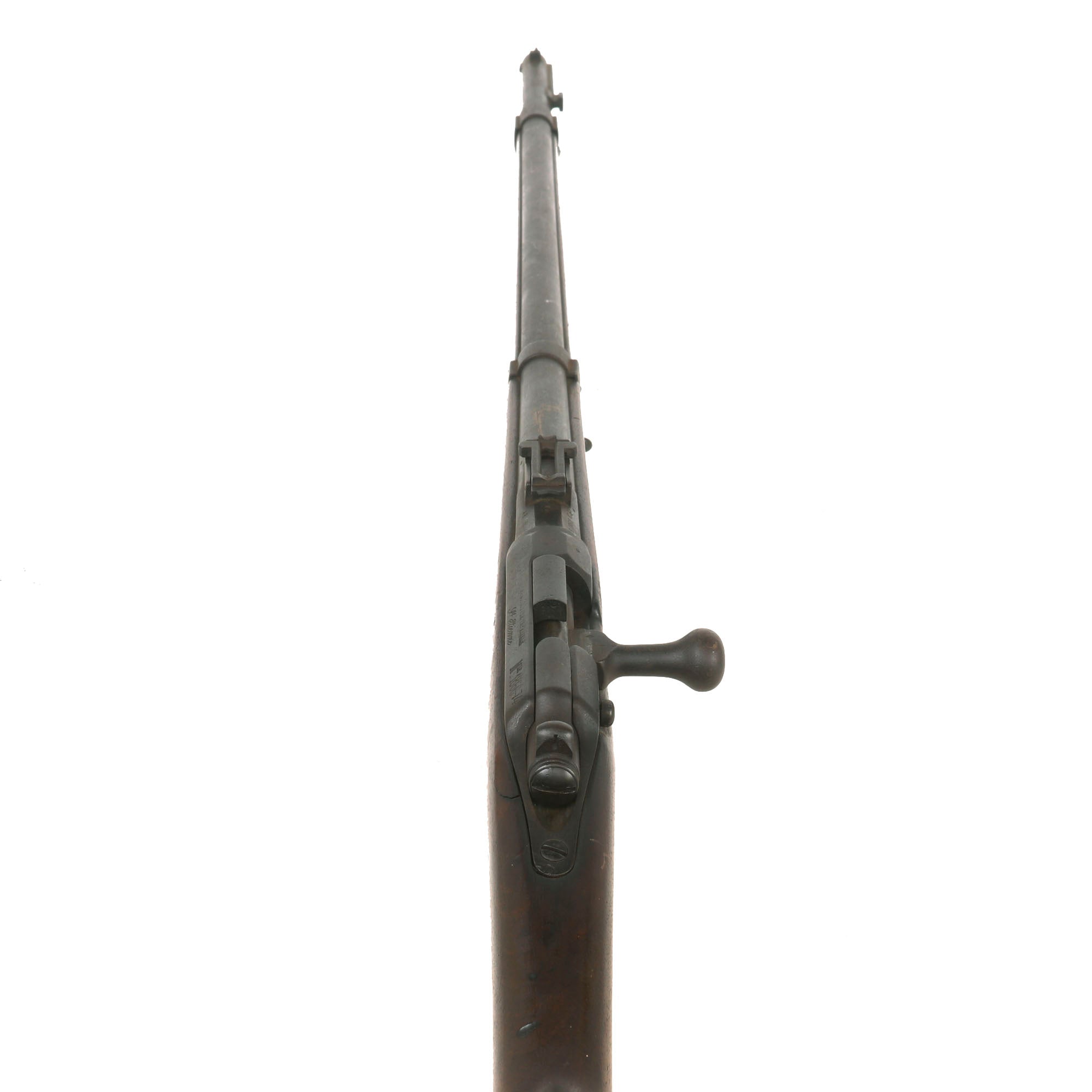 Original Item: Only One Available. The Fusil Gras Modèle 1874 was a French service rifle of the 19th century. The Gras used by the French Army was an adaptation to metallic cartridge of the Chassepot breech-loading rifle by Colonel Basile Gras. This example was originally a needle fire Chassepot, the French ignition system introduced in 1866. It was a single shot bolt-action rifle and was among the best of its kind at the type, being superior to the German Dreyse Needle fire system. It was quickly surpassed however, principally by the British Martini-Henry system. In 1874 the self contained cartridge Gras bolt-action system was introduced, and the Chassepots in service were converted to this system, and had additional markings added indicating this.