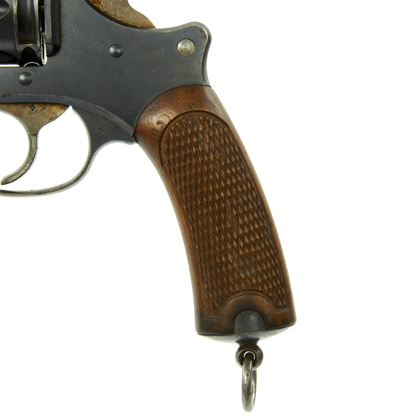 The Modèle 1892 revolver is a solid frame revolver with the cylinder on a separate frame swinging right for manual reloading. The Modèle 1892 was first fielded in 1893 and was prominent among French military officers during First World War. A mechanically tight and very well finished handgun, the Modèle 1892 fires 8mm Ordnance / Lebel rounds with a striking power equivalent to that of a .32 ACP round.
