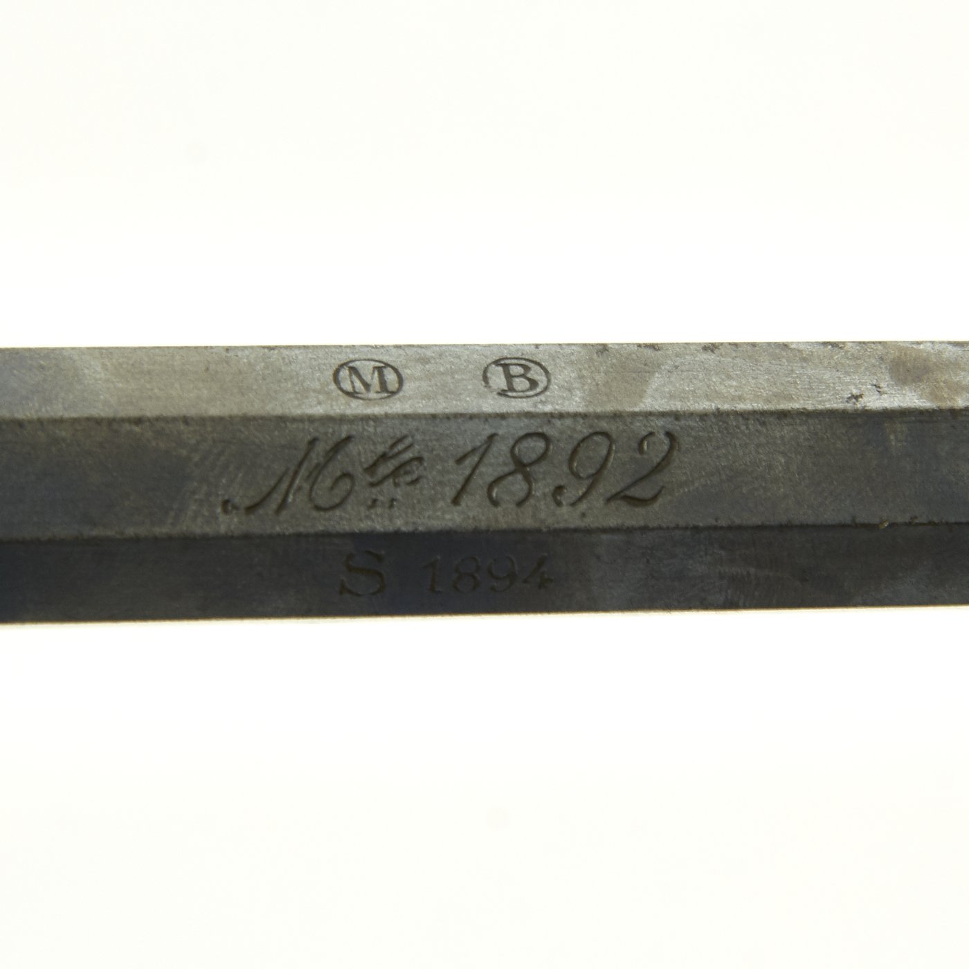 This example is in near mint mechanically functional condition with all original blueing and case hardening intact. It is marked Mn're d'Armes / Saint-Étienne on the right side of the frame, the top of the barrel is marked Mle 1892 and the side of the barrel is marked S 1894. The serial number F 50616 is marked on the right side of the frame, under the cylinder.