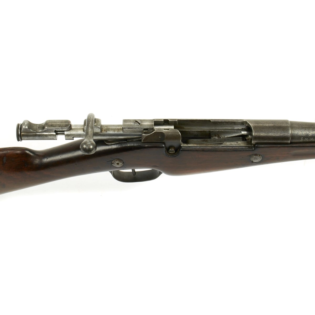 The Berthier Carbine was introduced as this much needed Cavalry replacement for the Lebel. The Berthier design began as the "Mousquetons Berthier" - a series of bolt-action cavalry and artillery carbines with distinctly different actions from the Mle 1886/M93 8mm Lebel rifle. For instance, the Berthier carbine's bolt lugs lock vertically into the receiver instead of horizontally as in the Lebel rifle. Berthier carbines were first issued in 1890 and 1892, and had been designed by Emile Berthier, an engineer at the French Algerian Railways,to be used with standard 8mm Lebel ammunition.