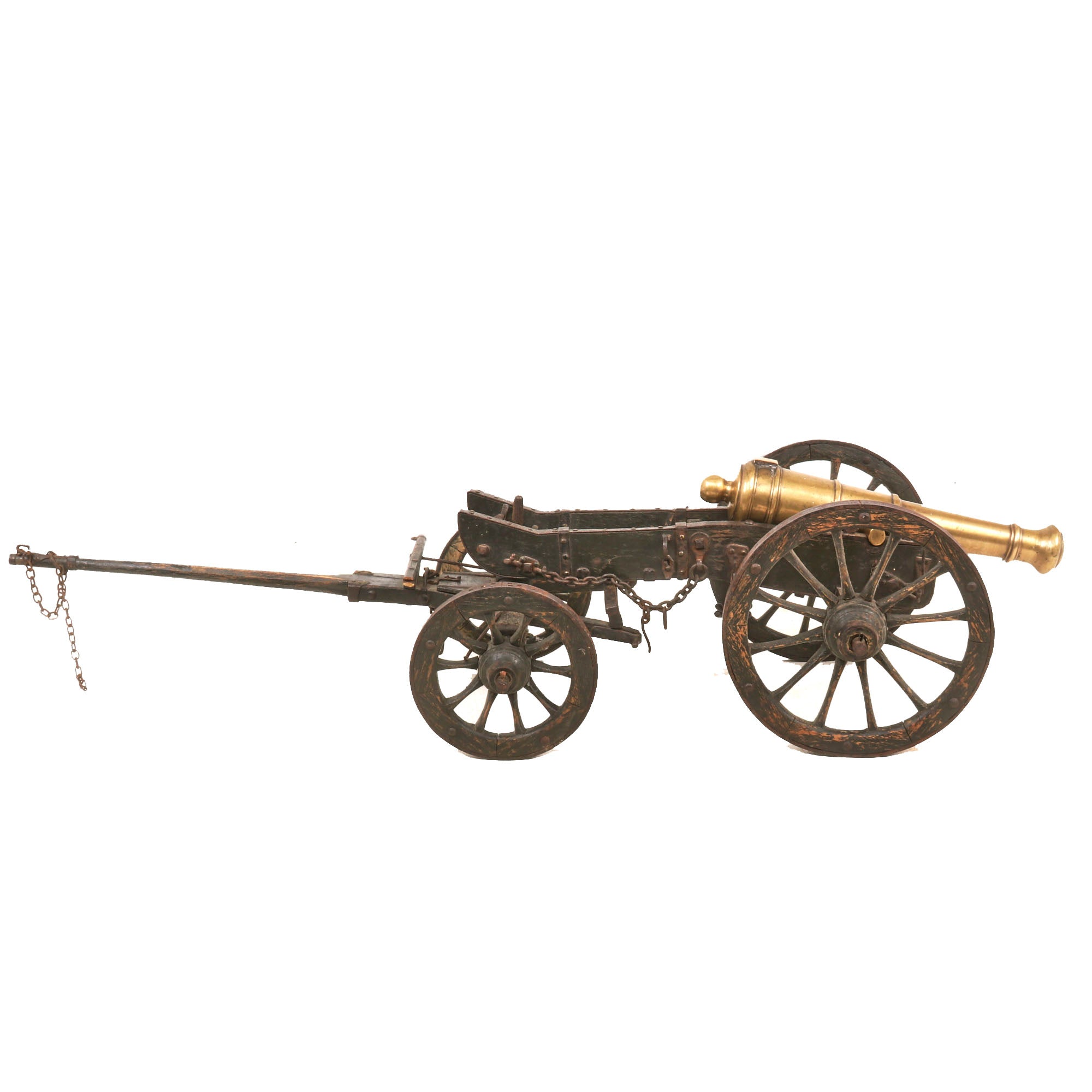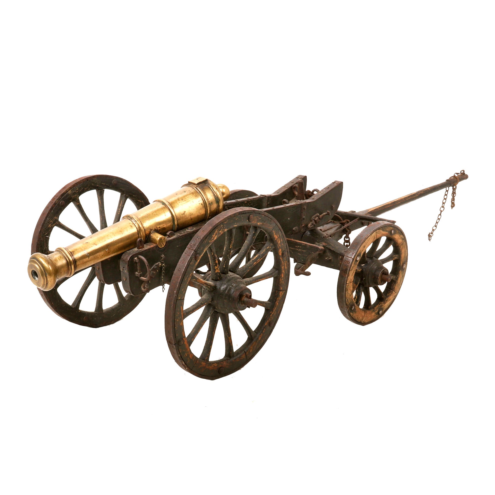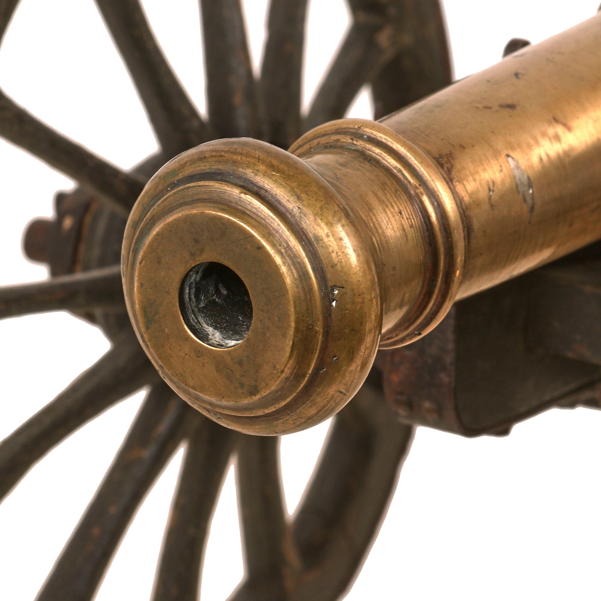 Original Item. One-of-a-Kind. This is a tremendous Mid 19th Century Scale Model of a French Napoleonic era Canon de 12 Gribeauval, one of the most used cannons of the period. Because of their physical and psychological effect, Emperor Napoleon increased the number of 12-pounders in his artillery and fondly called the cannons his belles filles (beautiful daughters). Gribeauval cannons fired canister shot for close-range work and round shot at more distant targets. This model was certainly made during the same period as the cannon would have, as the detailing is excruciatingly accurate. Even the nails which secure the bands to the wheels have the same shape and placement. This cannon was built at roughly 1:9 Scale.