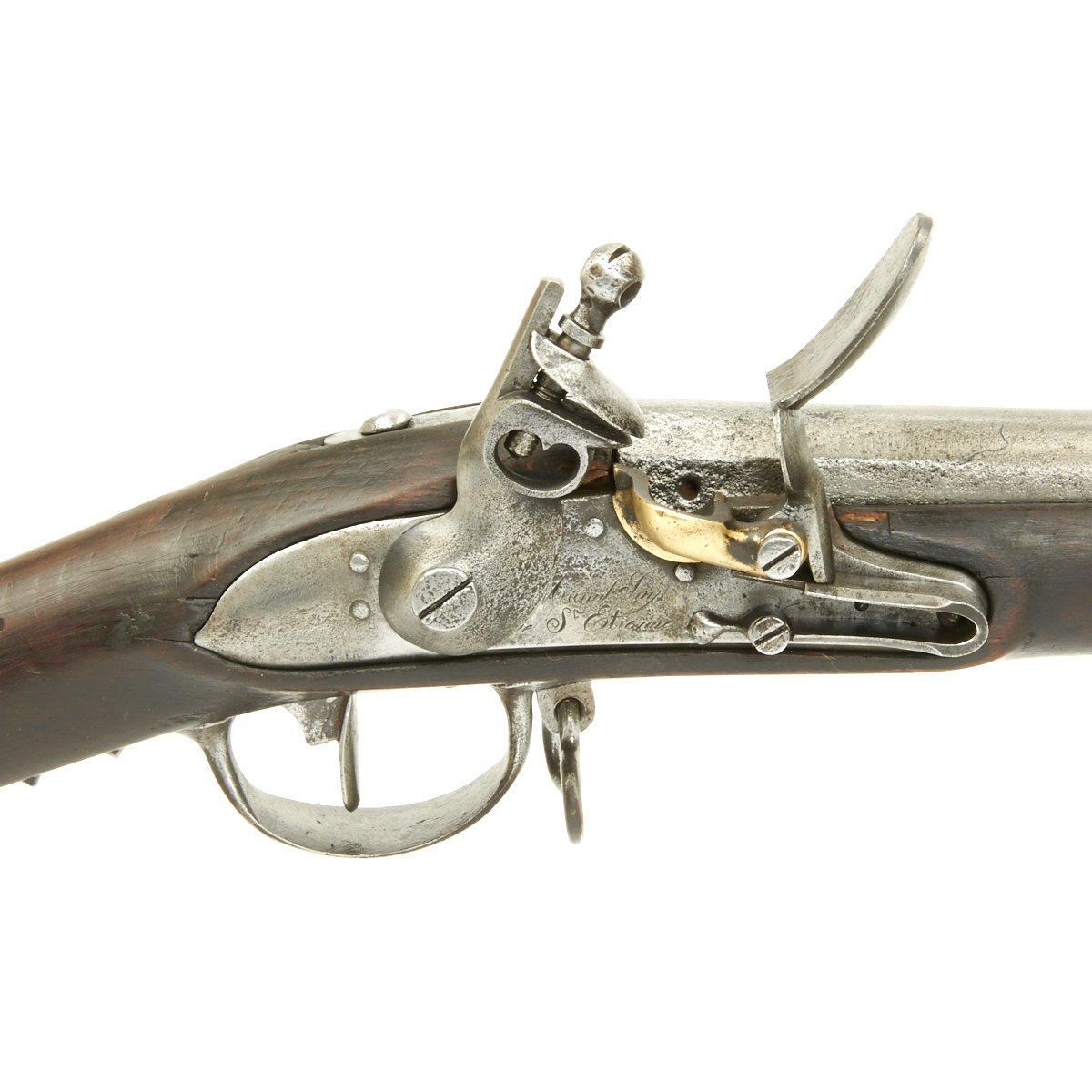 Original Item: Only One Available- as used in the American Revolution and Napoleonic war. Once as numerous as Brown Bess Muskets the French M1777 equivalent was referred to as the CHARLEVILLE Musket. However. Charleville was only one of the manufacturing Arsenals, the predominant one being St. Etienne.
