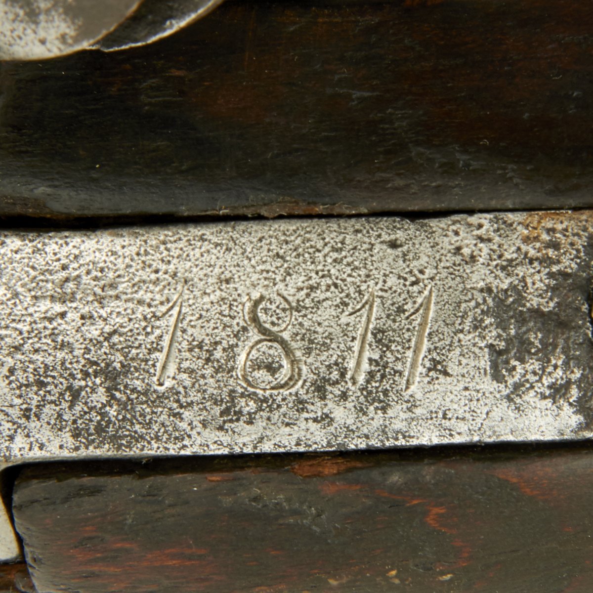 This example has all steel mounts, brass mounts were generally only used for Naval issue, the lock is marked Manuf. Imp. de St.Etienne, the barrel tang dated 1811. Differing from the Brown Bess not only using all steel mounts the barrel is secured by three-barrel bands and not pins. Used overall condition this musket comes with an early model all steel trumpet front ramrod.