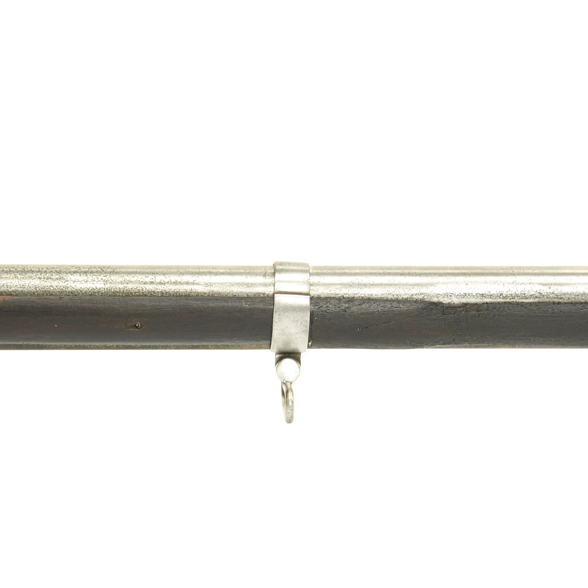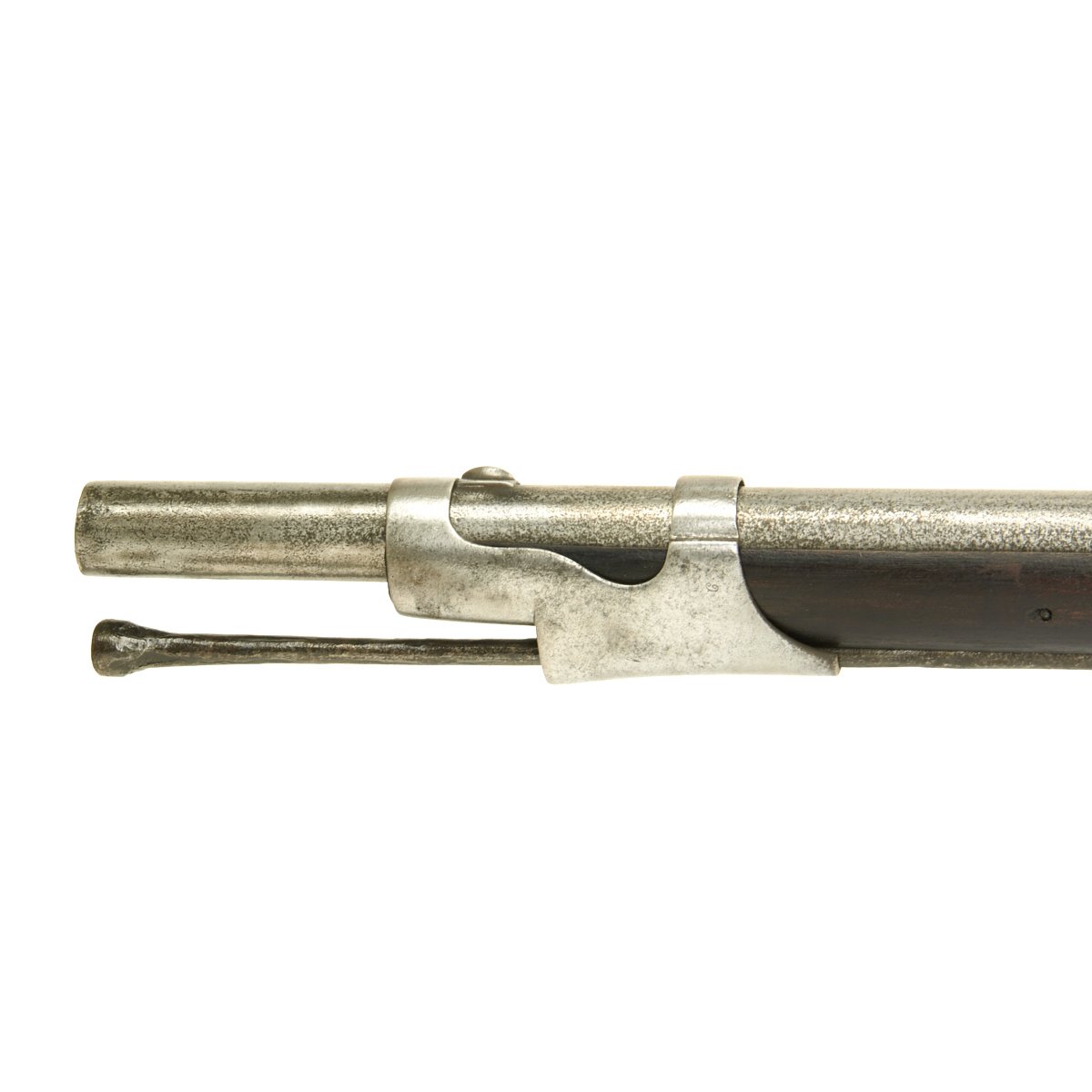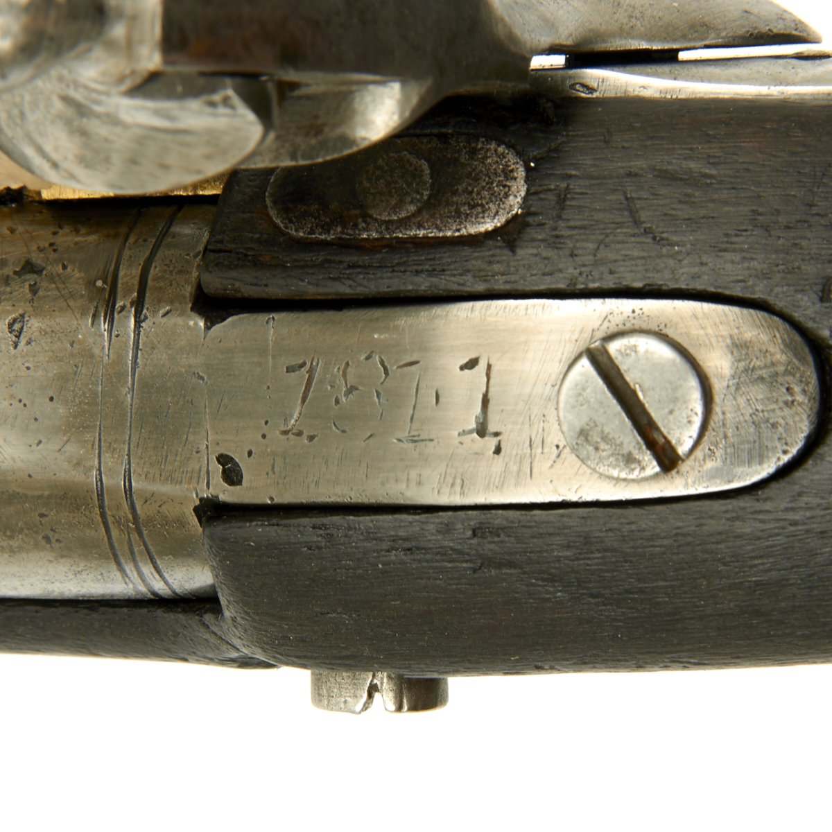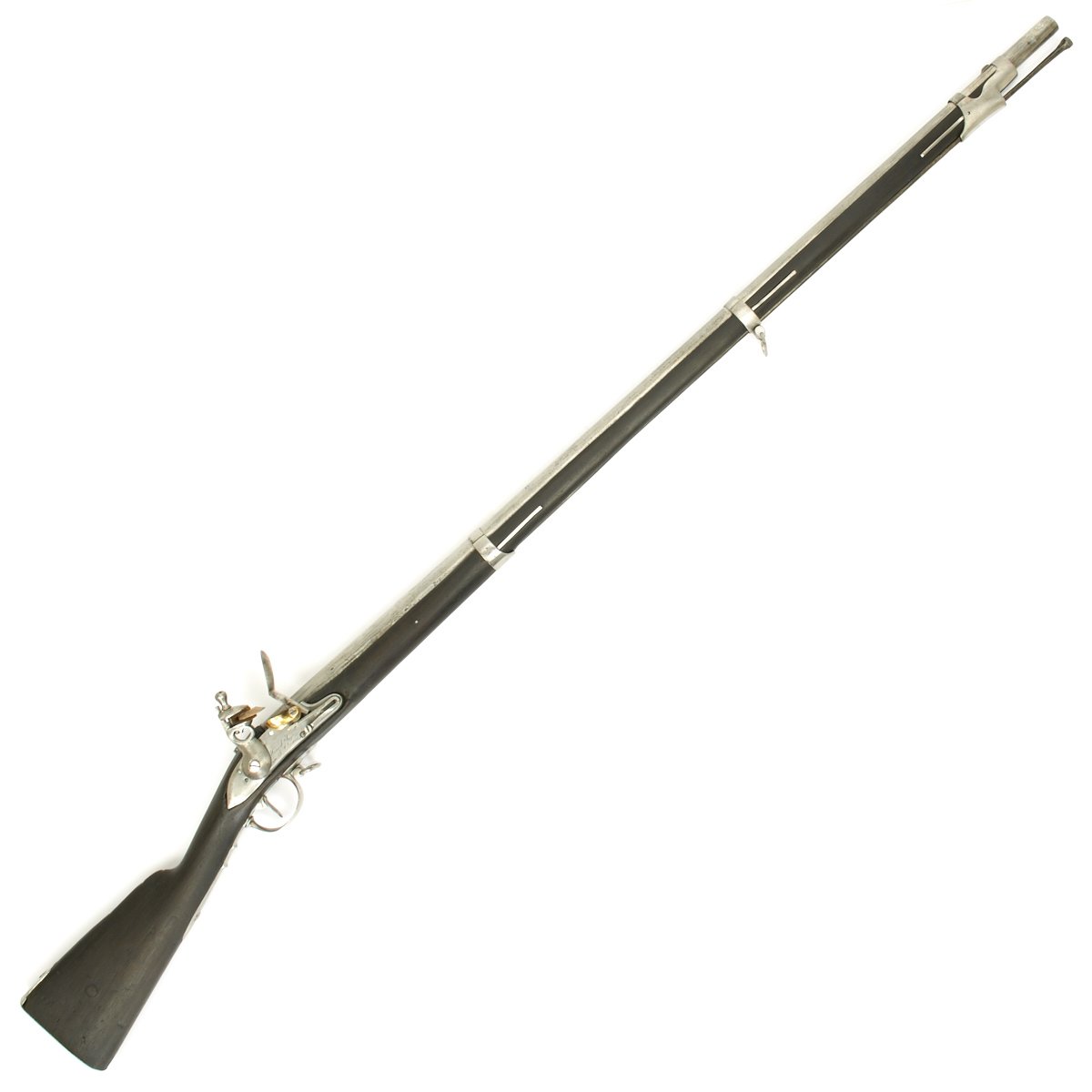 This example has all steel mounts, brass mounts were generally only used for Naval issue, the lock is marked Manuf. Imp. de St.Etienne, the barrel tang dated 1811. Differing from the Brown Bess not only using all steel mounts the barrel is secured by three-barrel bands and not pins. This particular example has all steel/iron fittings with arsenal markings. Only the flash pan is brass. Very good used overall condition this musket comes with an early model all steel ramrod. Stocks are in good condition, though the marking on the stock rondel is no longer legible.