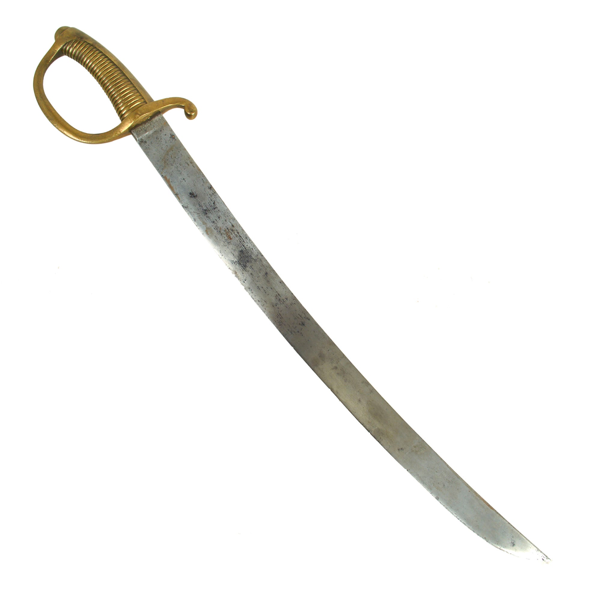 Original Item. Only One Available. This is a lovely Napoleonic Briquet sword. Officers purchased their own weapons but this sword very closely resembles one that was officially termed the An XI Infantry Sabre, it was a short curved sword carried by the Infantry, as well as the musket and bayonet. Previous larger designs had proved cumbersome and by 1767, it had become the main fall-back weapon, in combat. The briquet was a nickname given to it by the cavalry, indicating the smallness in size. However, in close quarter fighting it was a formidable weapon, especially when compared to a long unloaded musket.