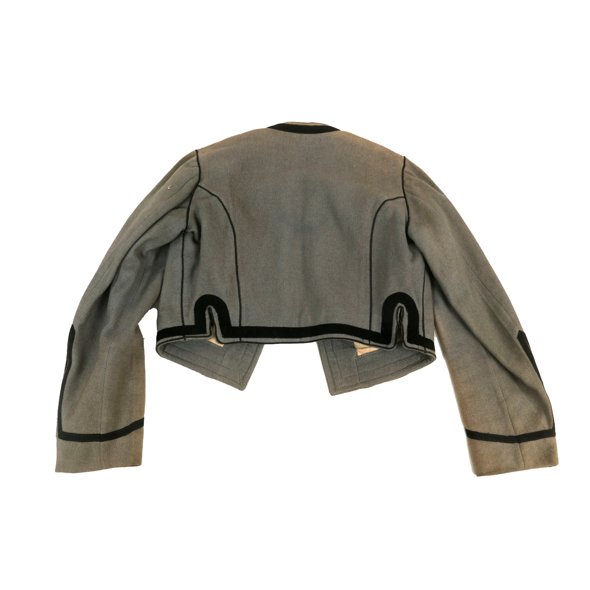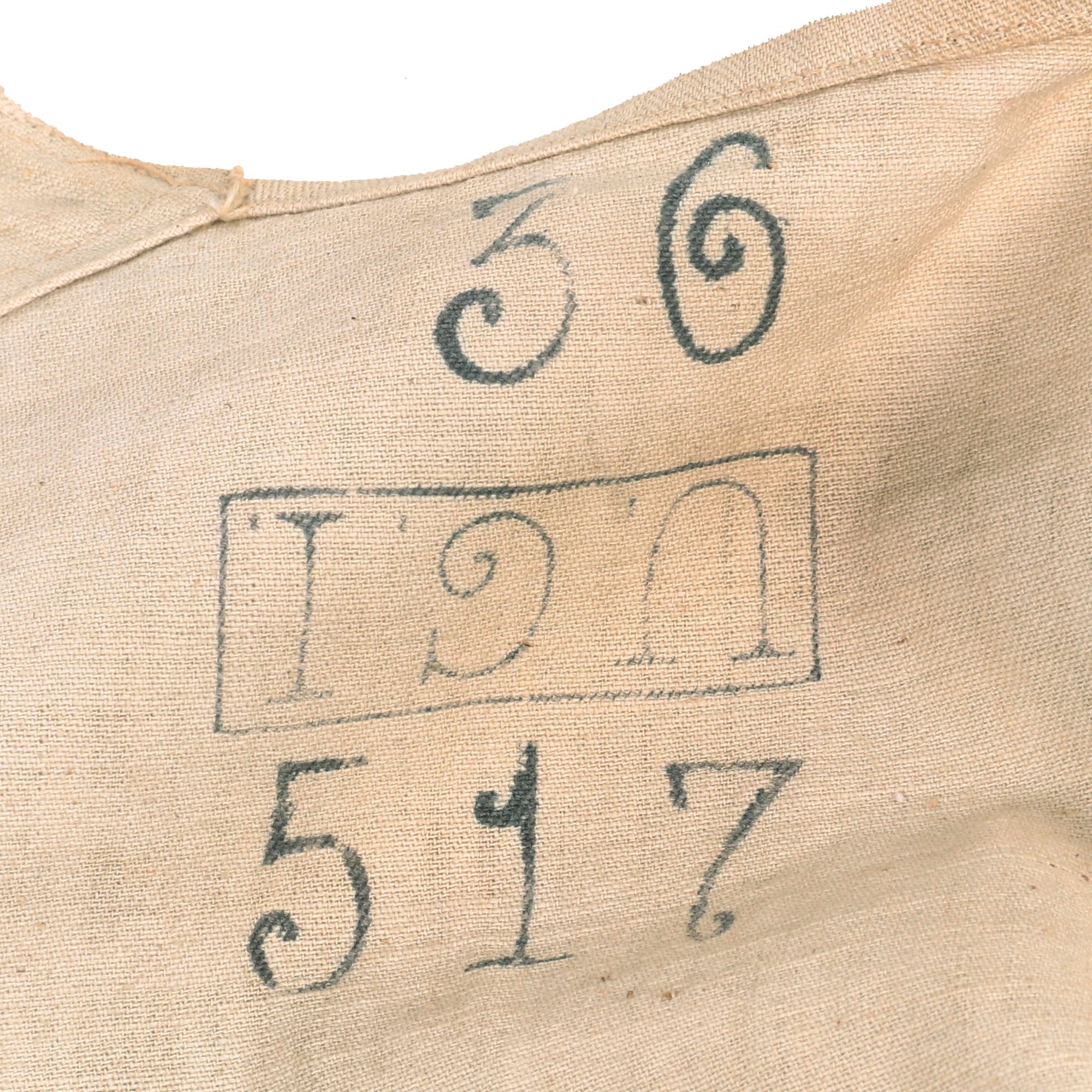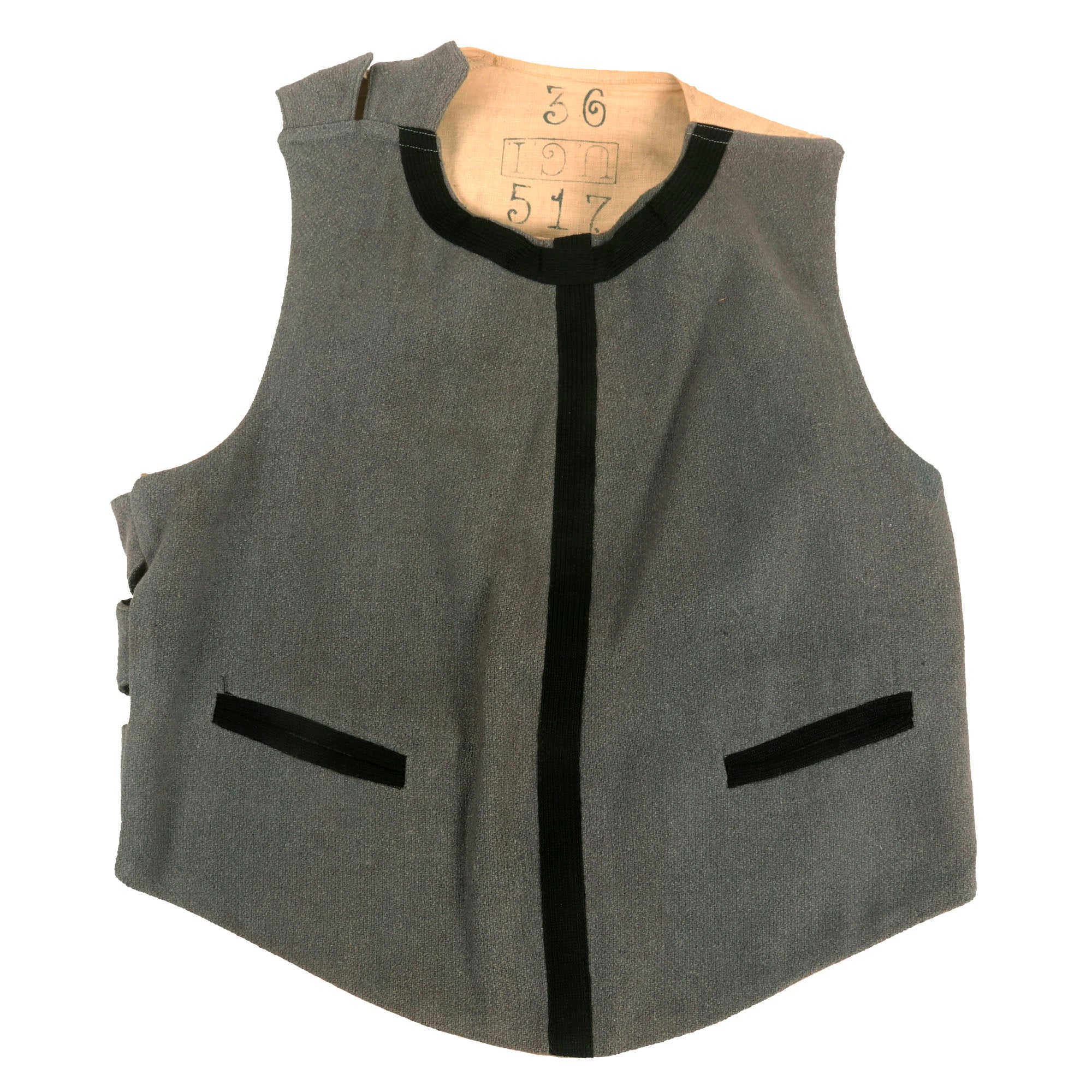 This uniform is in wonderful condition and even retains original regiment markings, though we are unfamiliar with this style of marking. The primary unit marking appears to be in the white backing of the vest, reading 36 / U.C.I. / 517, while the inside of the jacket is marked 38 / U.C.L. / 600. The front of the jacket appears to have color fading from age or use. The trousers are full red with what appears to be light blue piping, and the interior is in good shape. A lovely set. This is truly one of the best uniforms of this type we have encountered here!