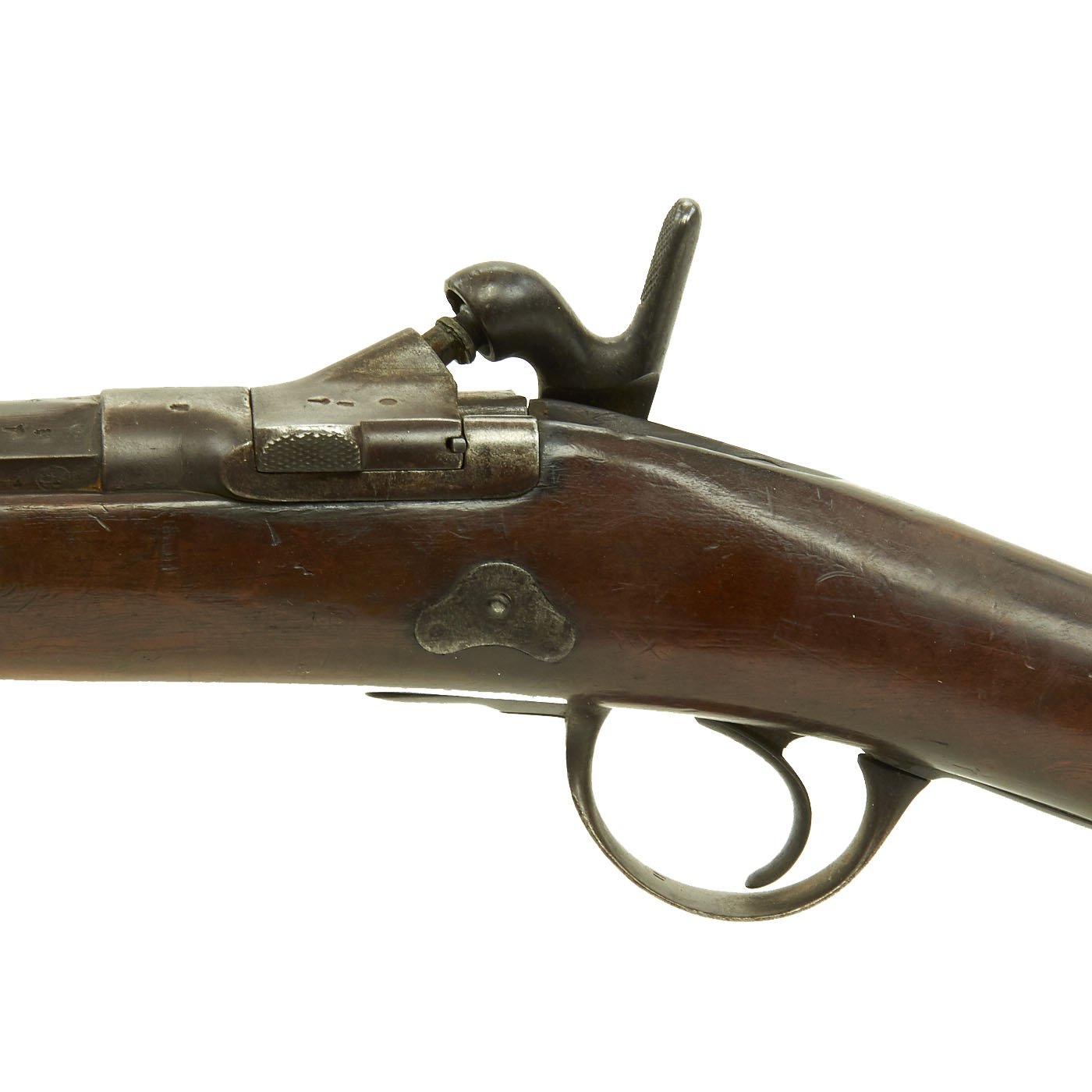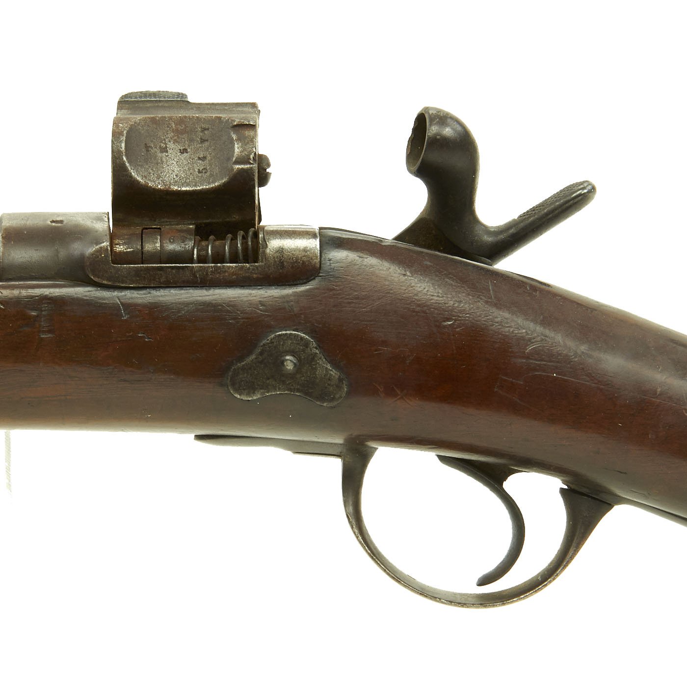 At the same time, the French flirted with the Chassepot Needle Fire Model of 1866. By 1870, the Tabatière was considered inferior to the Chassepot and was abandoned. The French had converted 358,000 Rifled Muskets from Percussion to breech loading, leaving an amazing 1.4 Million in their original percussion state. In the 1880s the French Government disposed of most all of their Tabatière Rifles, mostly to Belgium for conversion into half stocked 12 gauge shotguns for the African Native trade in the Belgian Congo. Original military Tabatière Rifles are very rare and command serious prices.